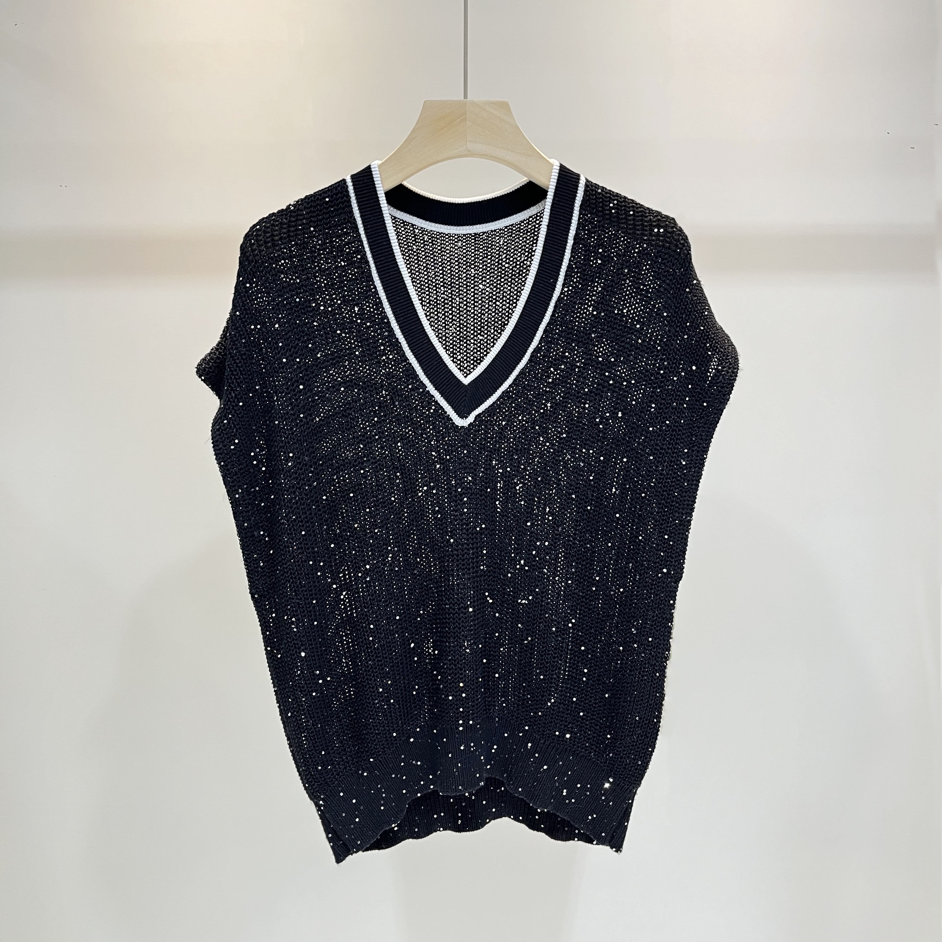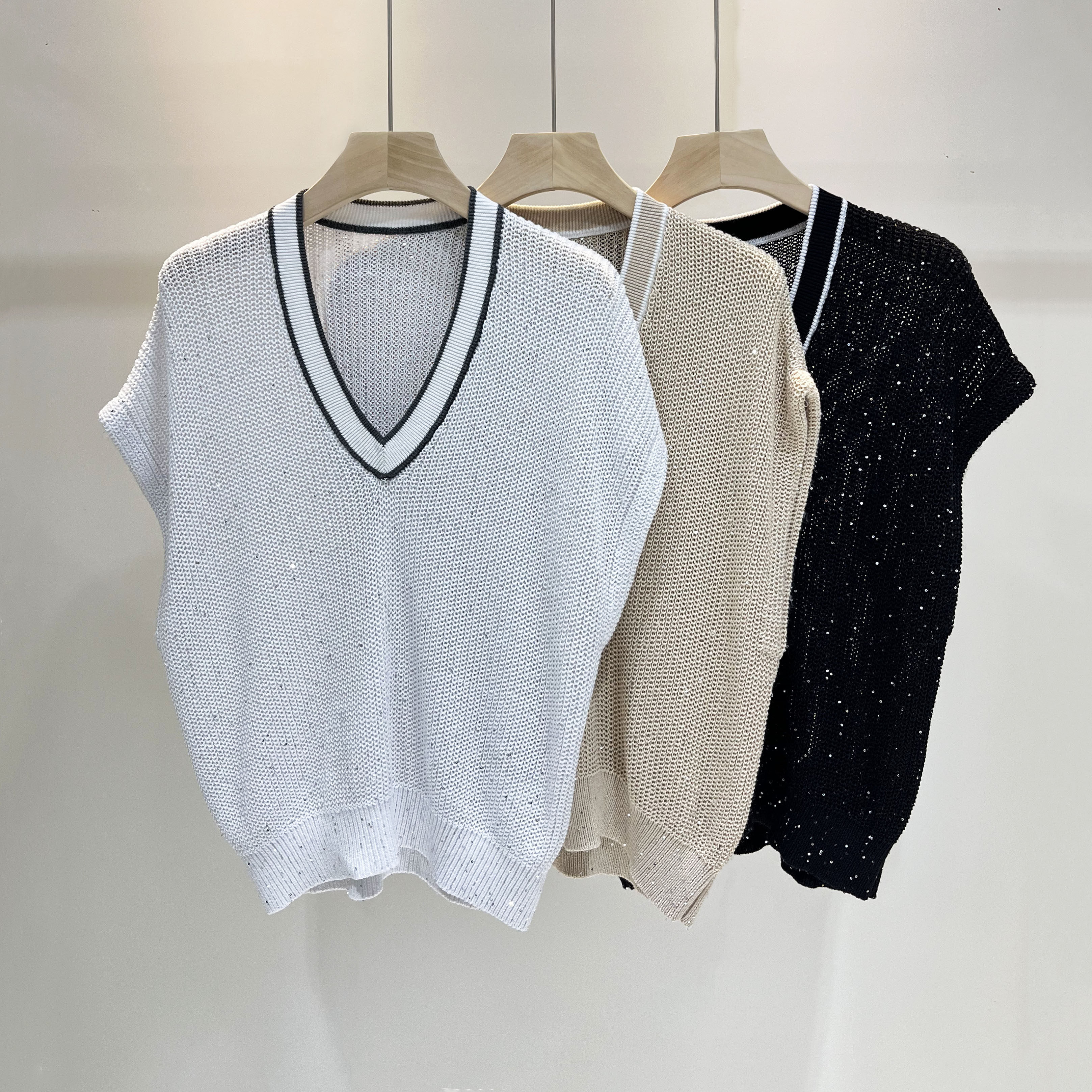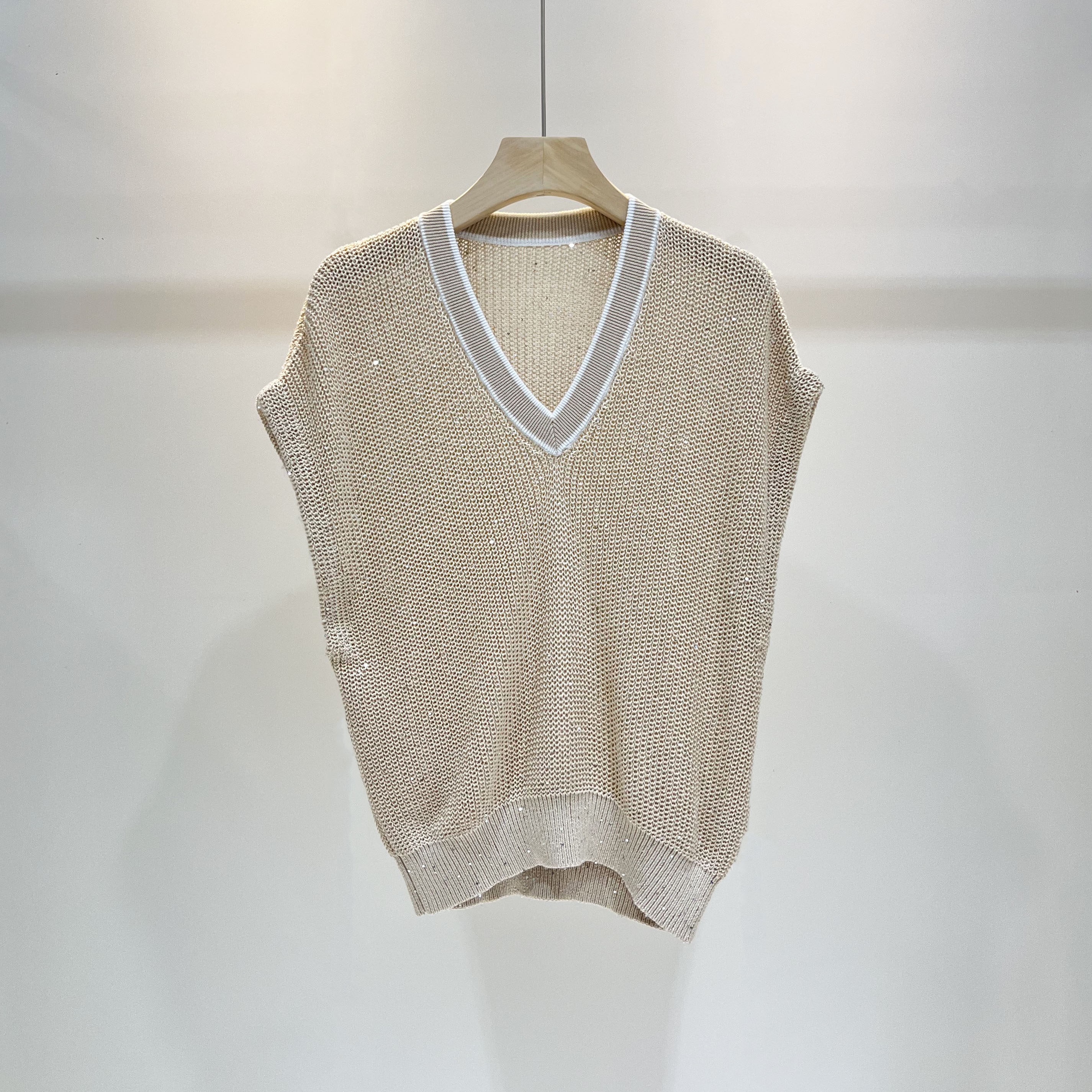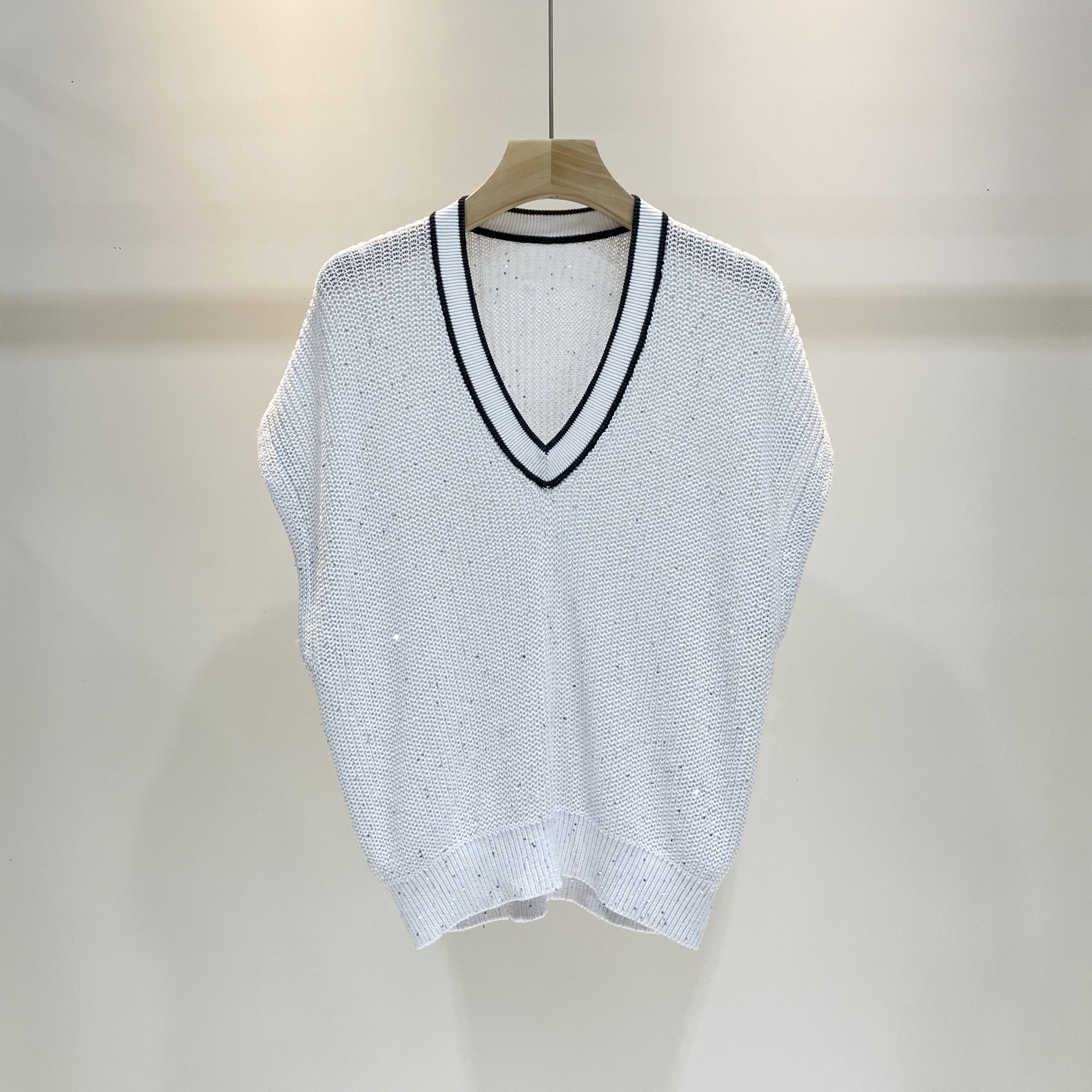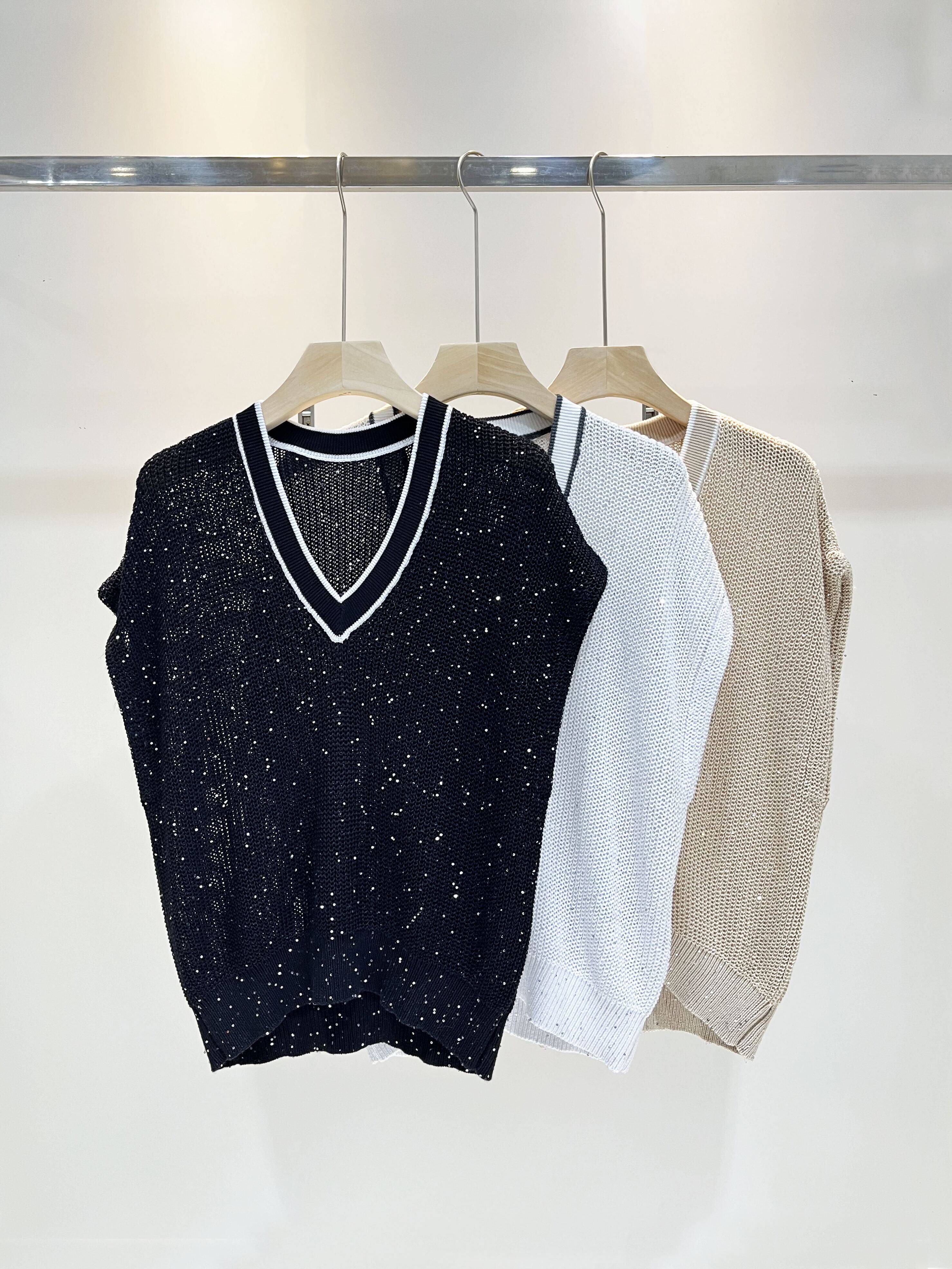 Летний трикотажный свитер, майка топ, Италия, V-образный вырез, свободный крой