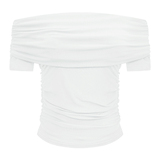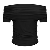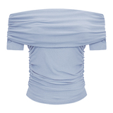 Трикотажный летний свитер, короткая футболка, открытые плечи, в американском стиле, облегающий крой