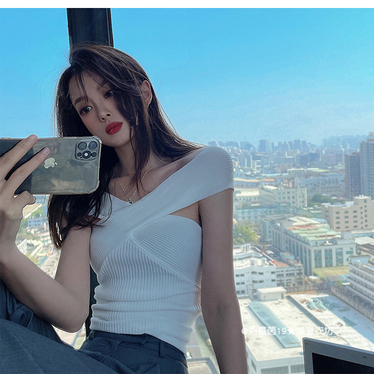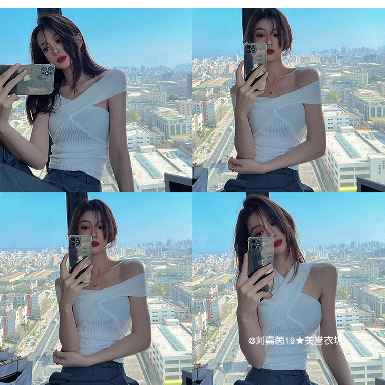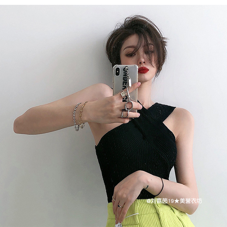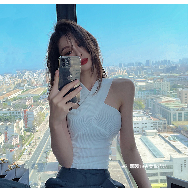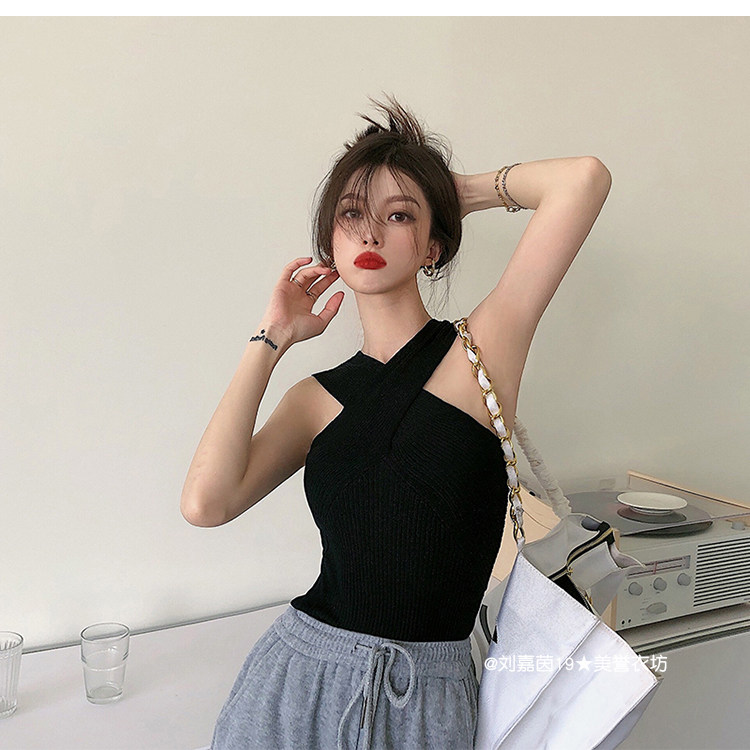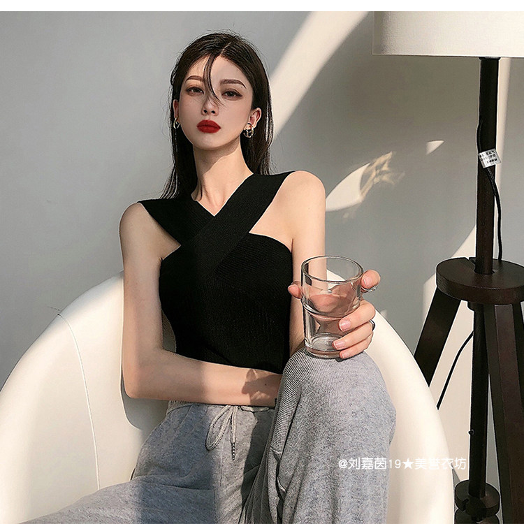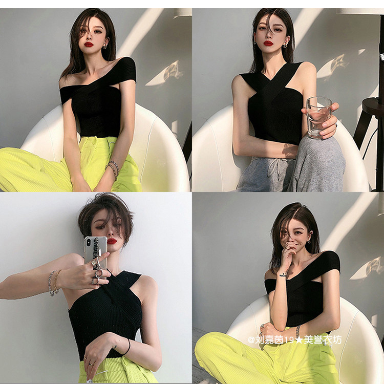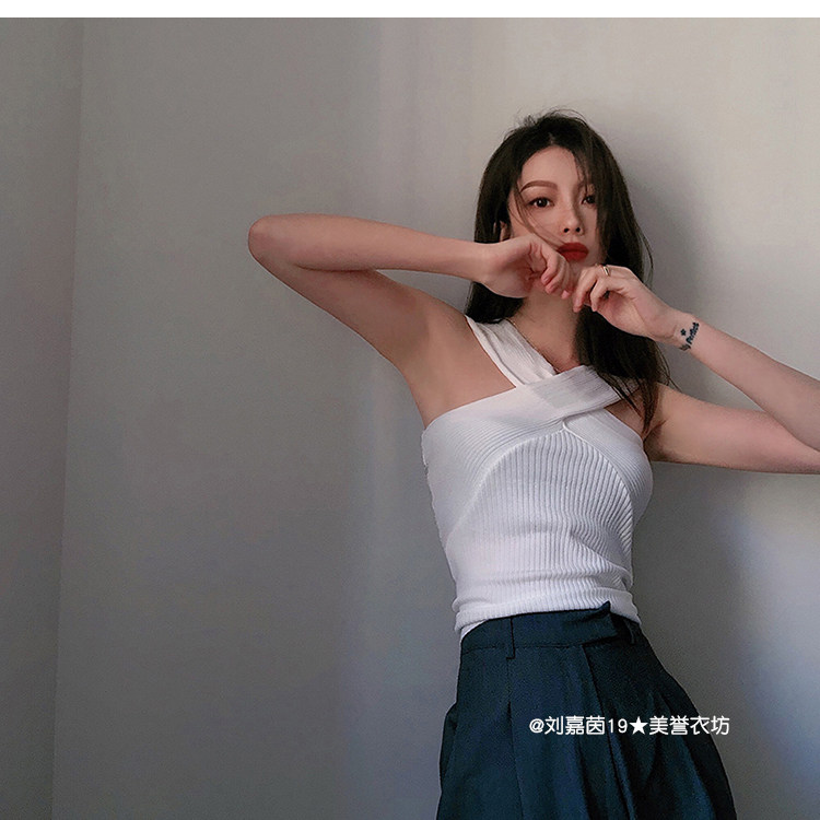 Горячий топ для девочек, жилет с бретельками на шее, свитер с бретельками на шее, стиль чистой похоти, осторожный топ на одно плечо для джазовых танцев, джазовый топ