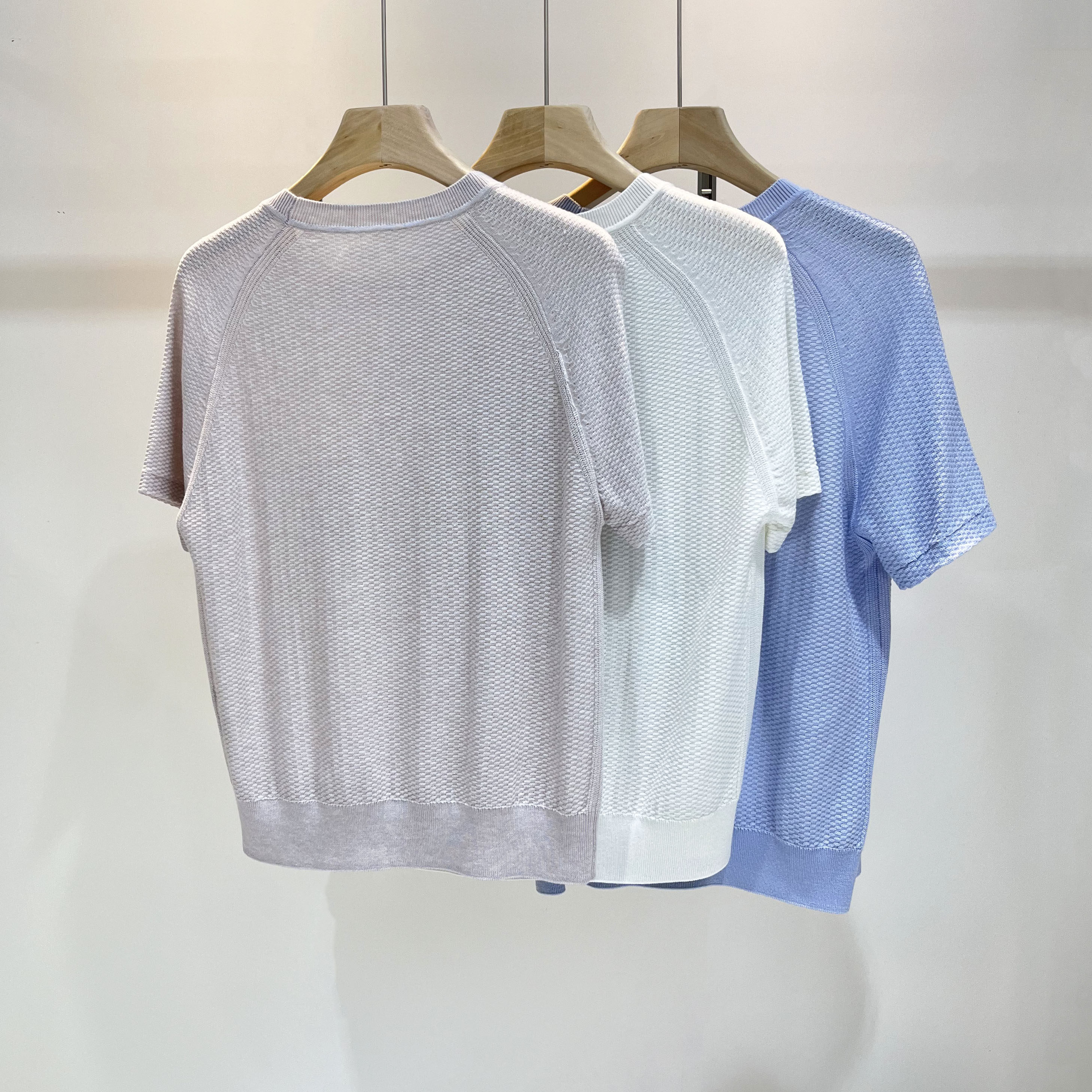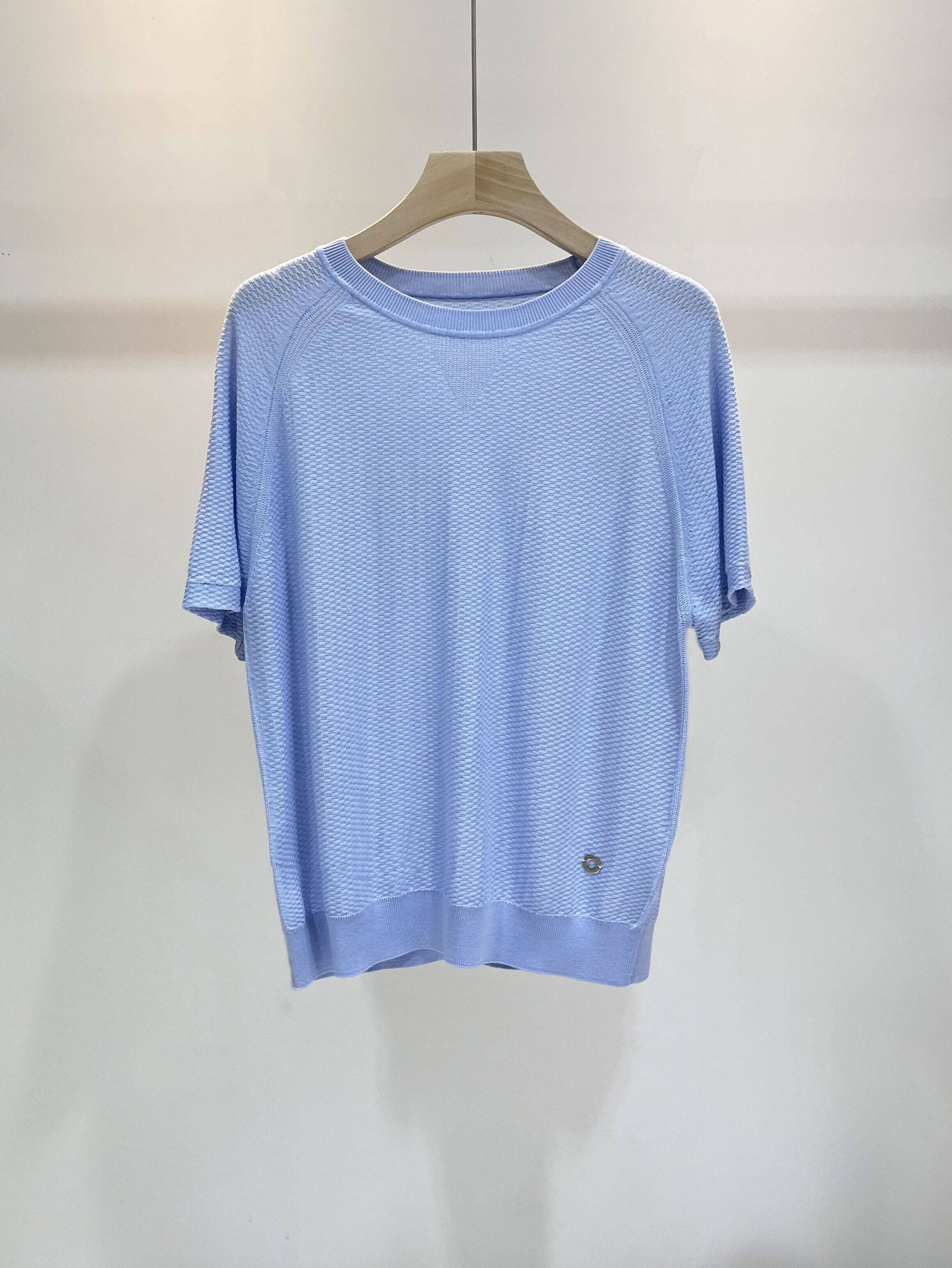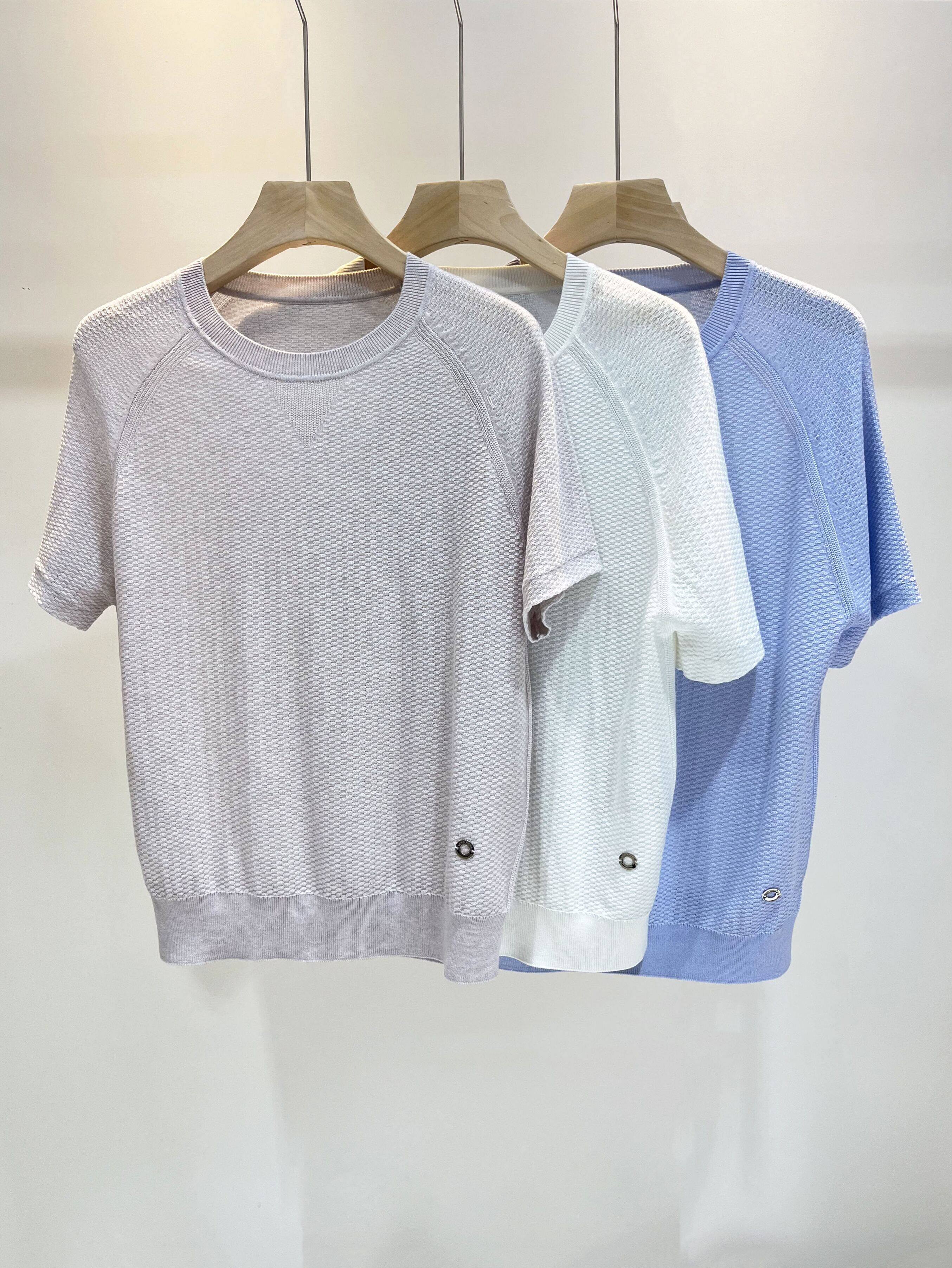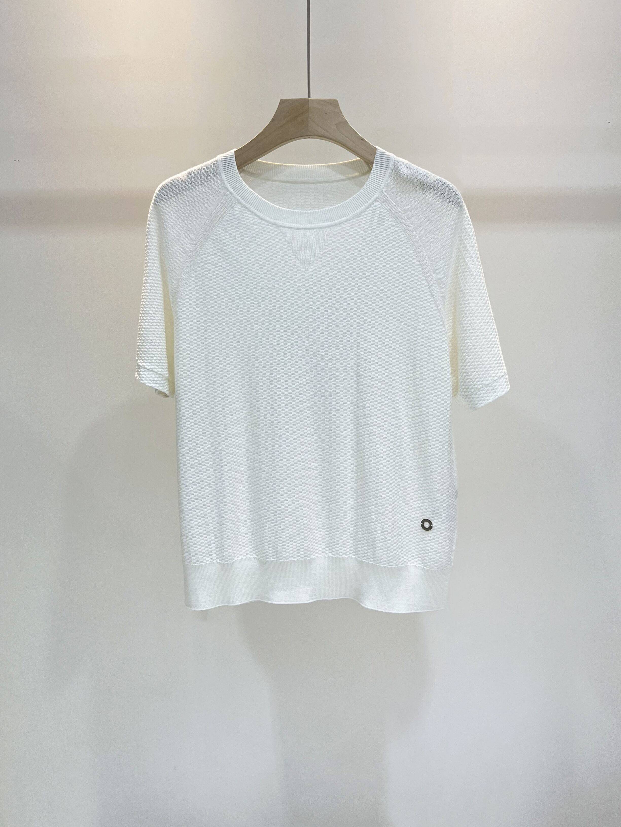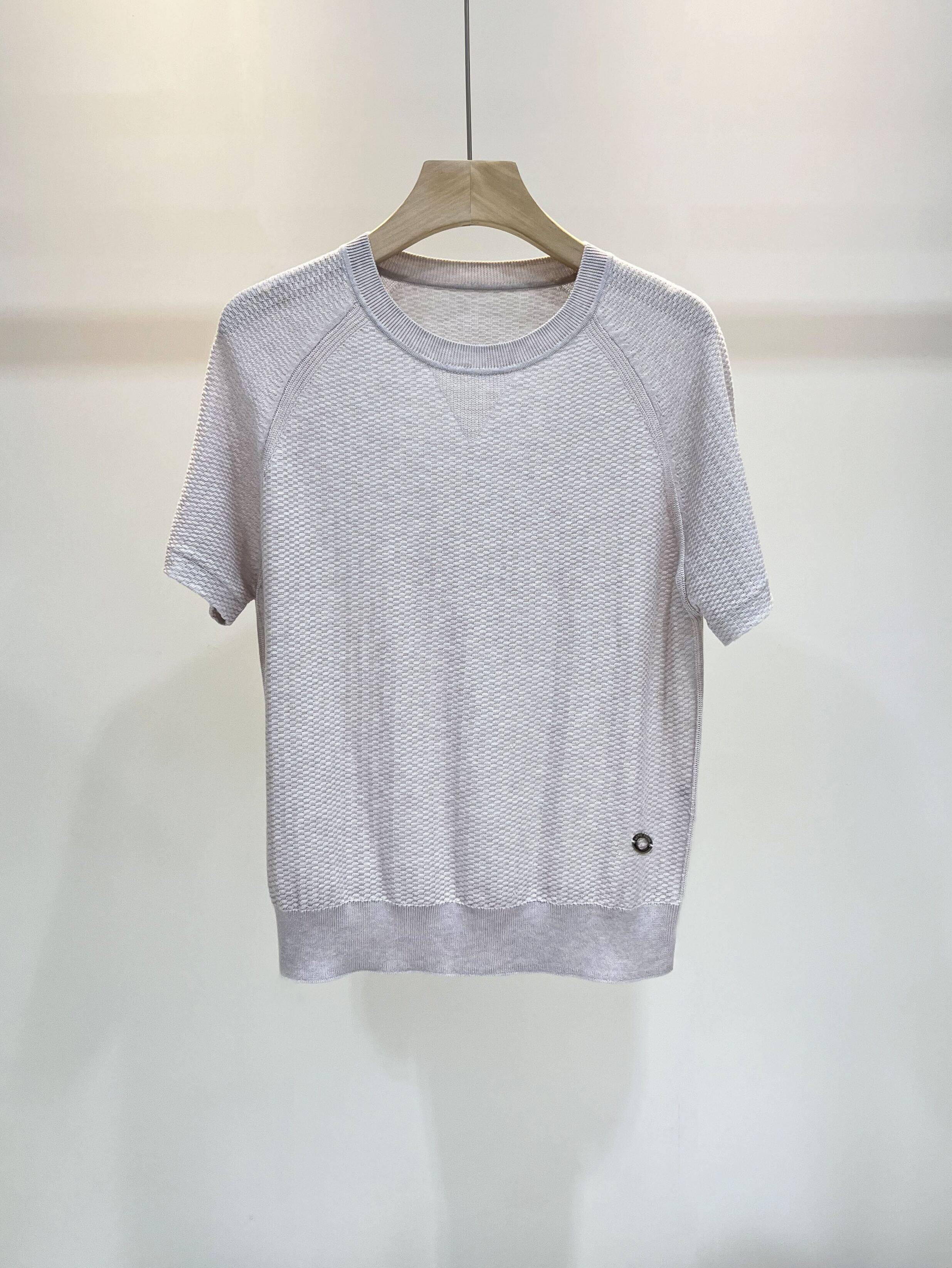 Шерстяная трикотажная легкая и тонкая футболка с коротким рукавом с круглым воротником