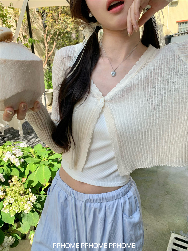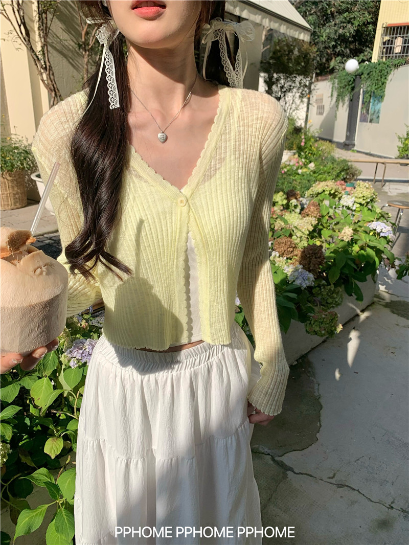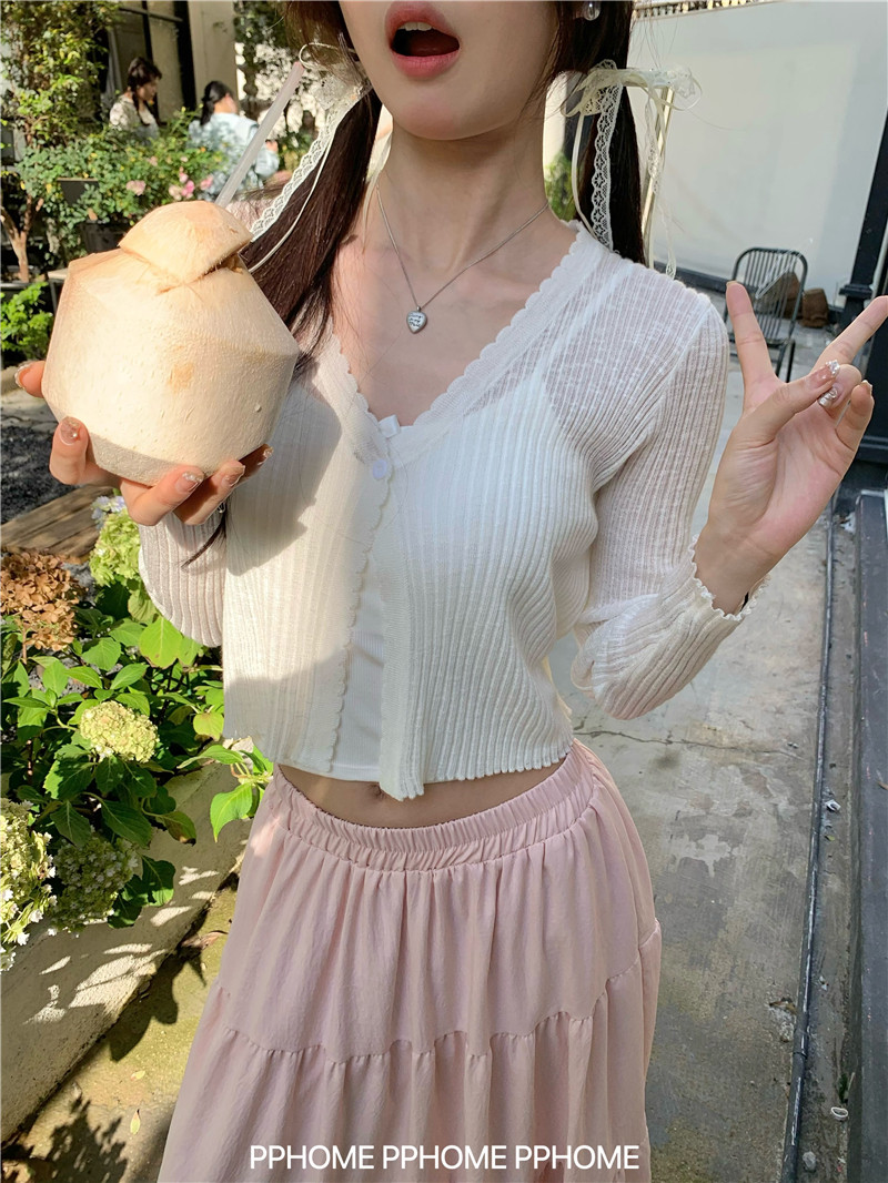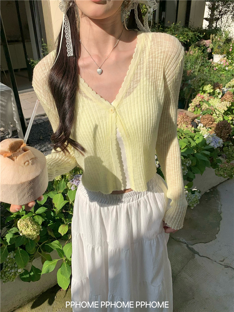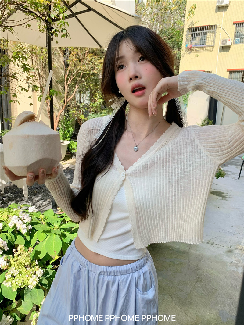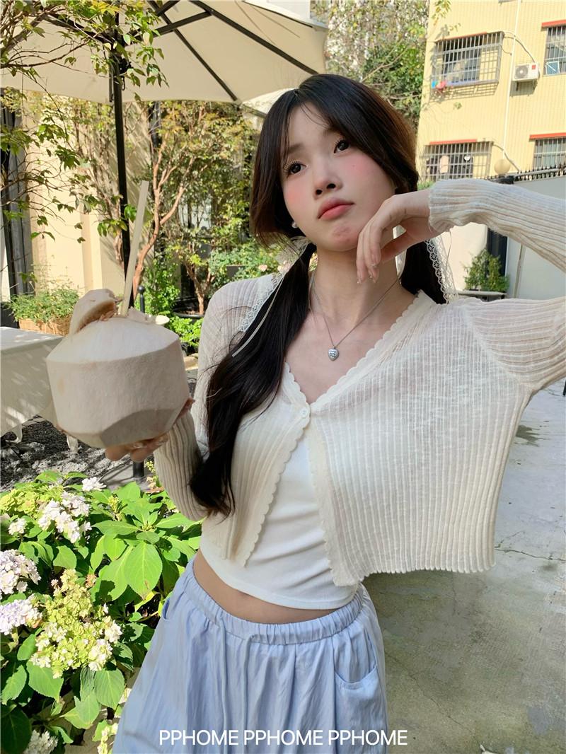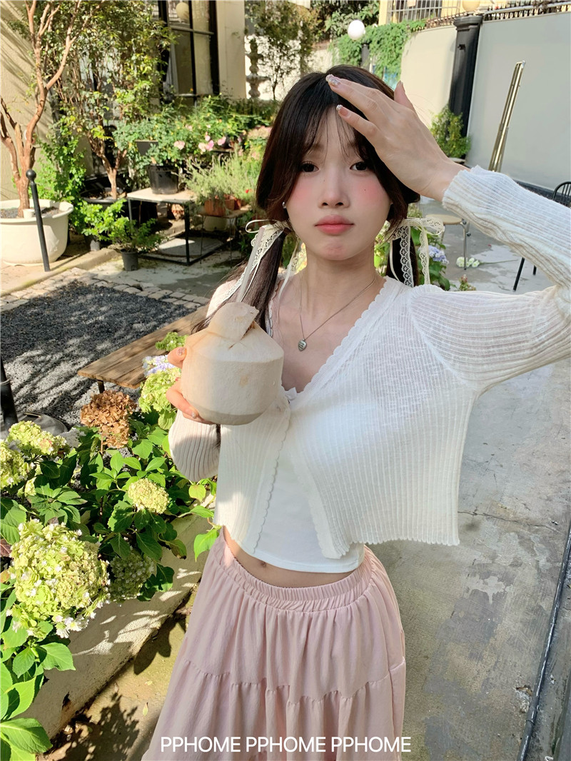 PPHOME домашний ~ ледяной шелк, открытая 𫔭 рубашка летняя легкая трикотажная с длинными рукавами открытая 𫔭 рубашка белая солнцезащитная блузка короткий топ для женщин