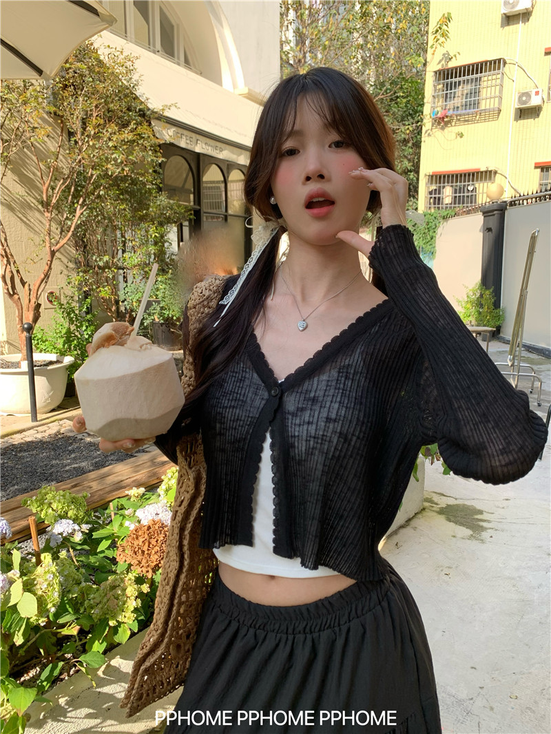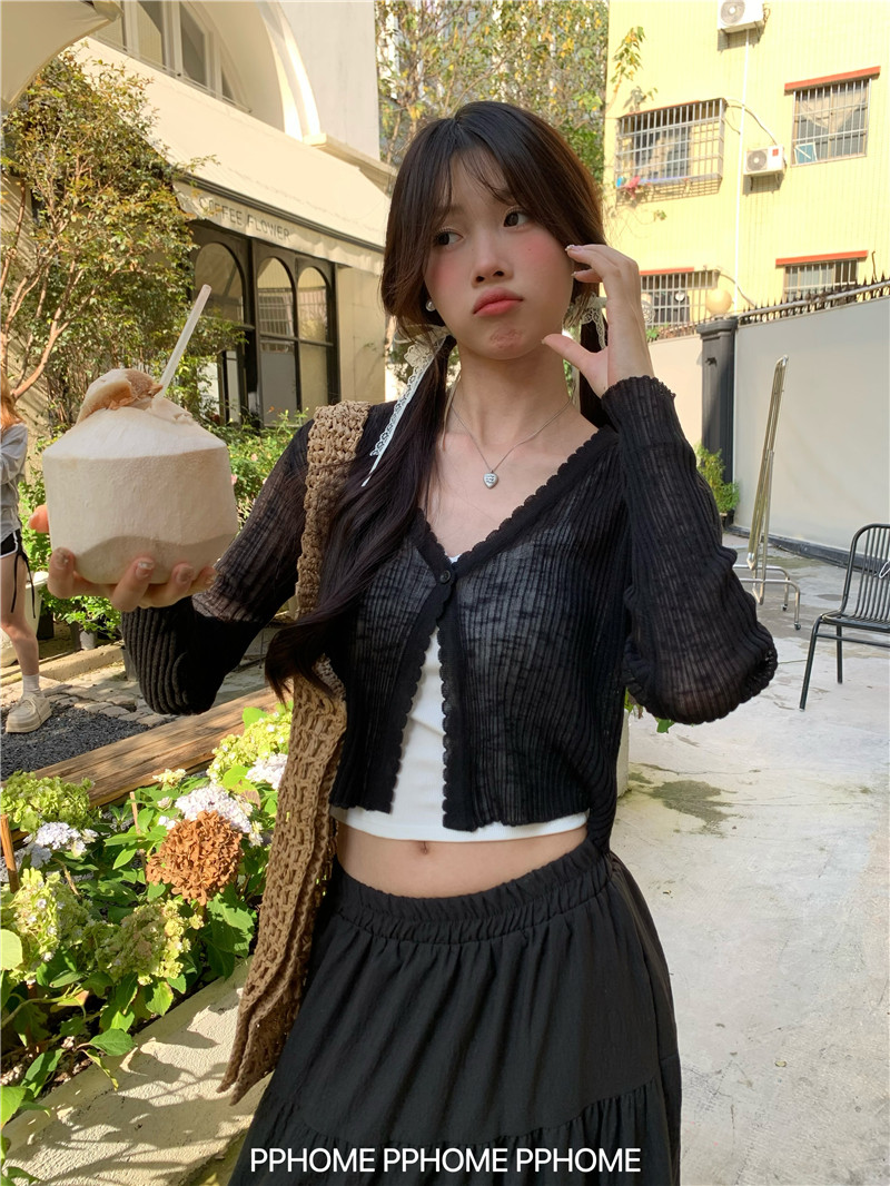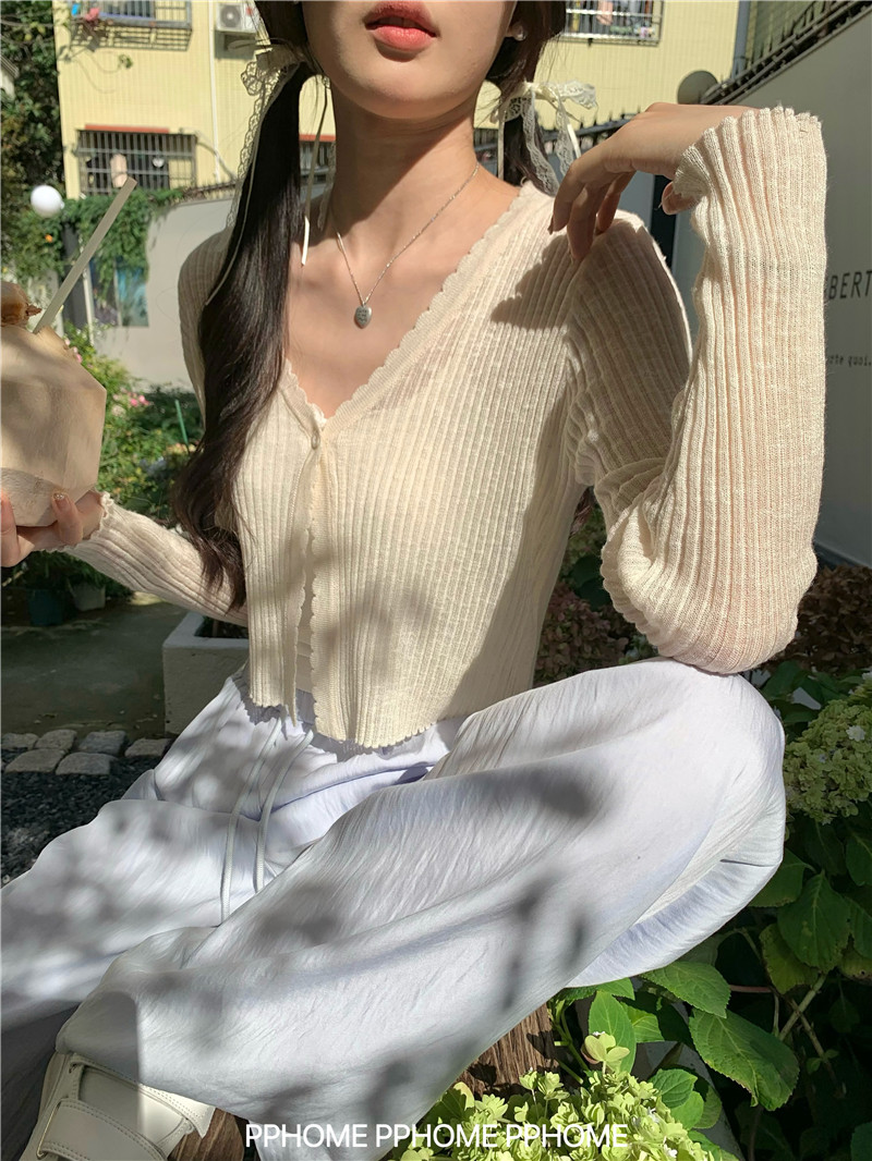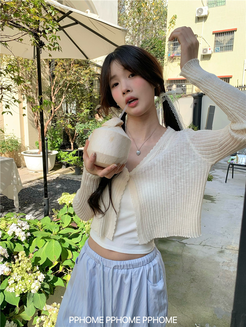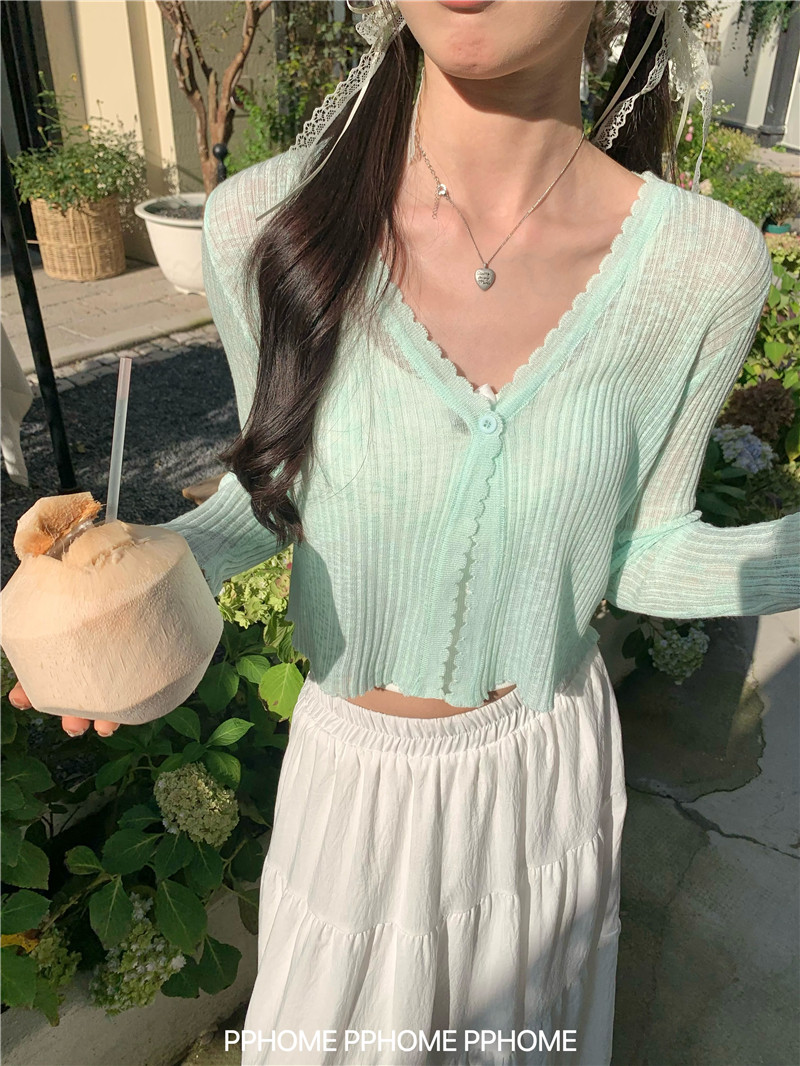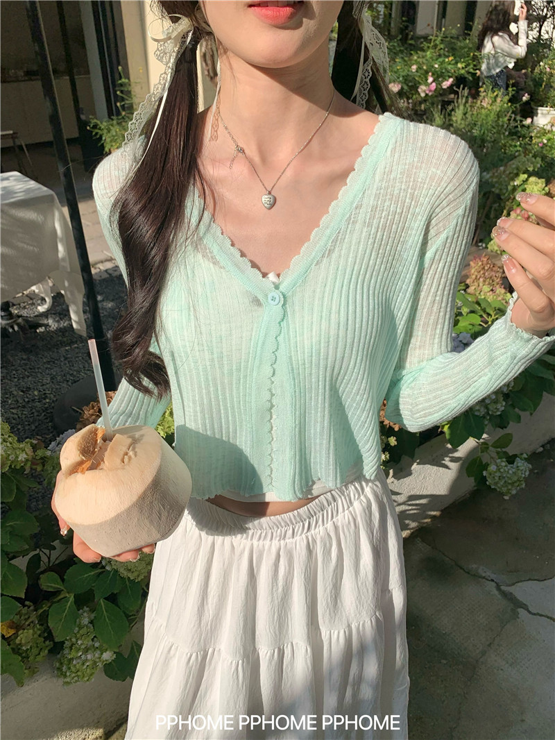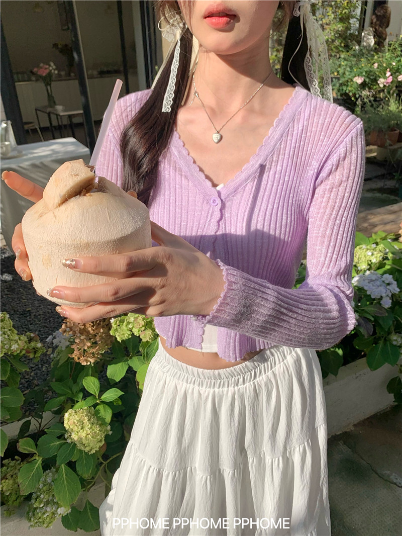 PPHOME домашний ~ ледяной шелк, открытая 𫔭 рубашка летняя легкая трикотажная с длинными рукавами открытая 𫔭 рубашка белая солнцезащитная блузка короткий топ для женщин