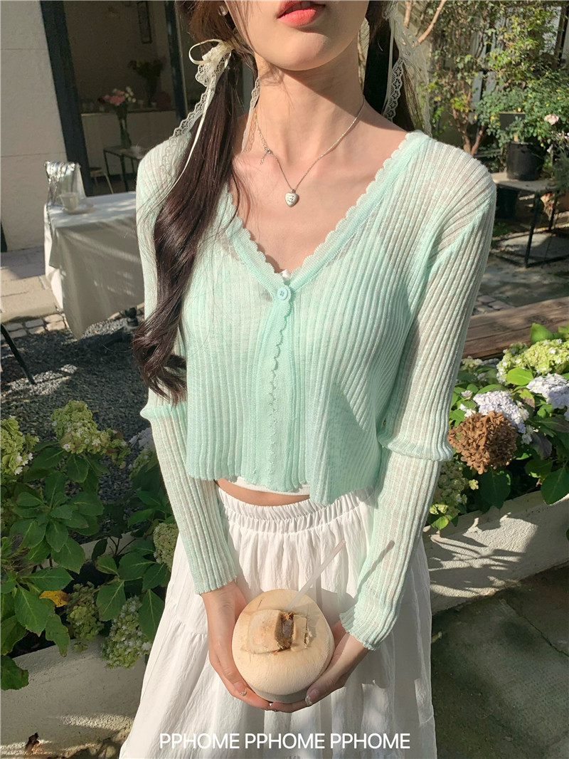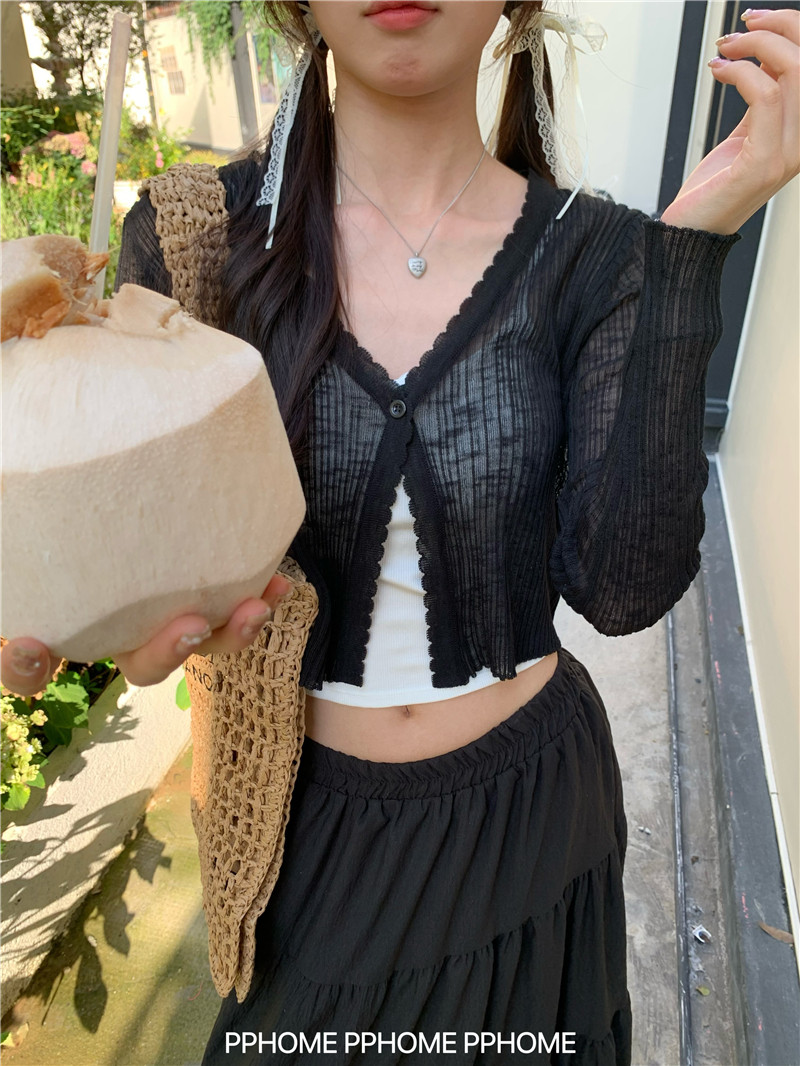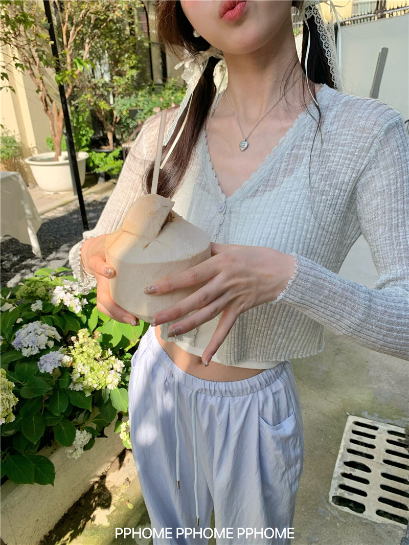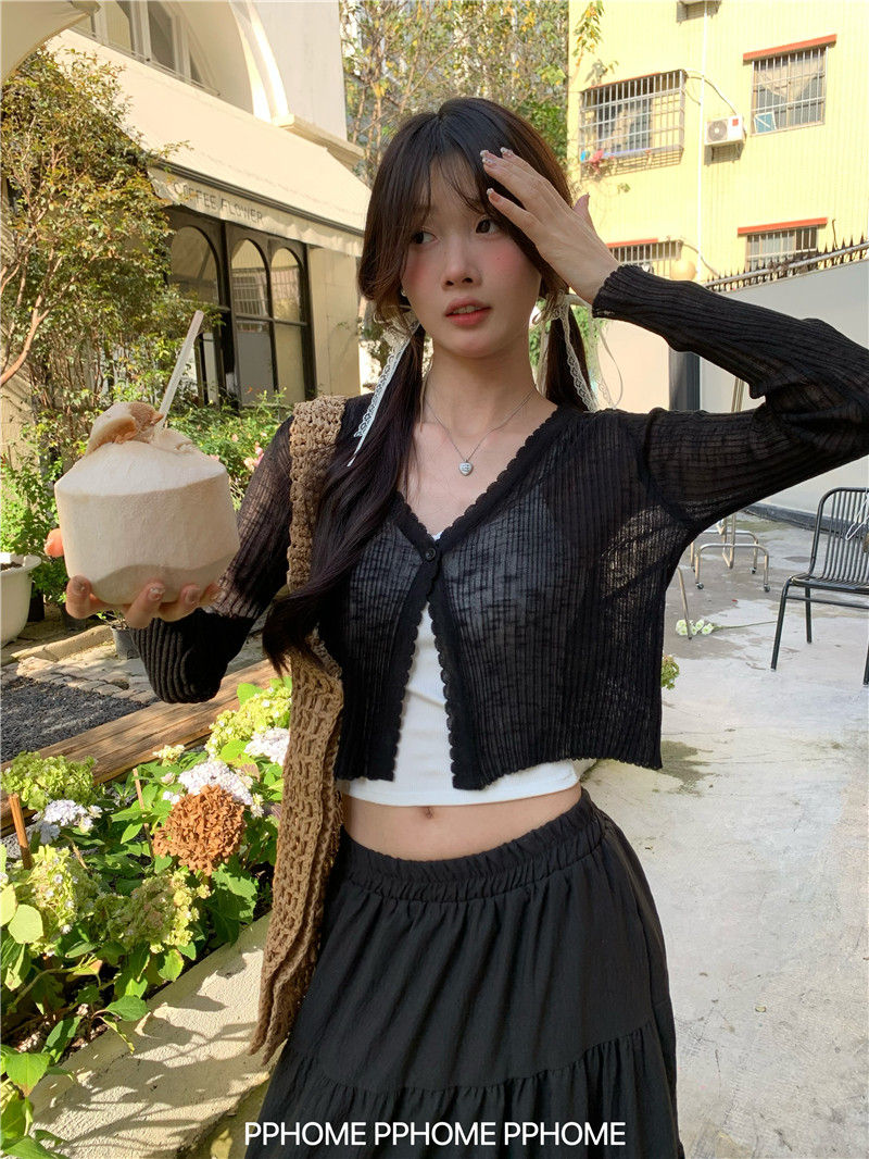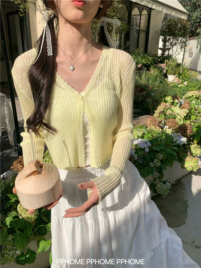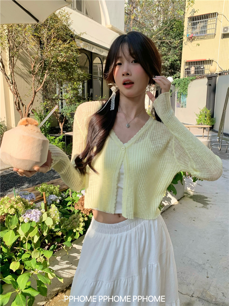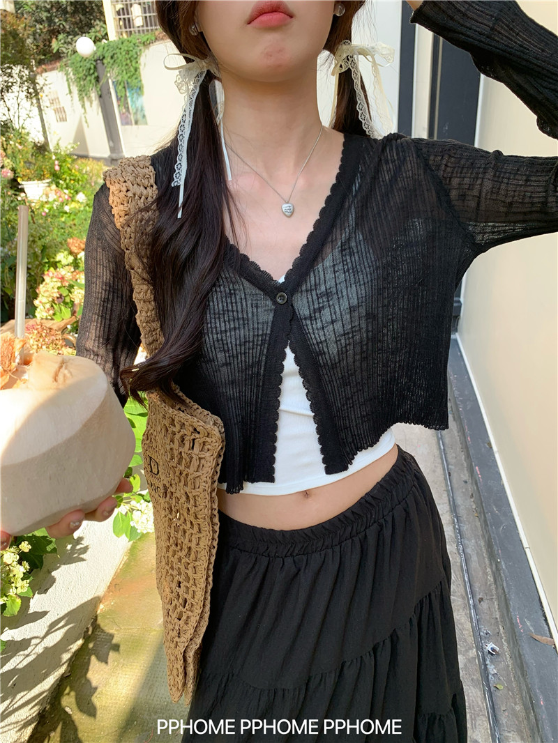 PPHOME домашний ~ ледяной шелк, открытая 𫔭 рубашка летняя легкая трикотажная с длинными рукавами открытая 𫔭 рубашка белая солнцезащитная блузка короткий топ для женщин
