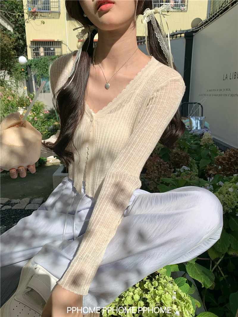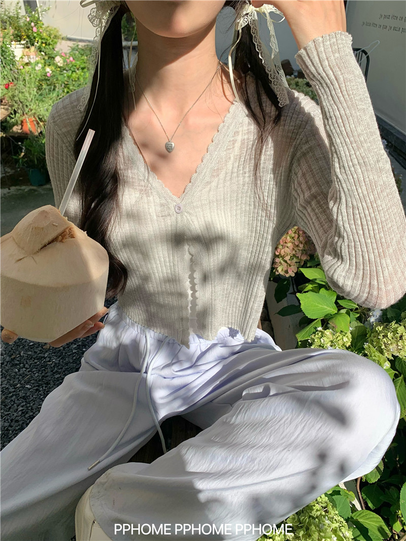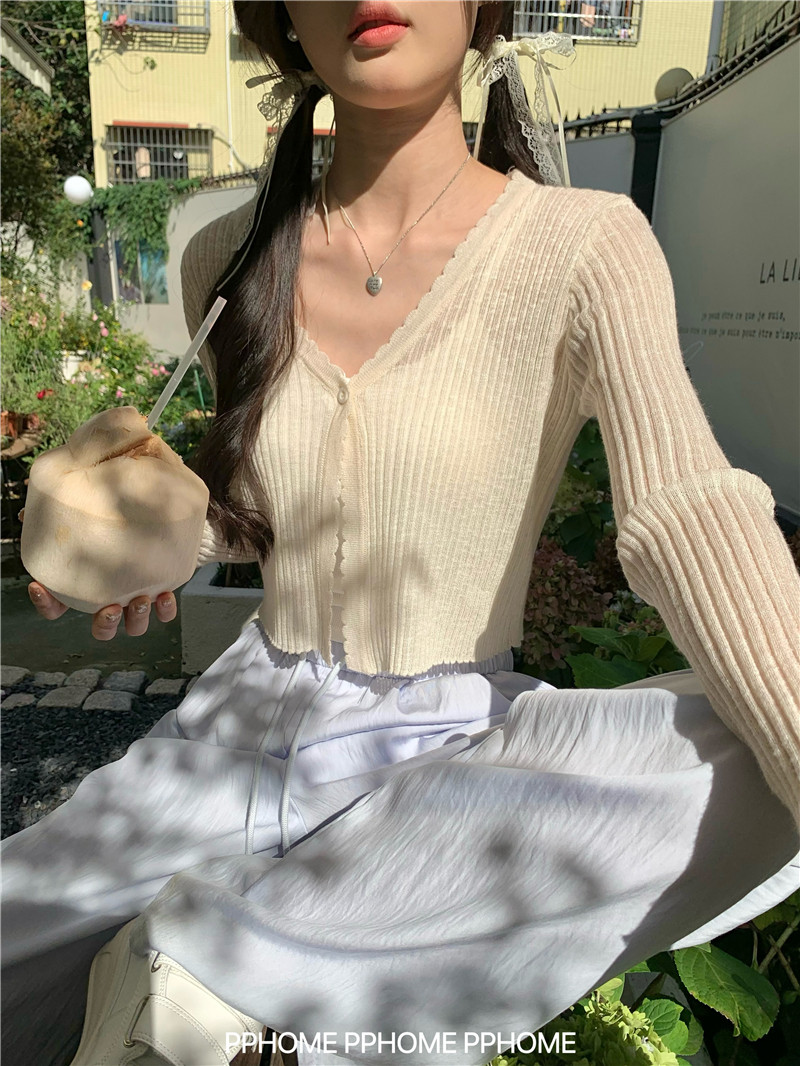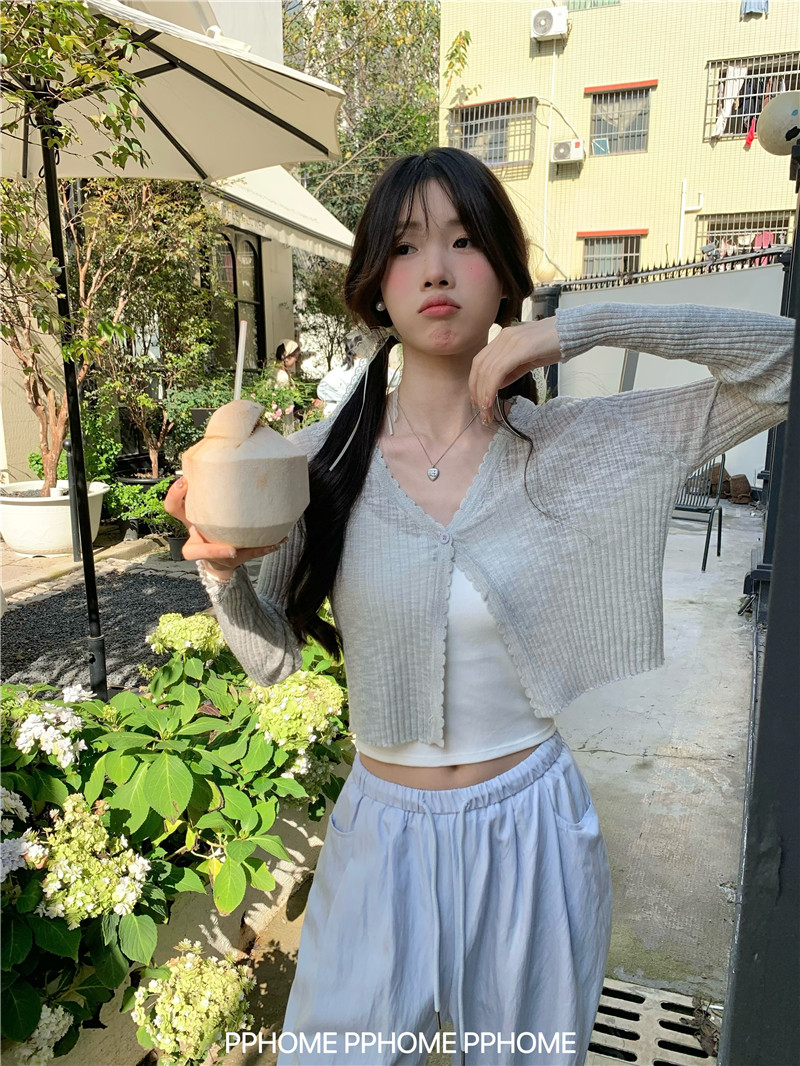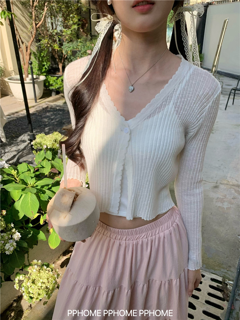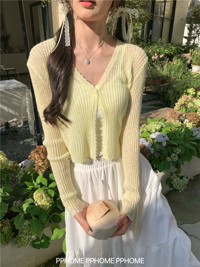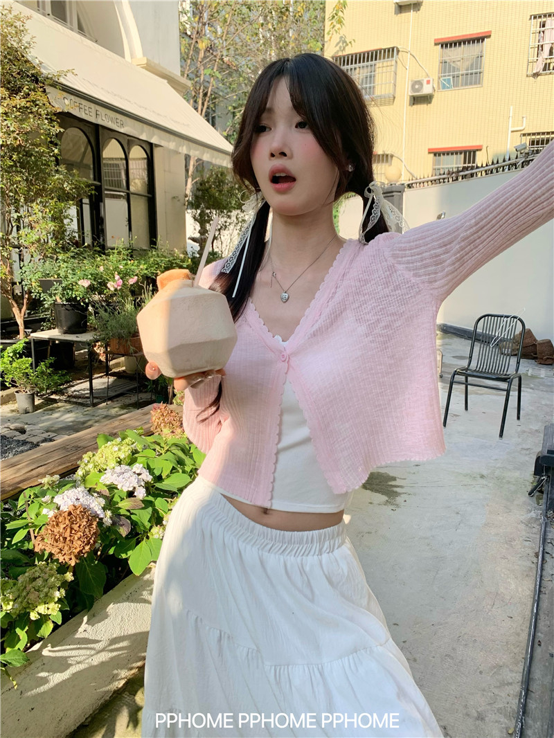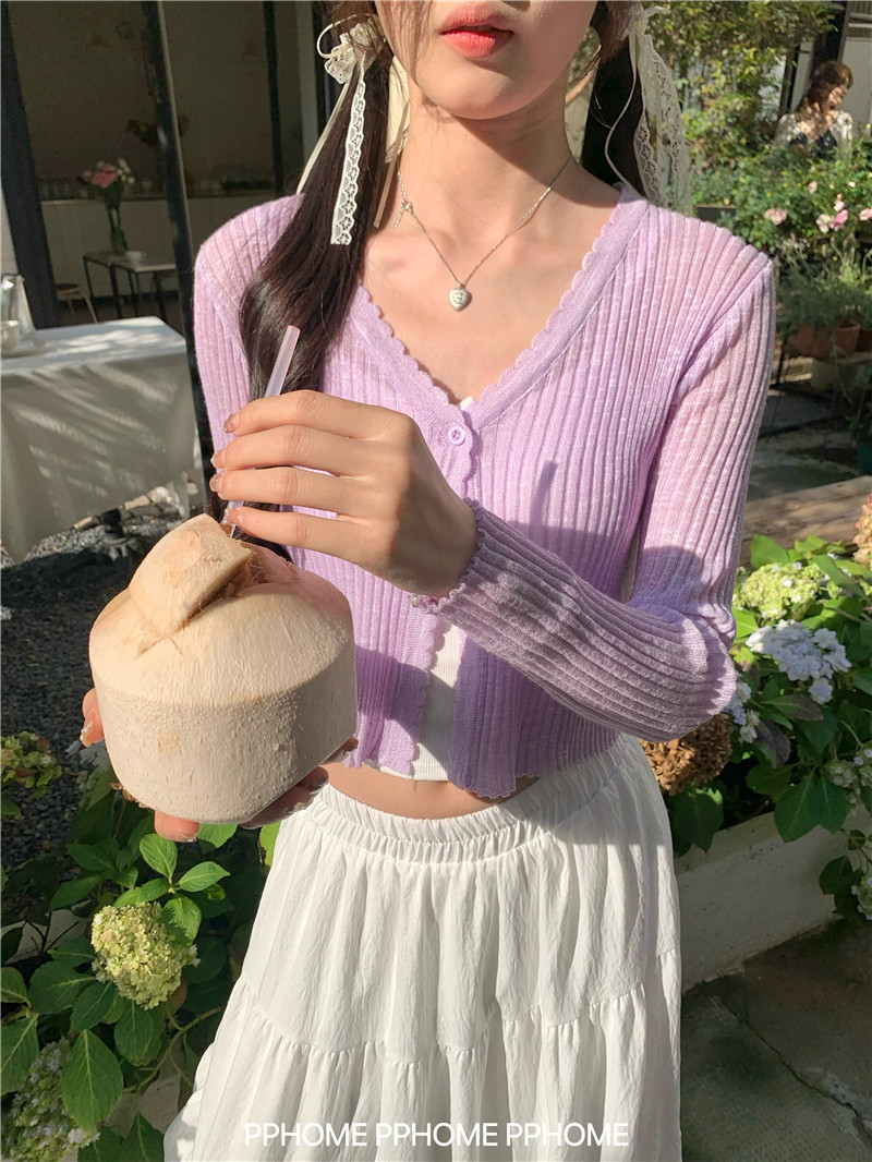 PPHOME домашний ~ ледяной шелк, открытая 𫔭 рубашка летняя легкая трикотажная с длинными рукавами открытая 𫔭 рубашка белая солнцезащитная блузка короткий топ для женщин