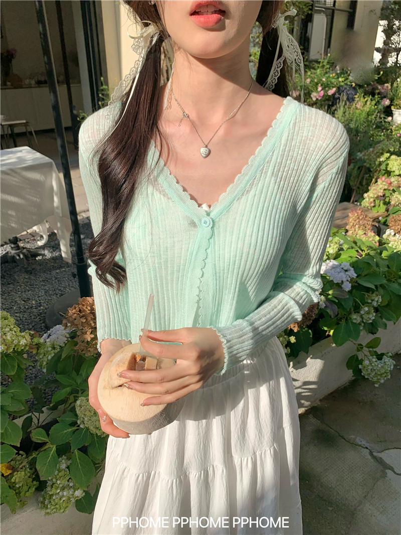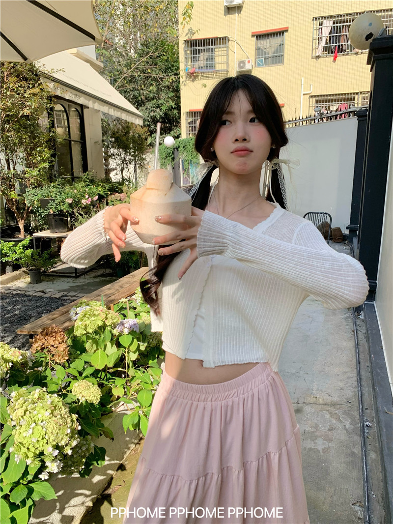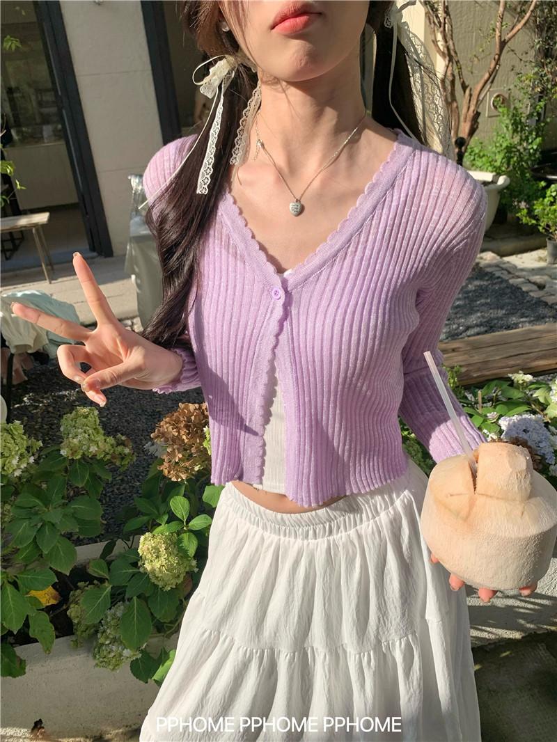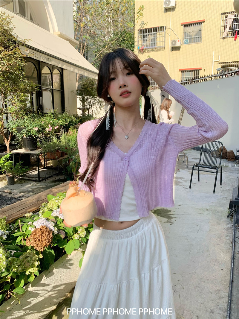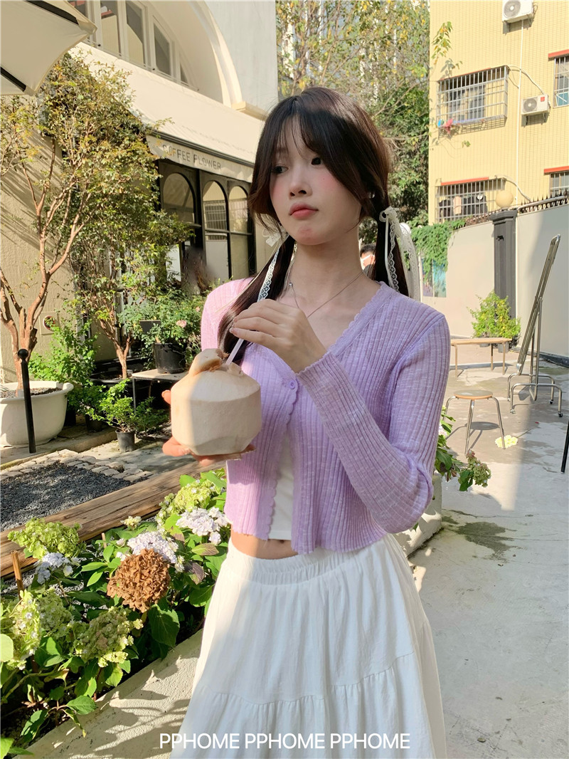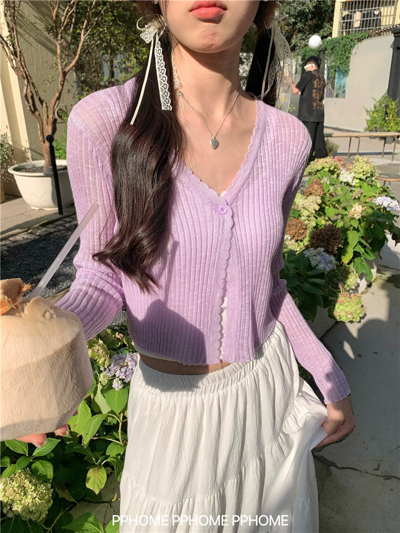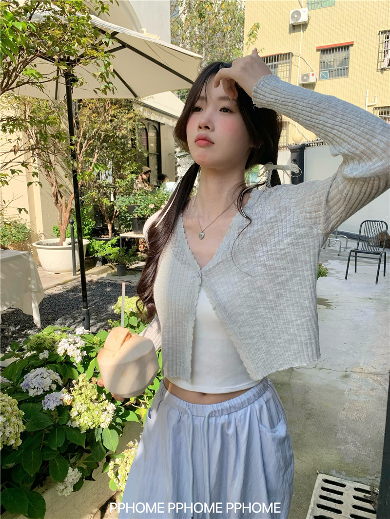 PPHOME домашний ~ ледяной шелк, открытая 𫔭 рубашка летняя легкая трикотажная с длинными рукавами открытая 𫔭 рубашка белая солнцезащитная блузка короткий топ для женщин