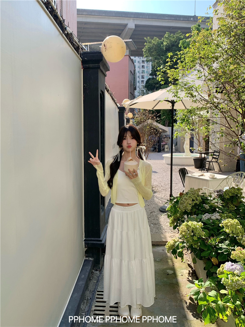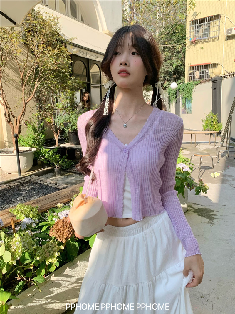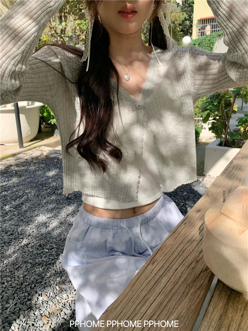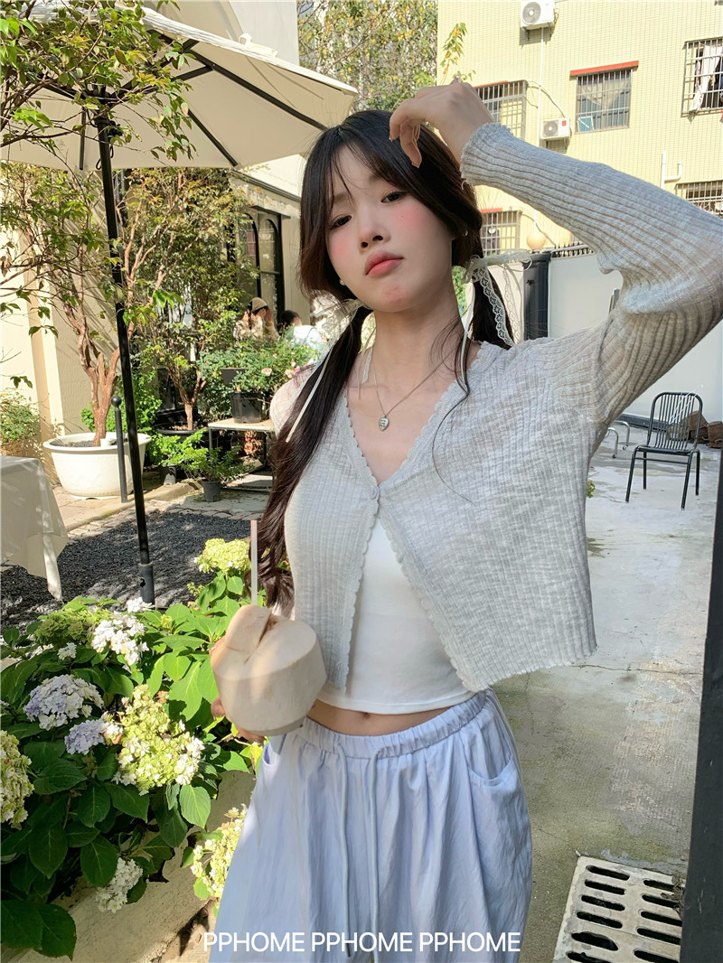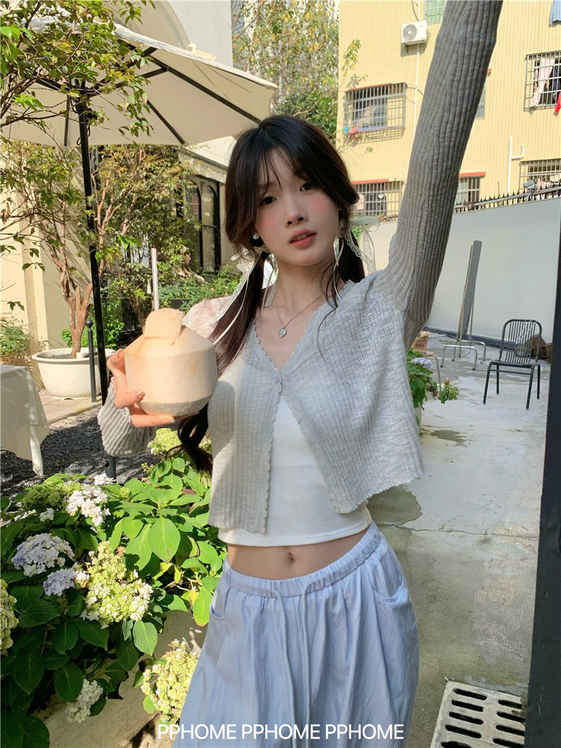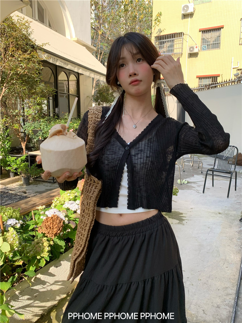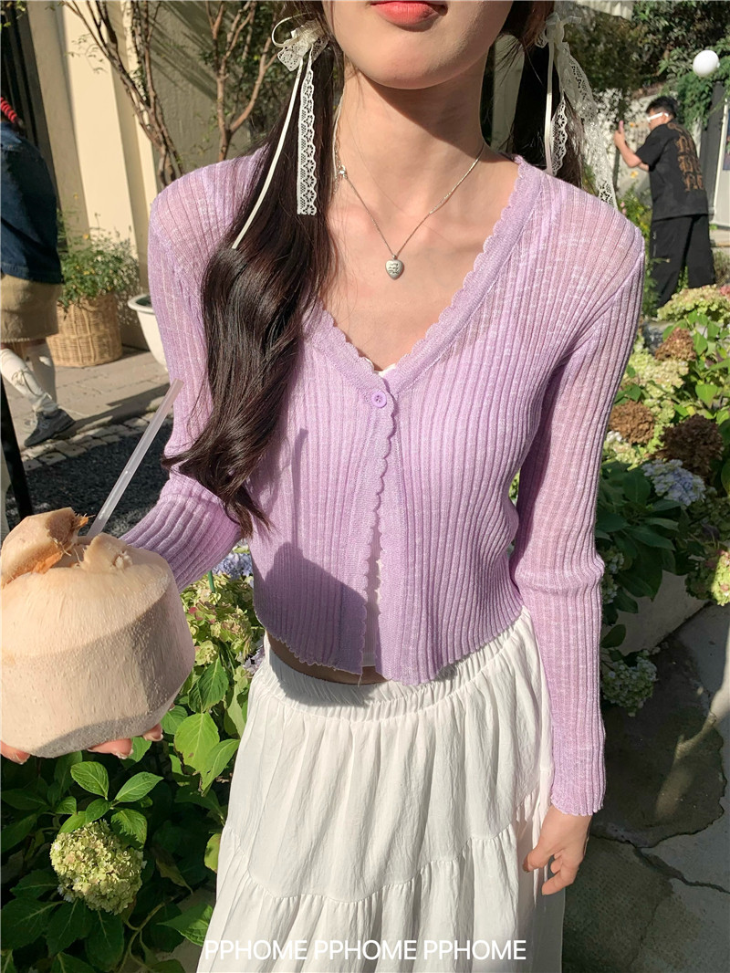PPHOME домашний ~ ледяной шелк, открытая 𫔭 рубашка летняя легкая трикотажная с длинными рукавами открытая 𫔭 рубашка белая солнцезащитная блузка короткий топ для женщин