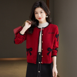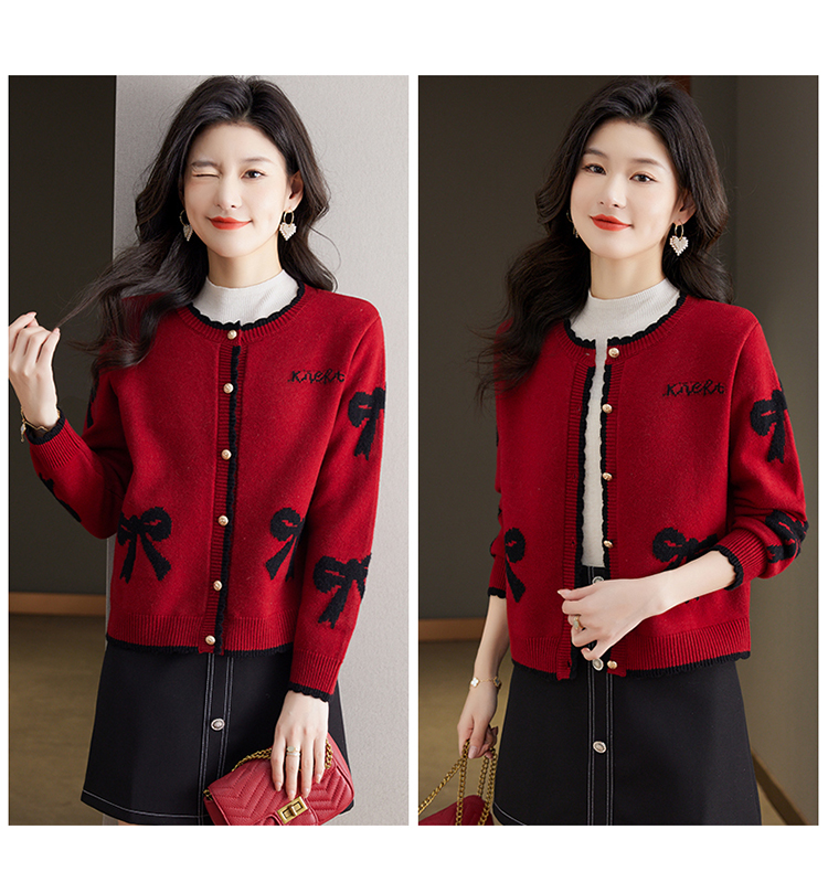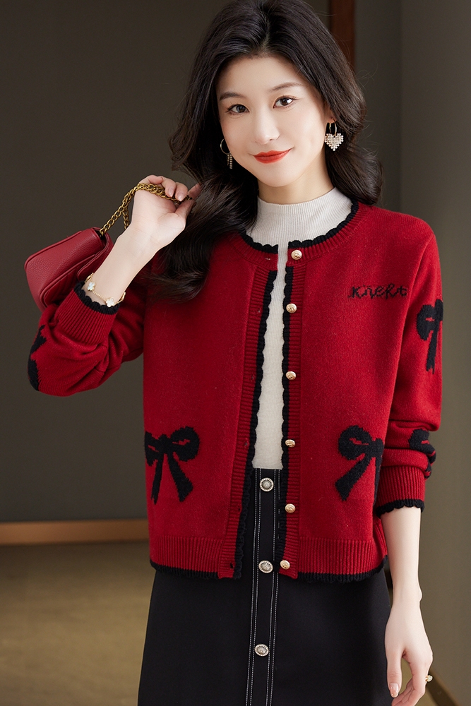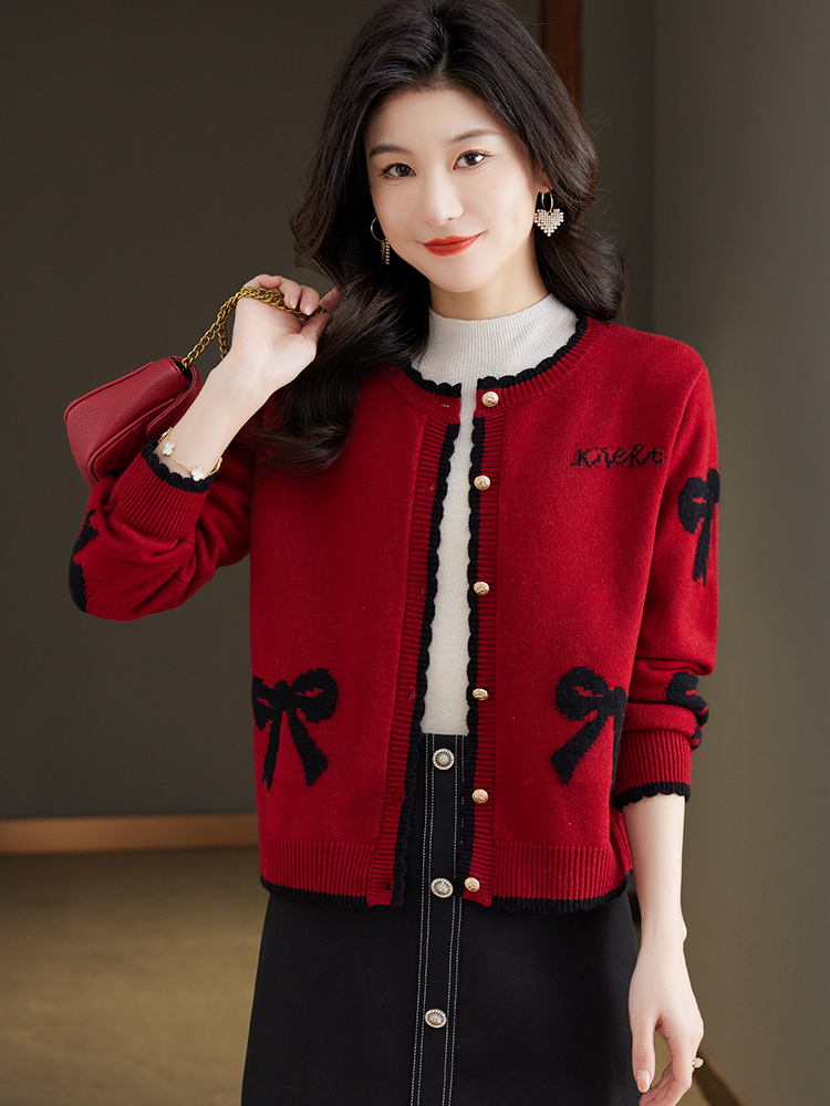 Весенняя красная трикотажная куртка, короткий кардиган, накидка, шерстяной свитер, в стиле Шанель, свободный крой, круглый воротник