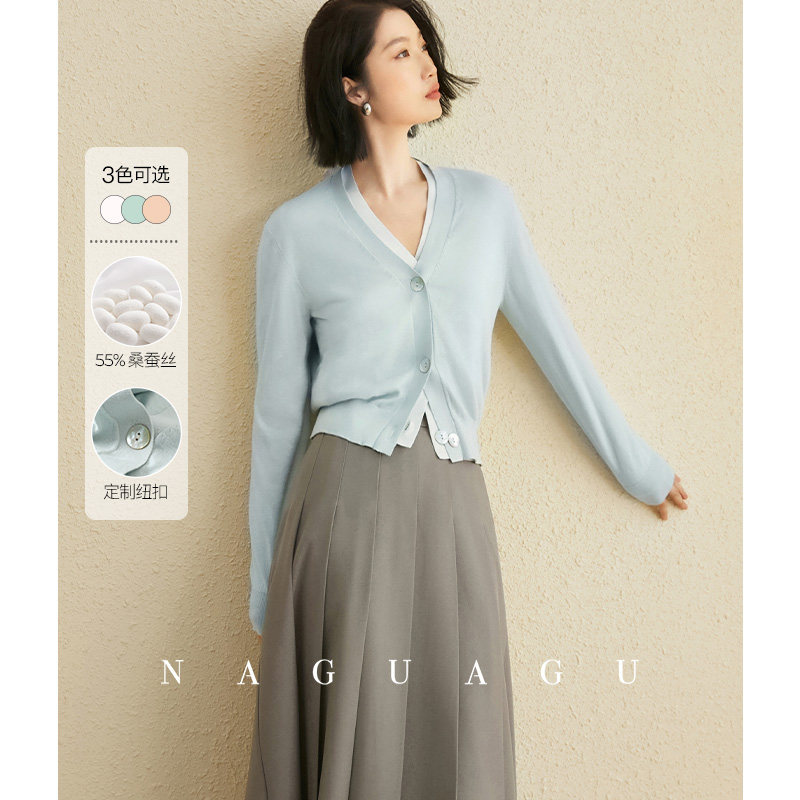 Весенний кардиган, шелковый тонкий лонгслив, трикотажный свитер, 2024 года