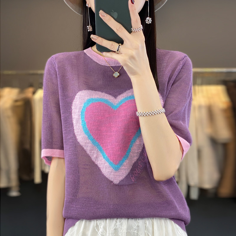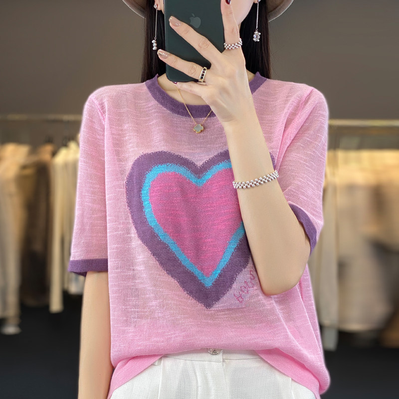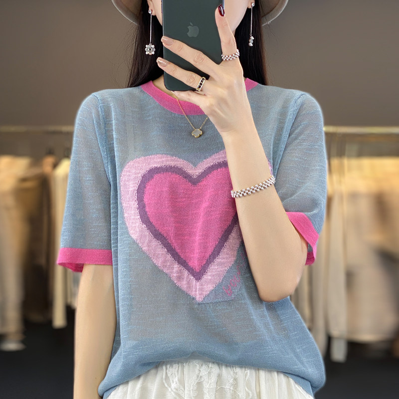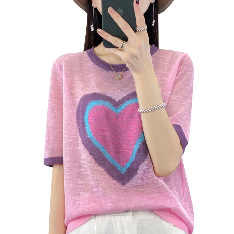 Летняя бамбуковая трикотажная шелковая футболка с круглым воротником, короткий рукав, в корейском стиле, в западном стиле