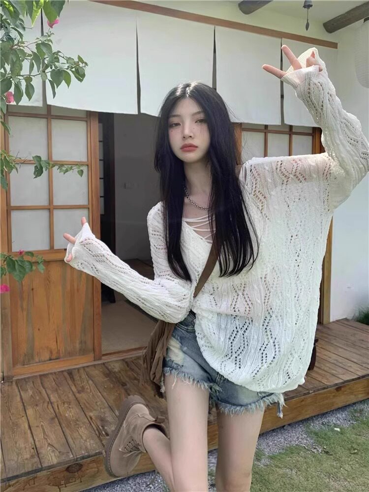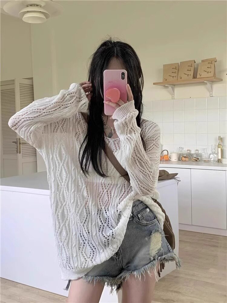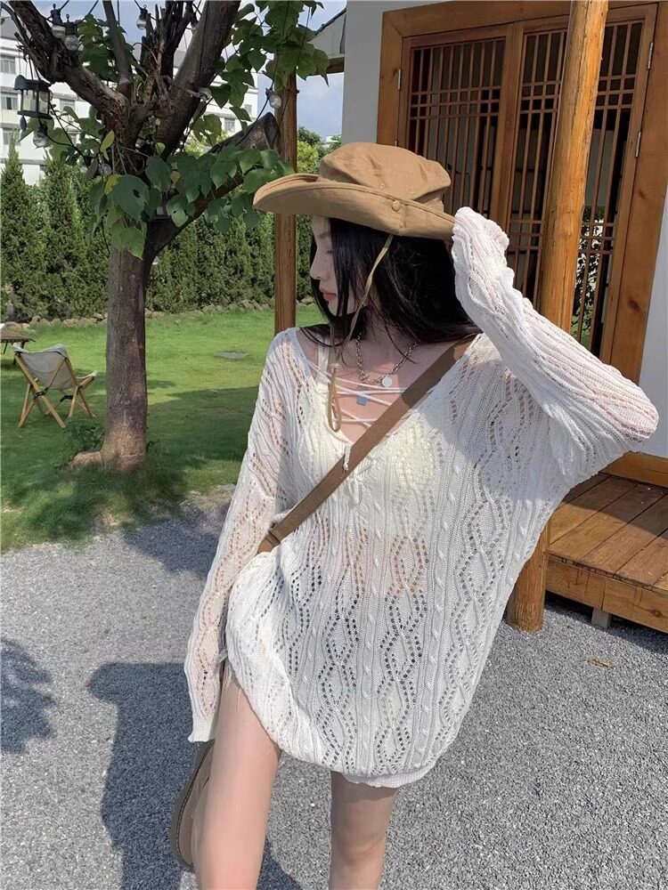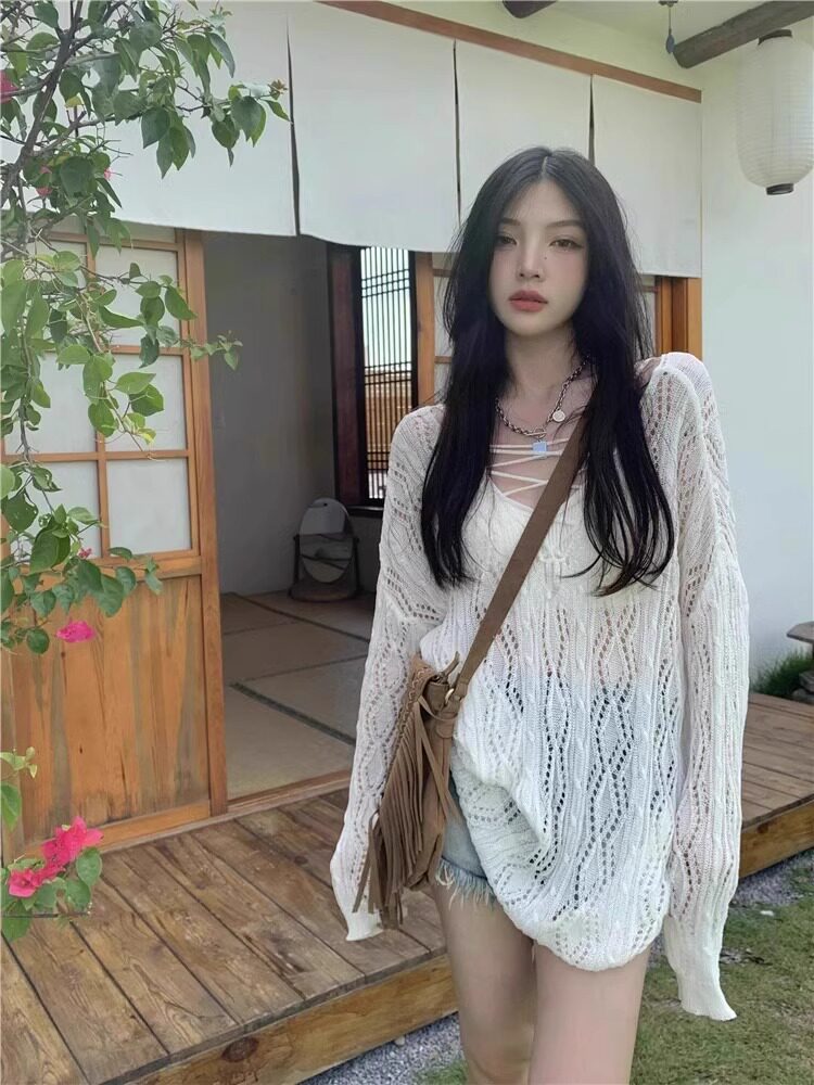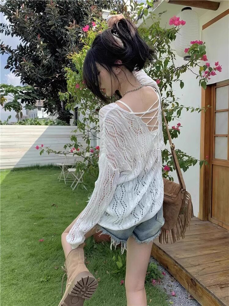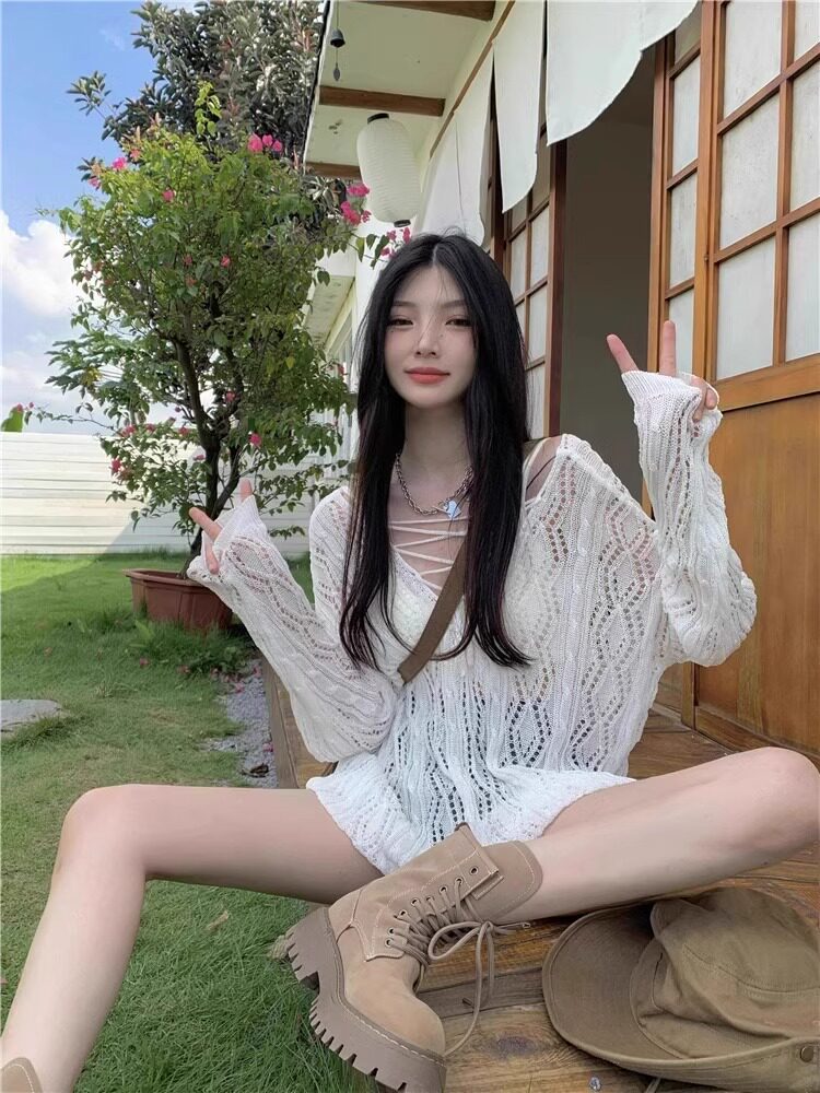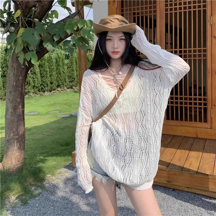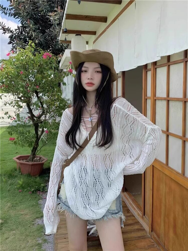 V -neck Hot Girl Hook Flower Hollow Sweater Summer 2024 Новый кросс -система Bandin Pour Jersey
