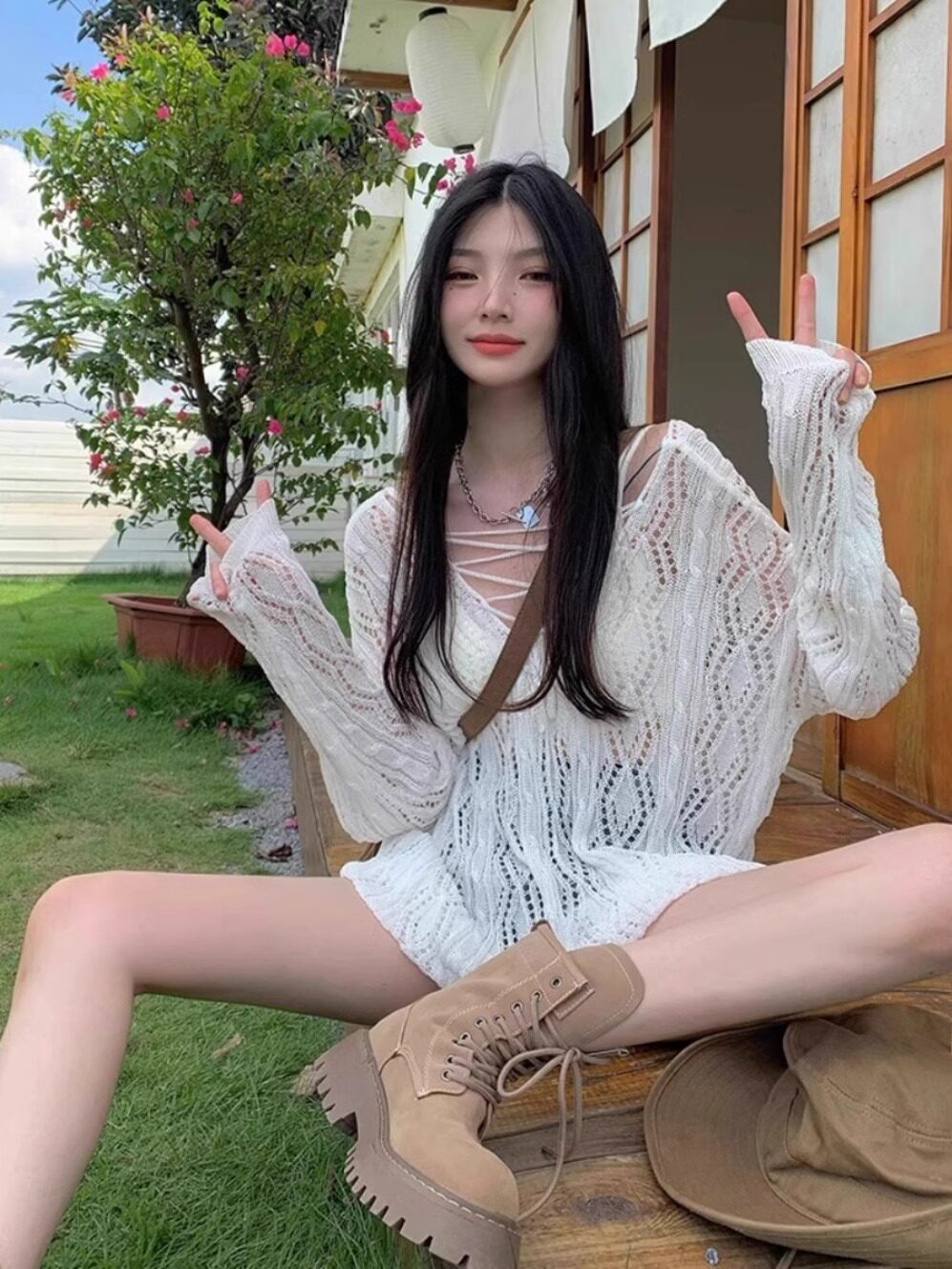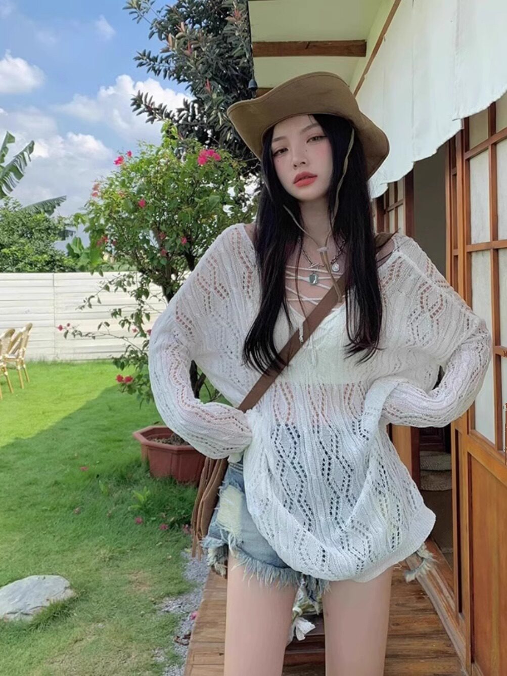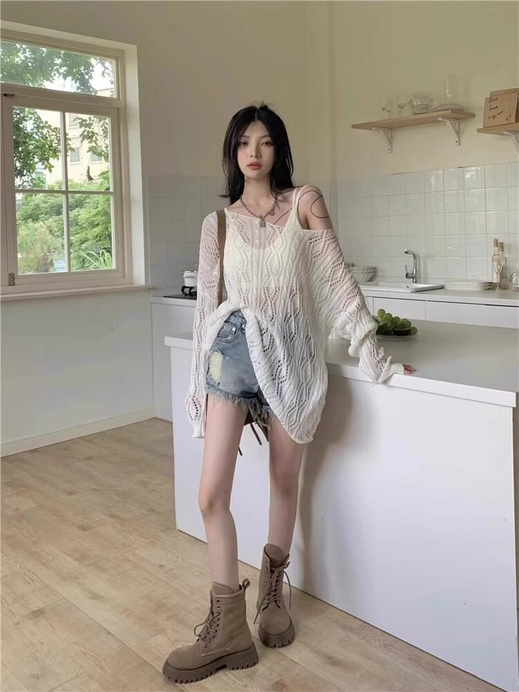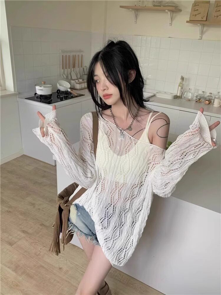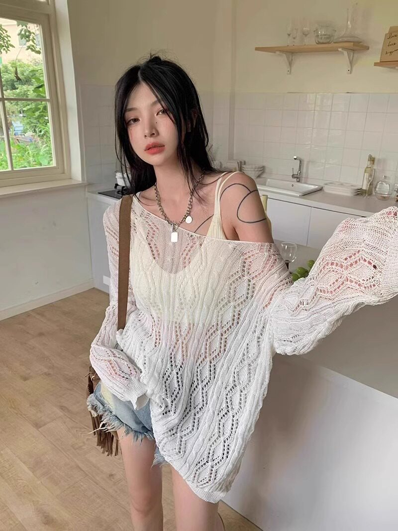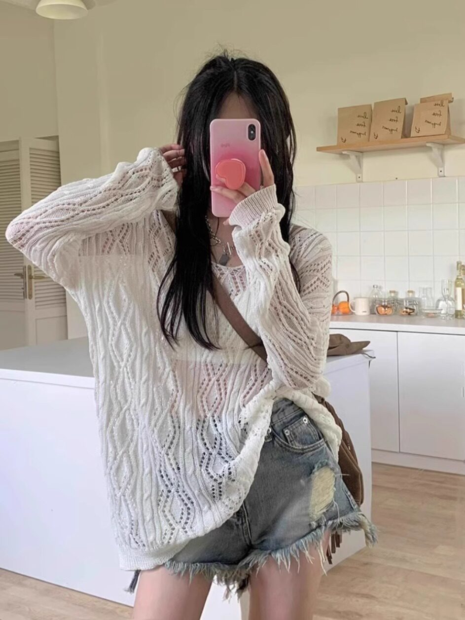 V -neck Hot Girl Hook Flower Hollow Sweater Summer 2024 Новый кросс -система Bandin Pour Jersey