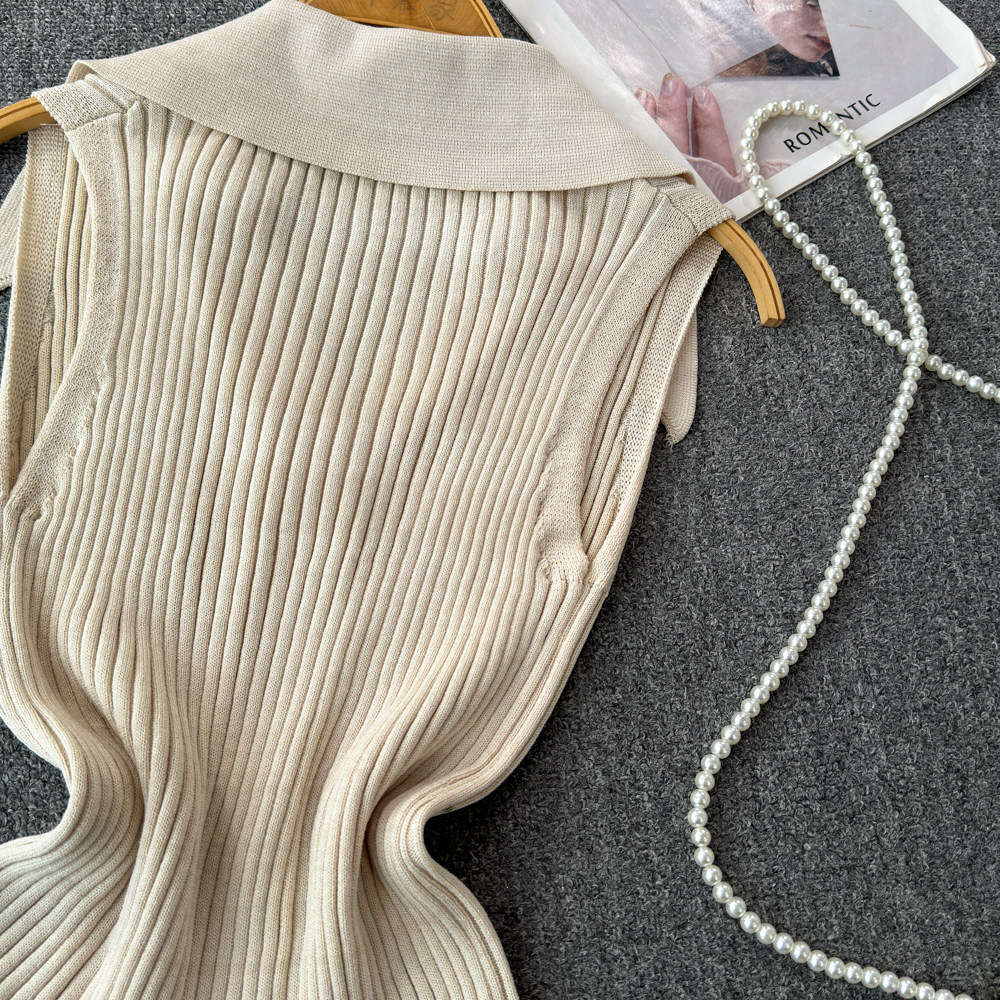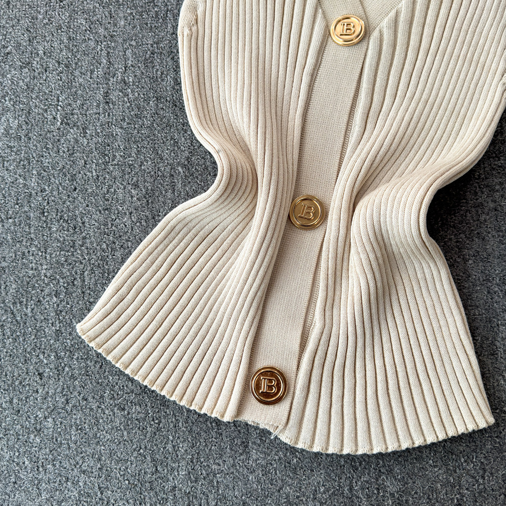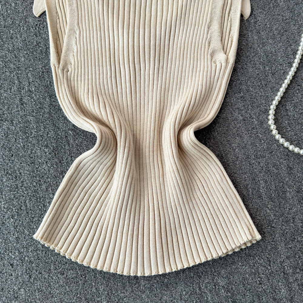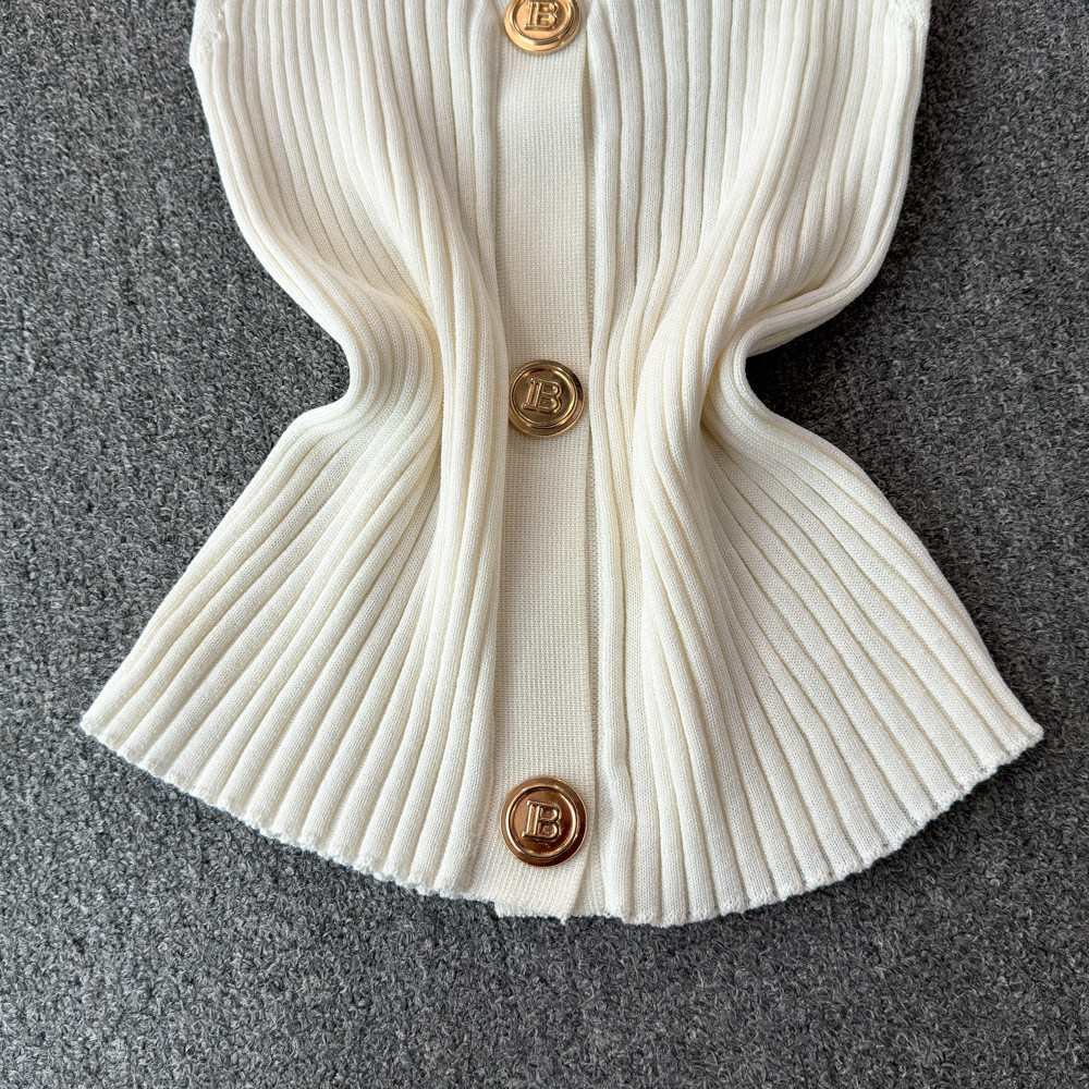 Трикотажный жилет, тонкая дизайнерская короткая майка топ, в стиле Шанель, тренд сезона, воротник поло
