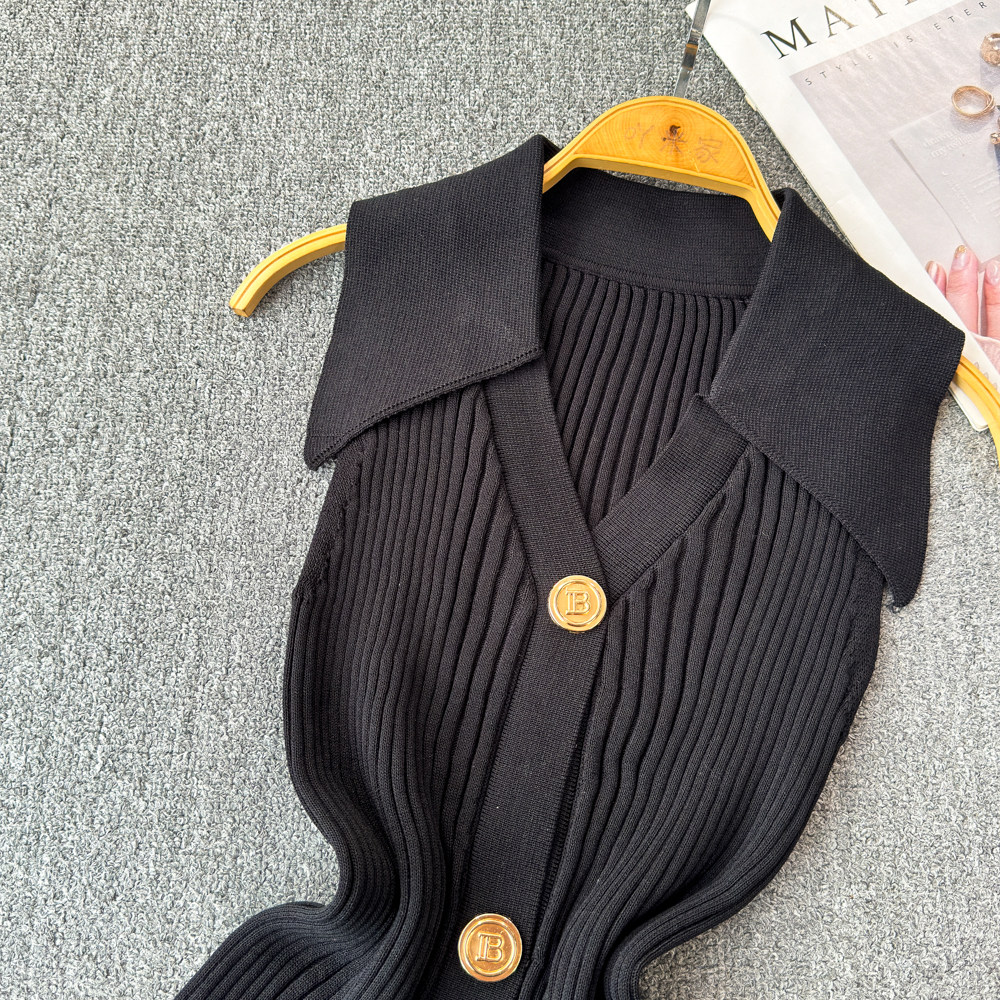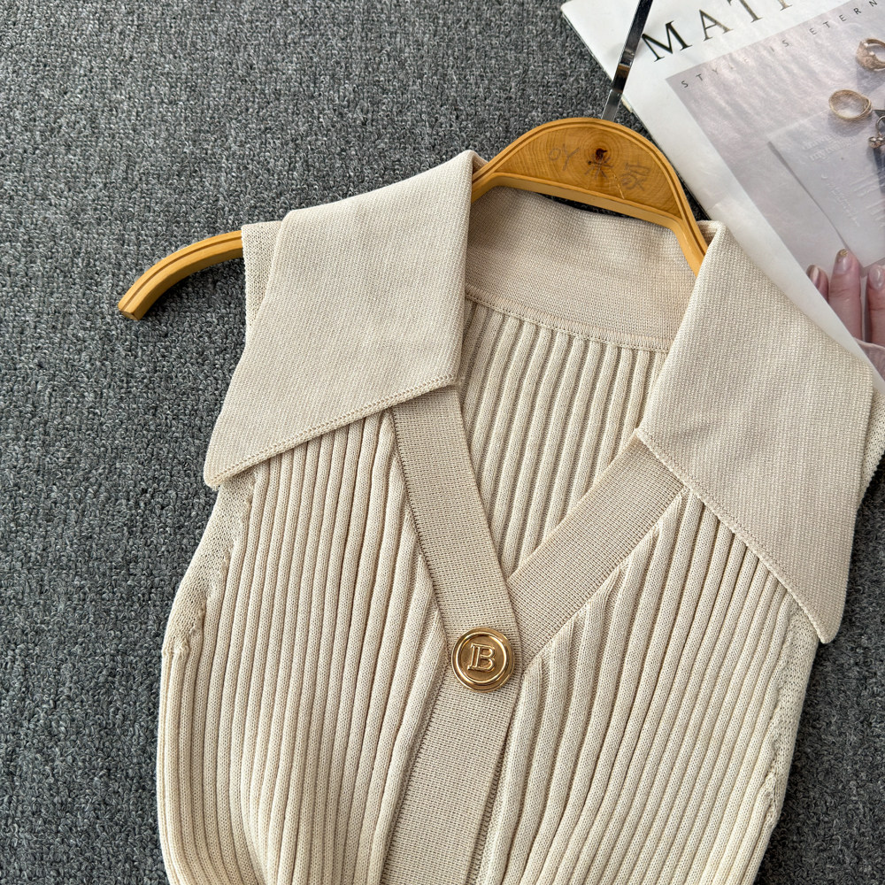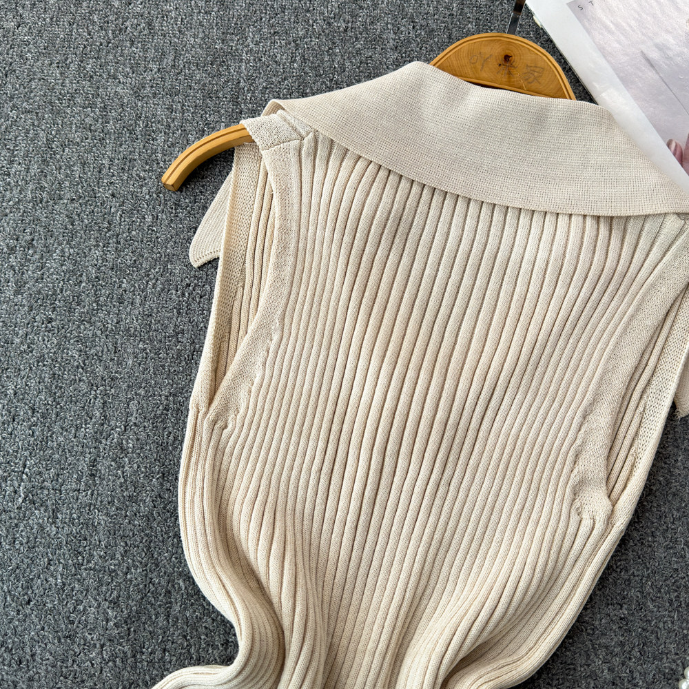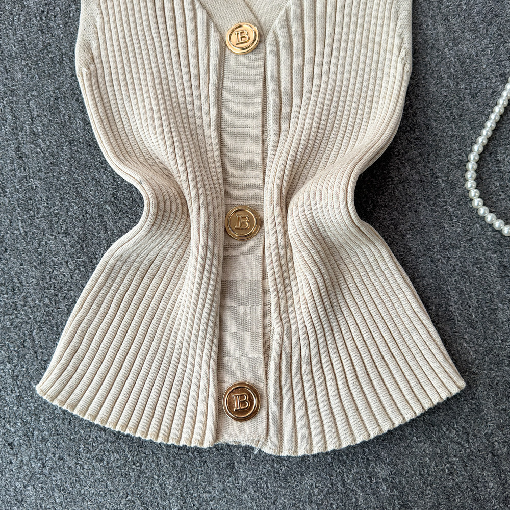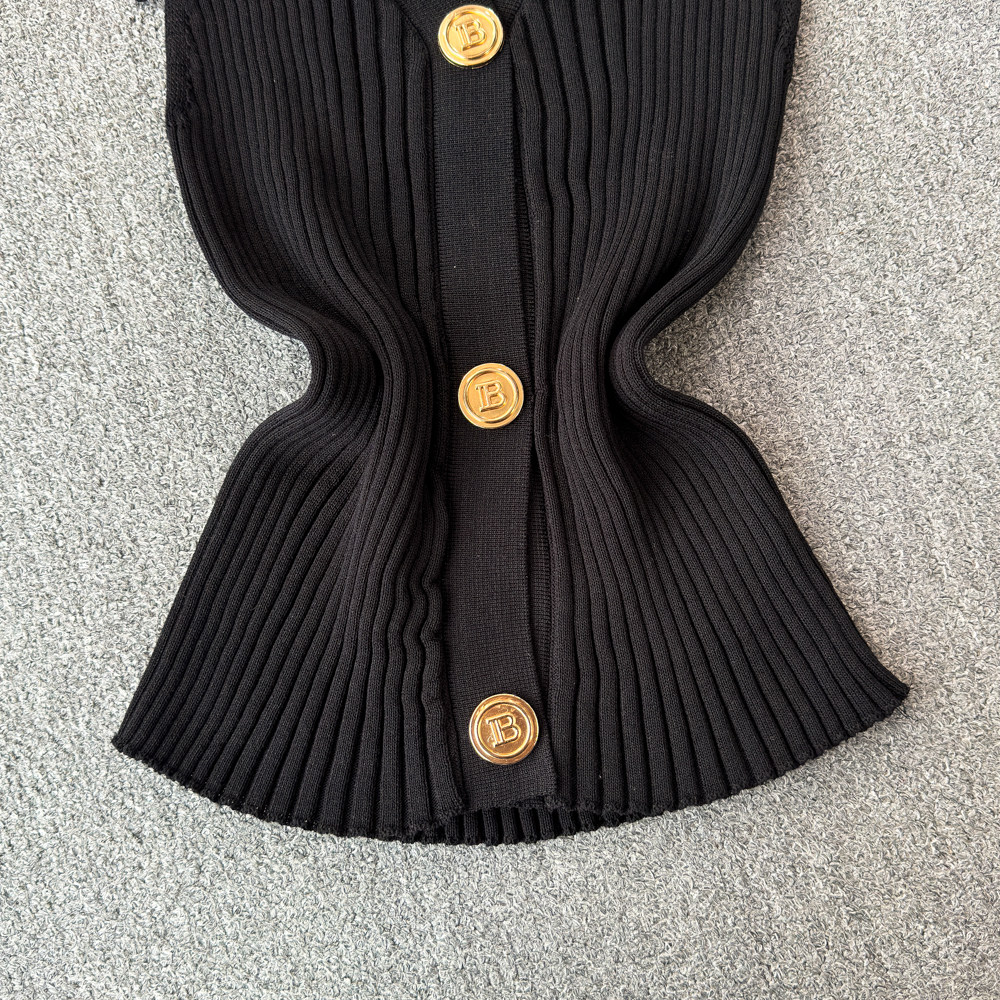 Трикотажный жилет, тонкая дизайнерская короткая майка топ, в стиле Шанель, тренд сезона, воротник поло