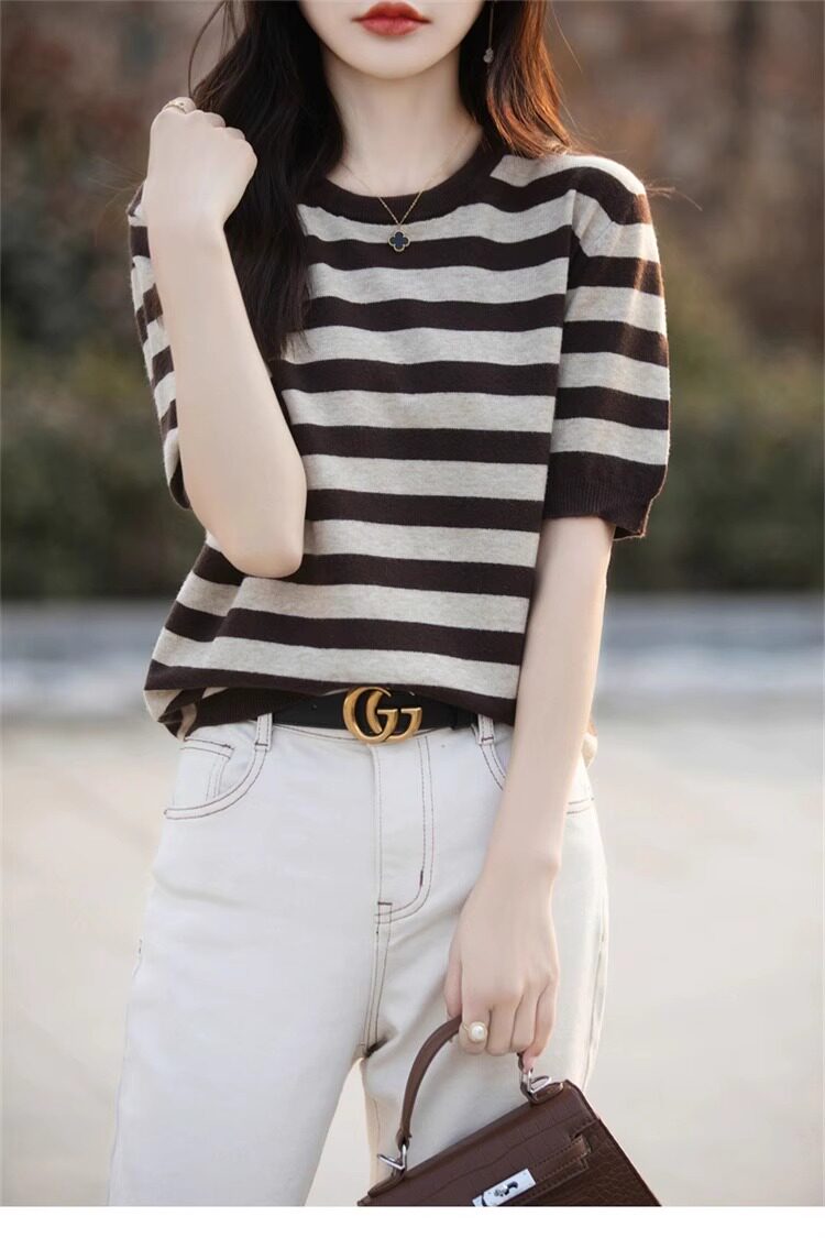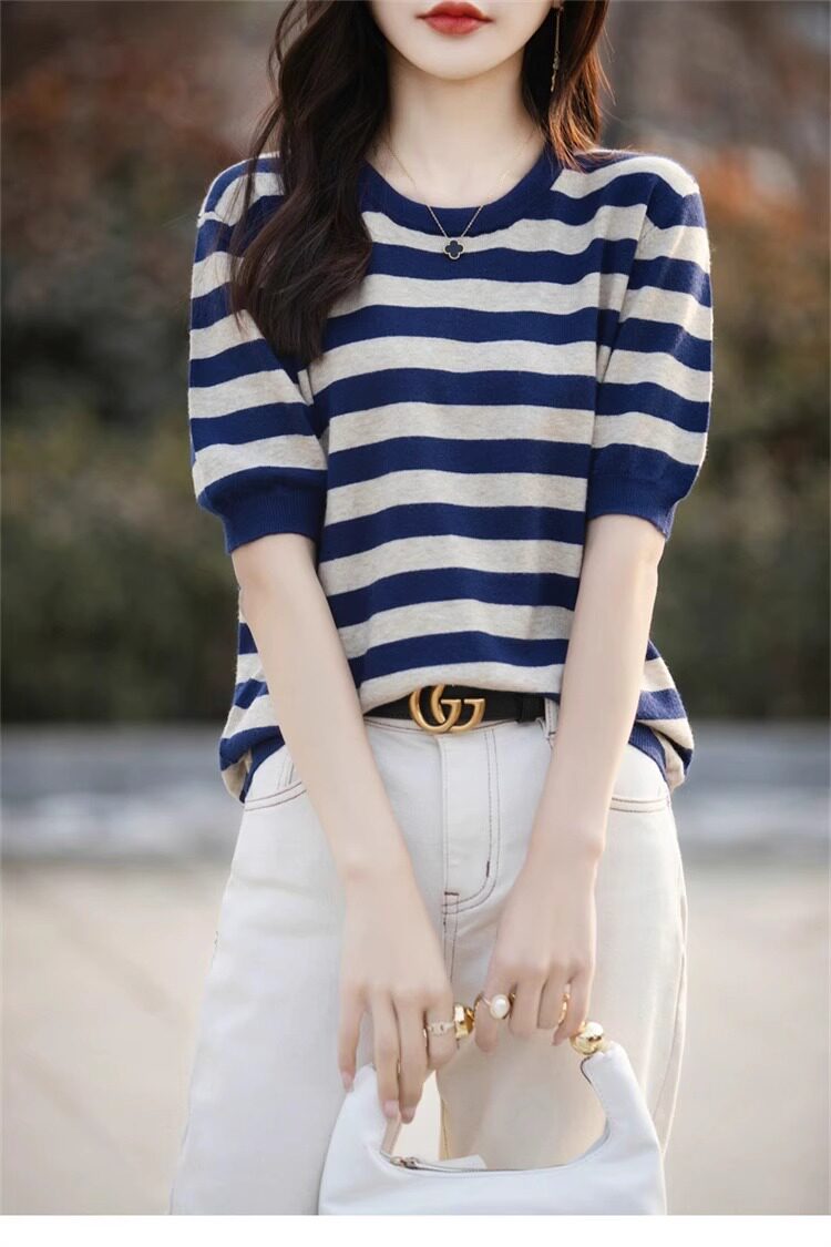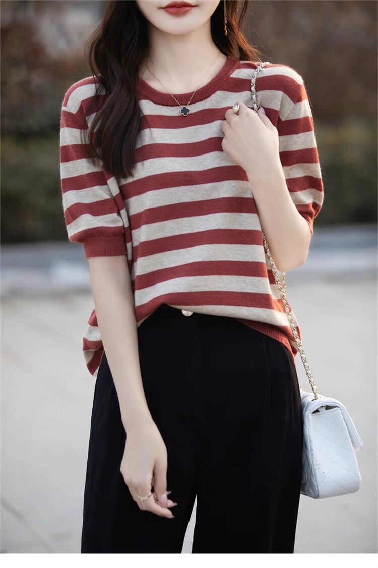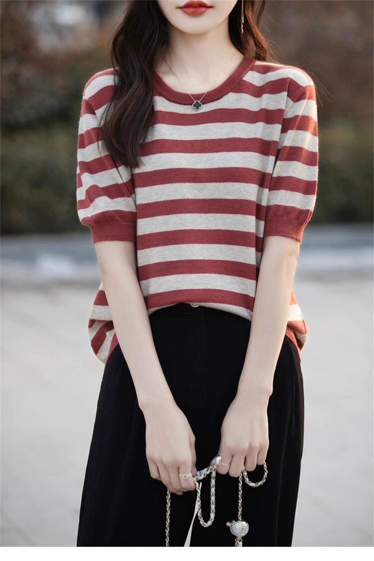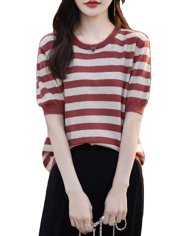 Трикотажный летний модный свитер, футболка, в корейском стиле, яркий броский стиль