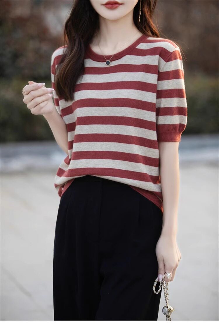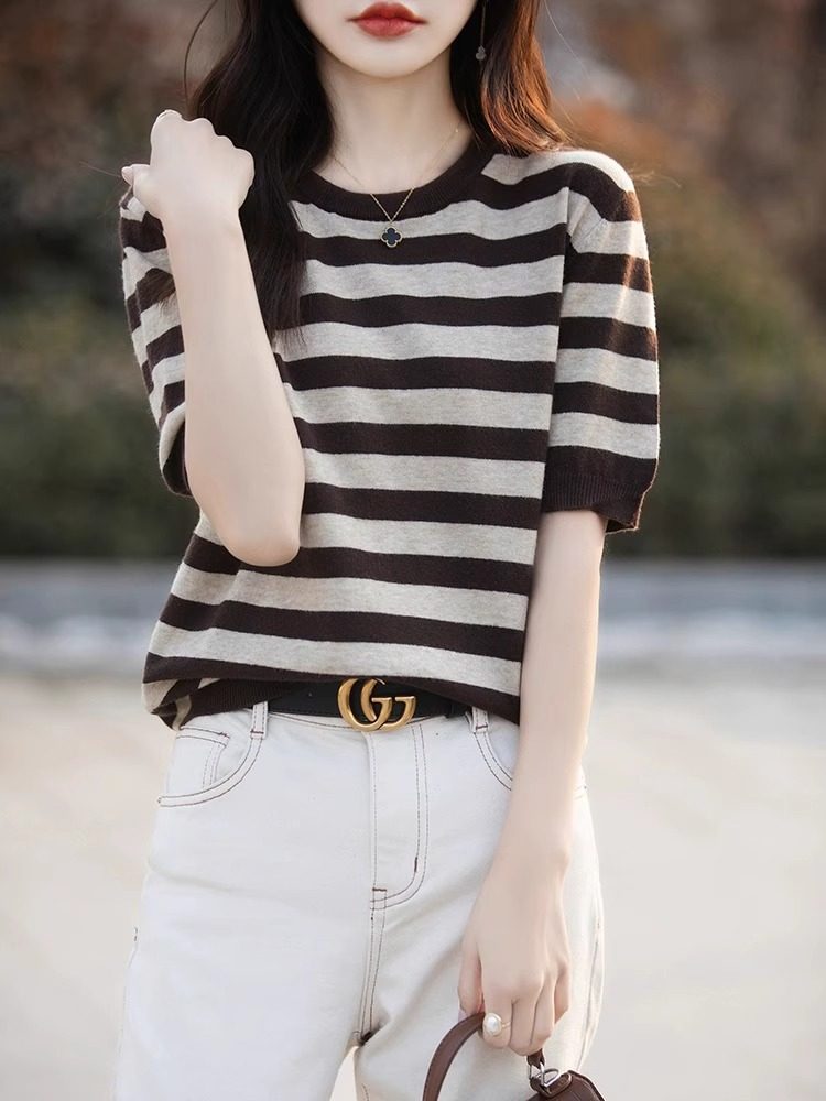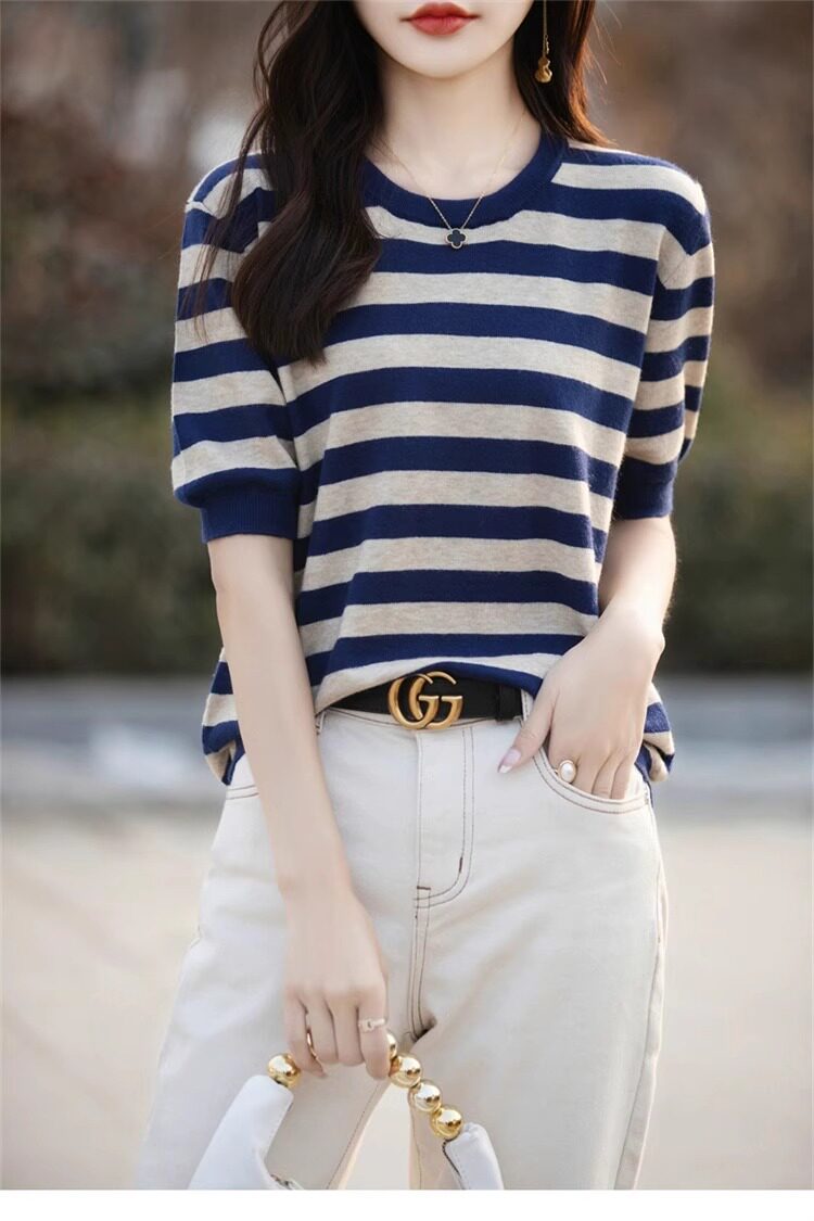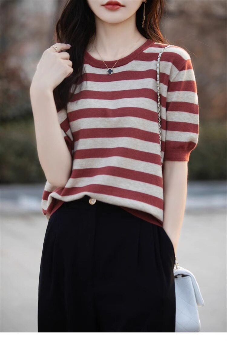 Трикотажный летний модный свитер, футболка, в корейском стиле, яркий броский стиль