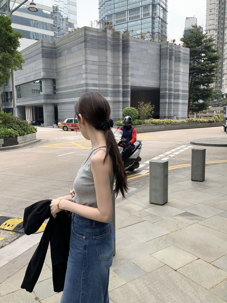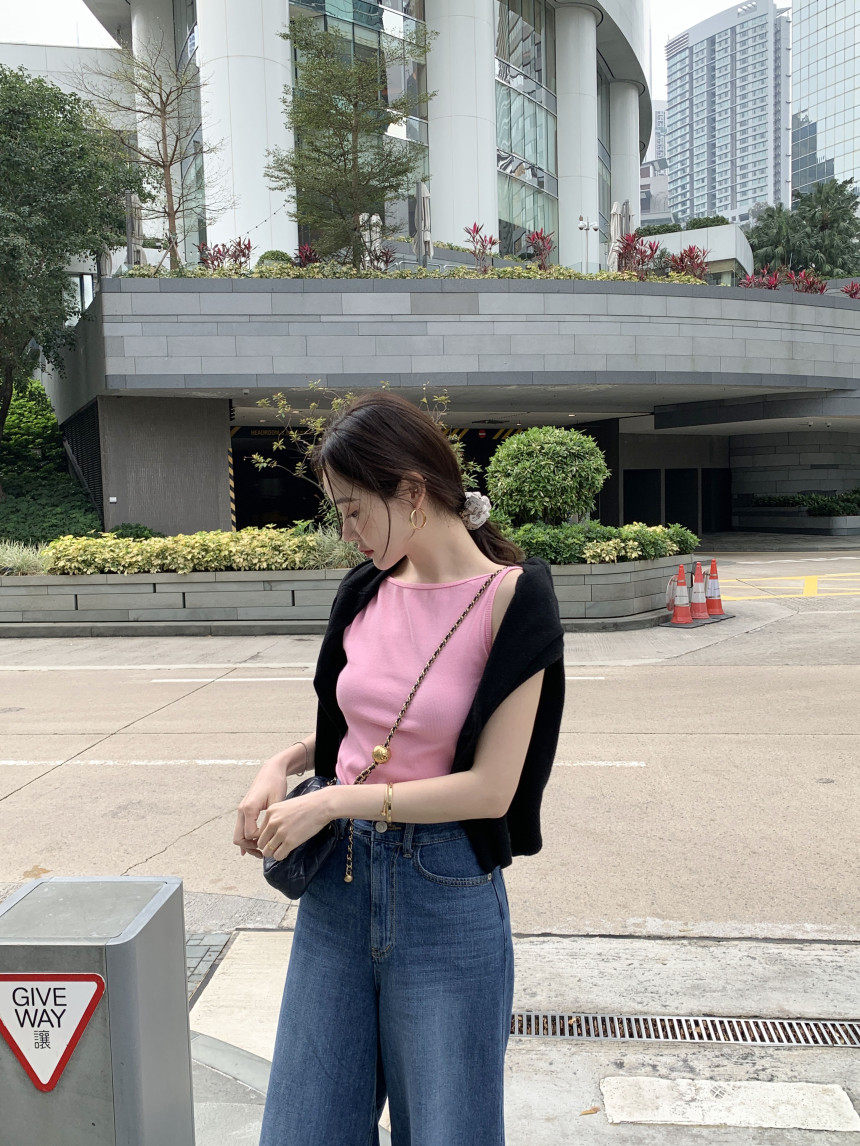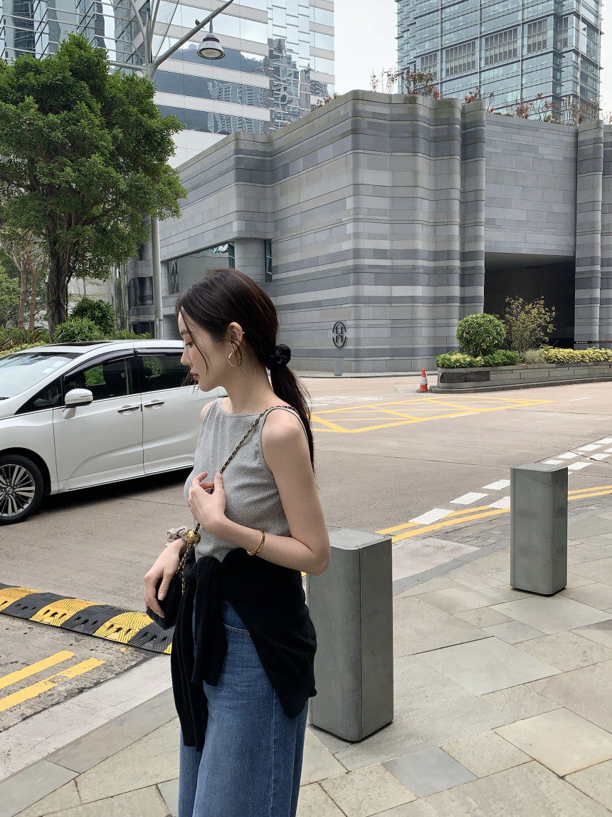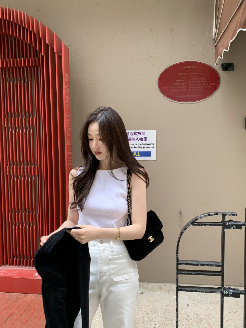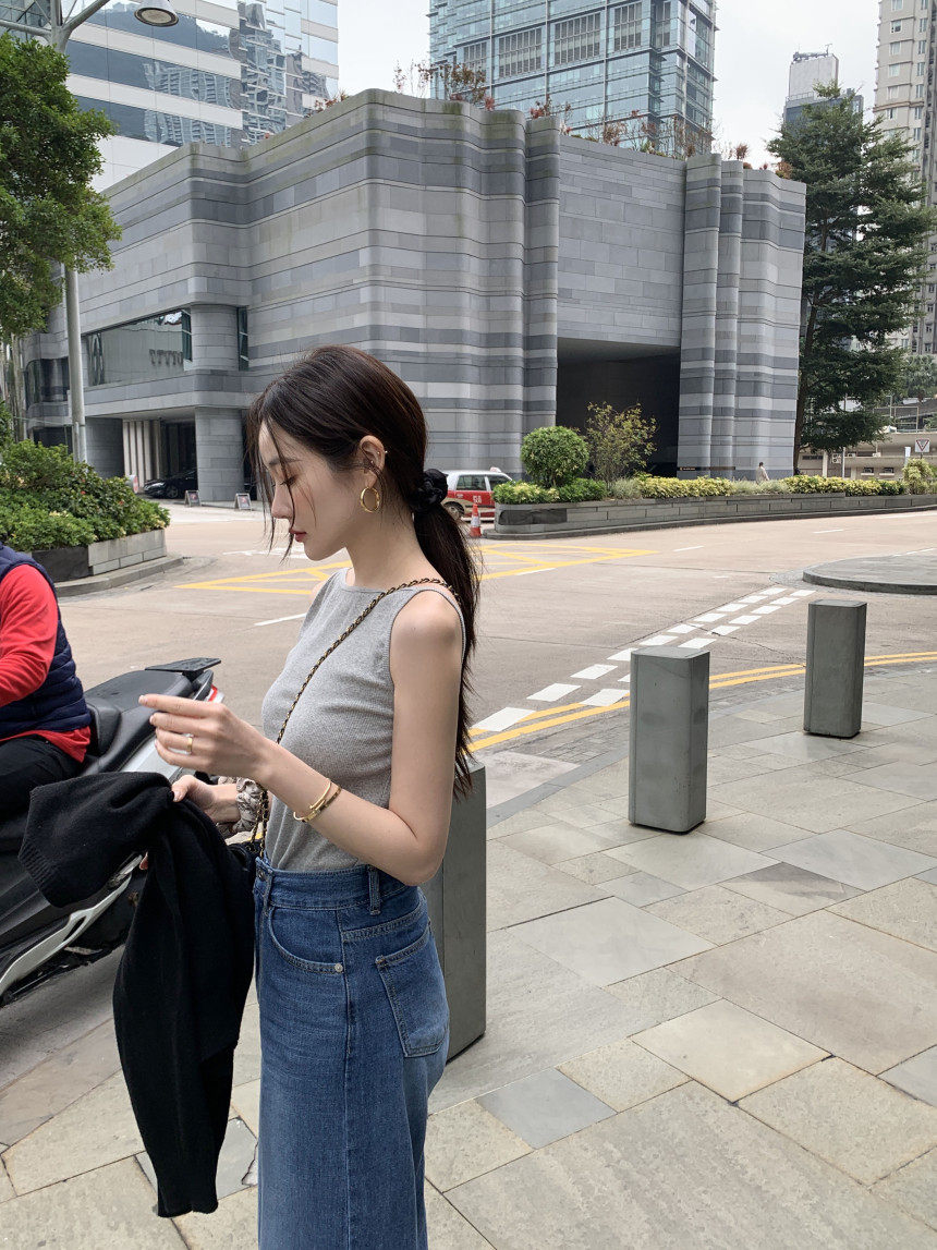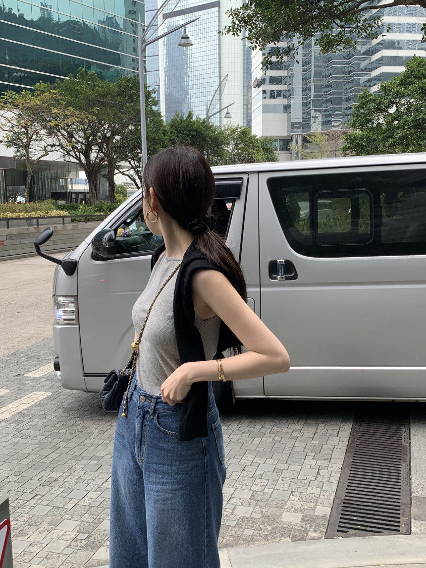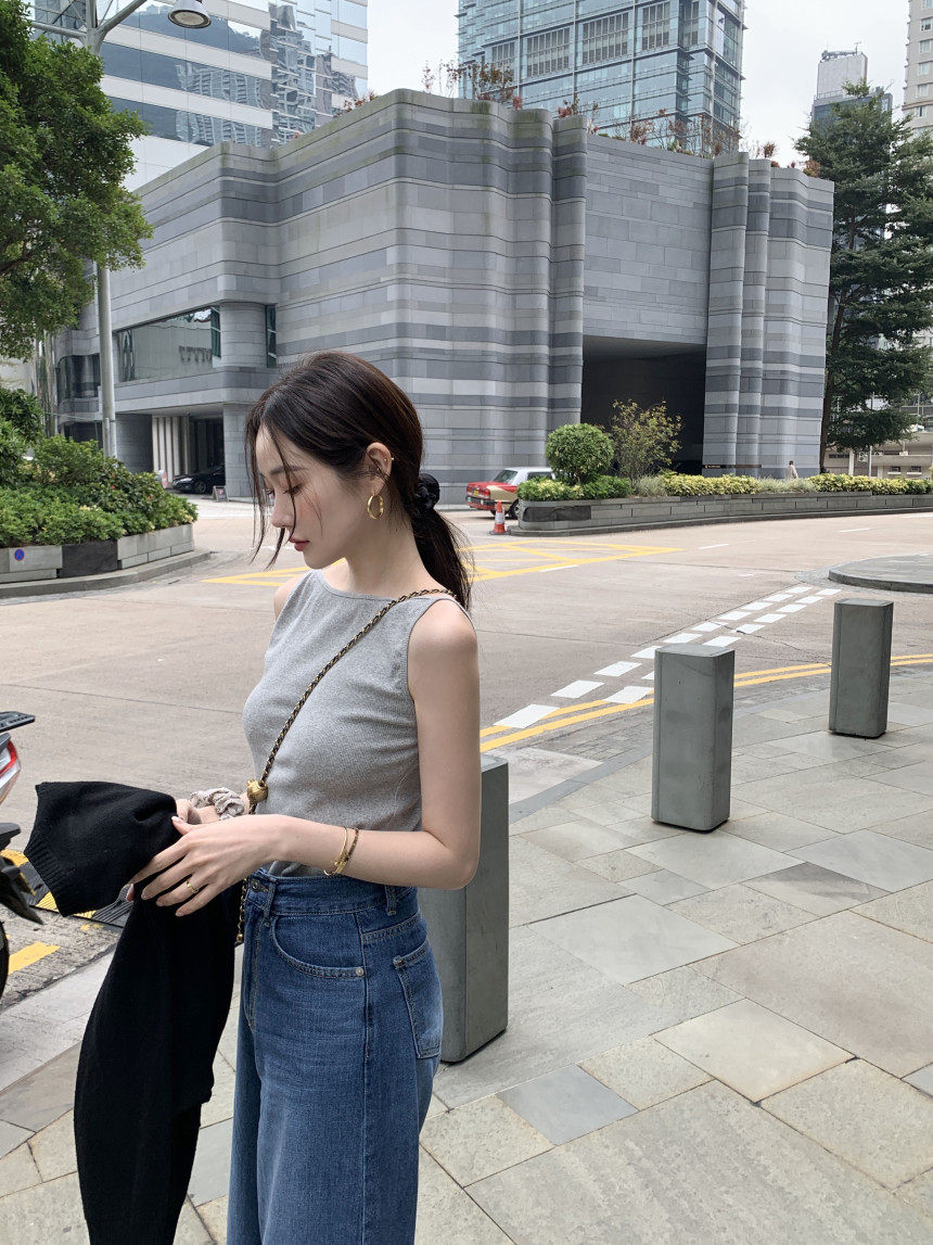 Черный трикотажный летний жилет без рукавов, приталенная майка топ, в корейском стиле, с открытой спиной