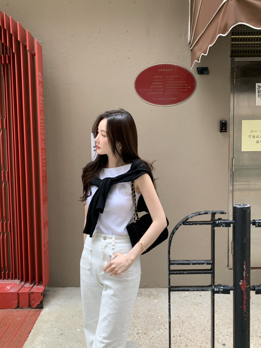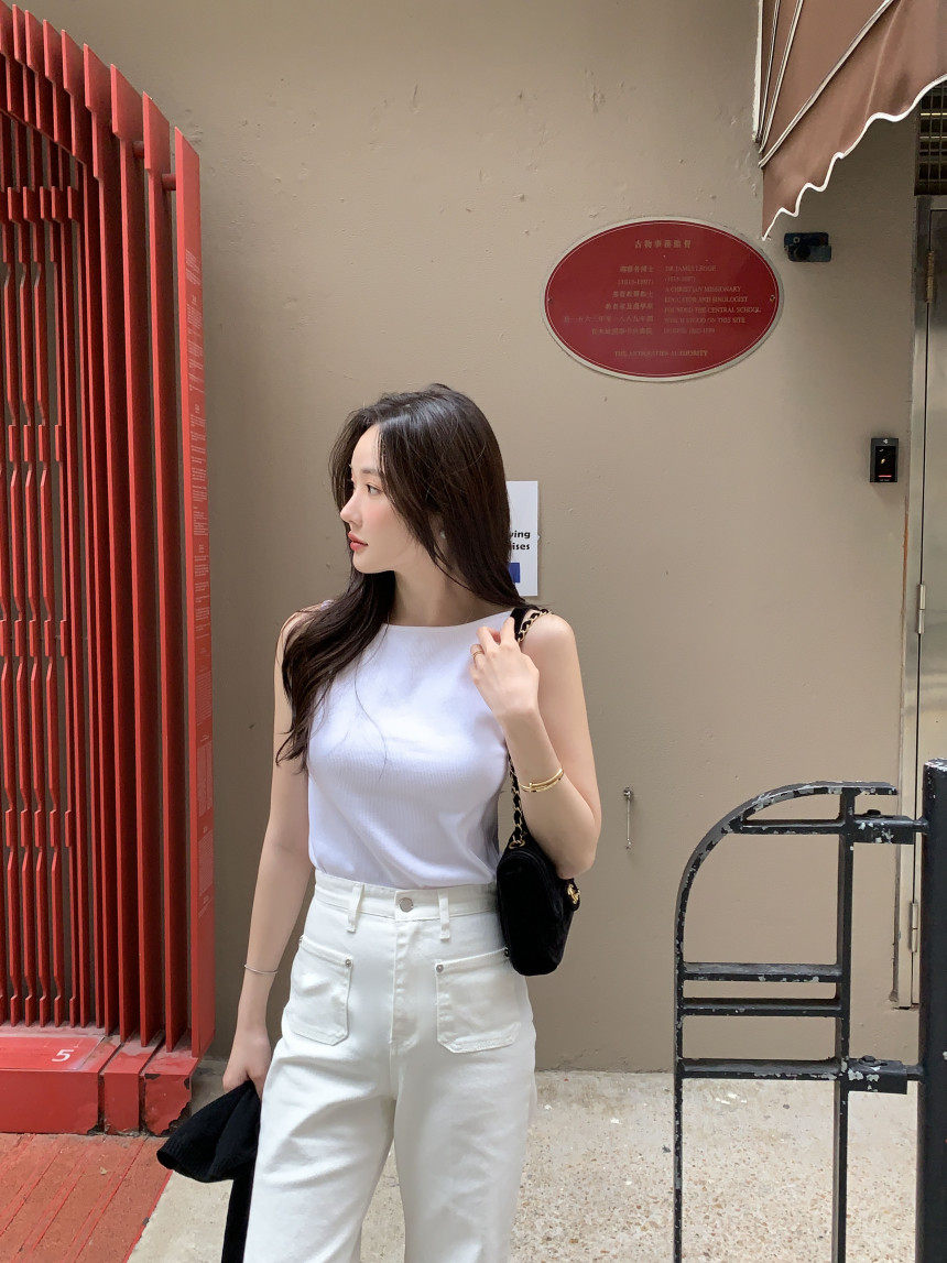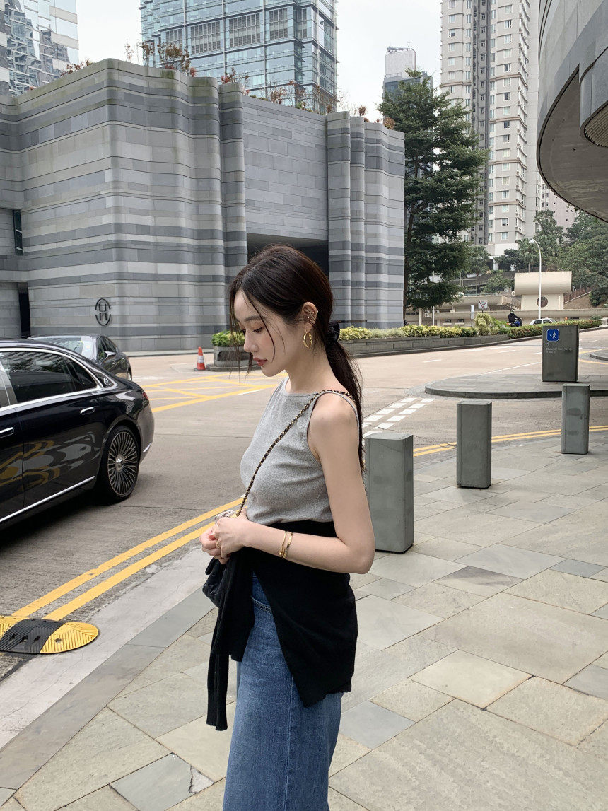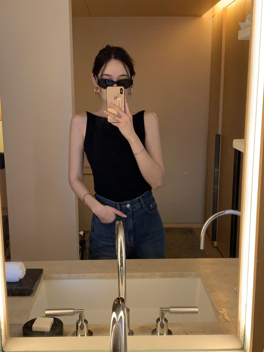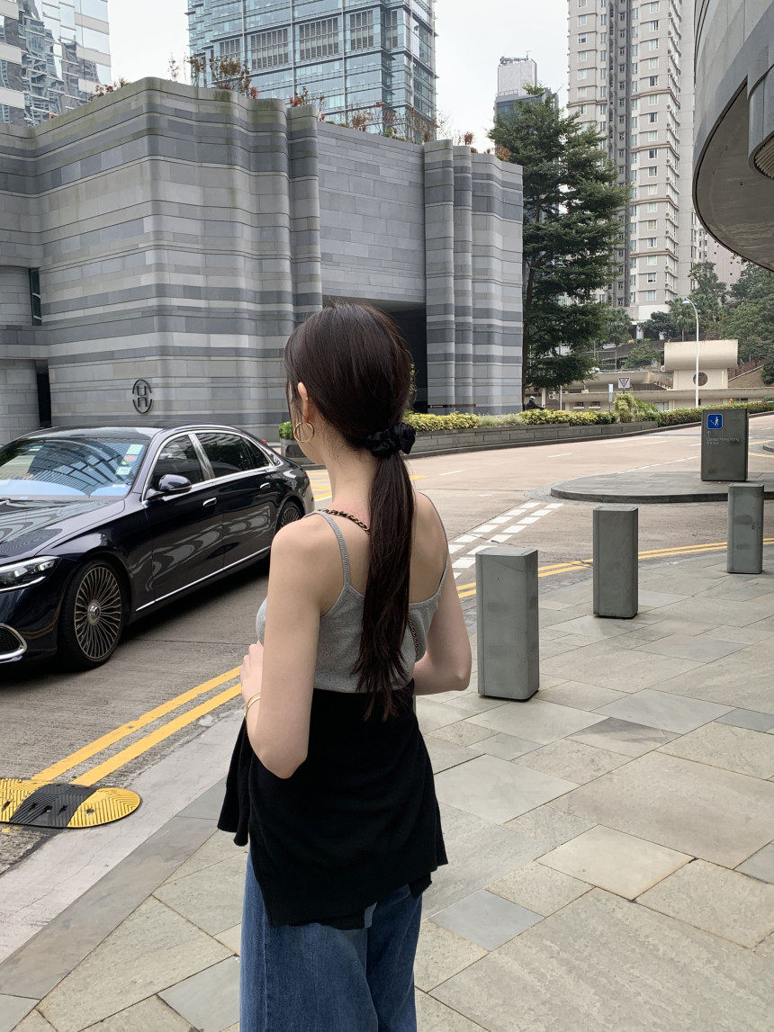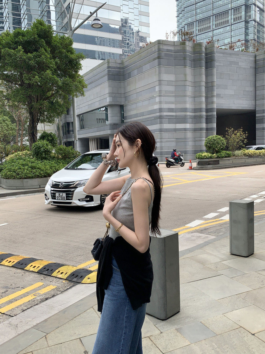 Черный трикотажный летний жилет без рукавов, приталенная майка топ, в корейском стиле, с открытой спиной