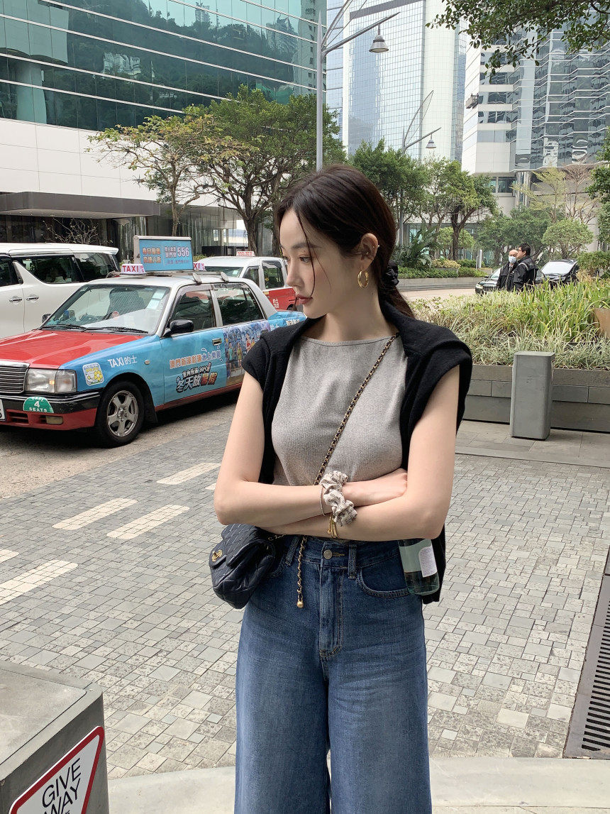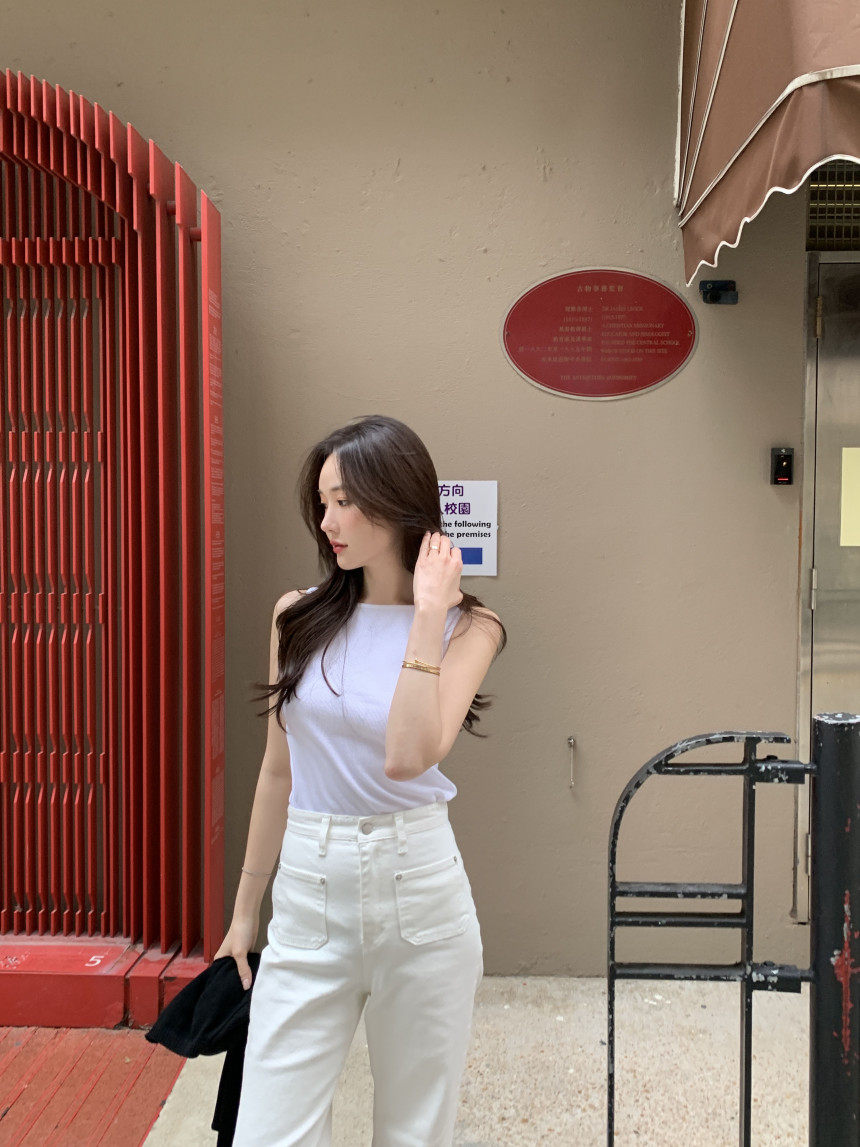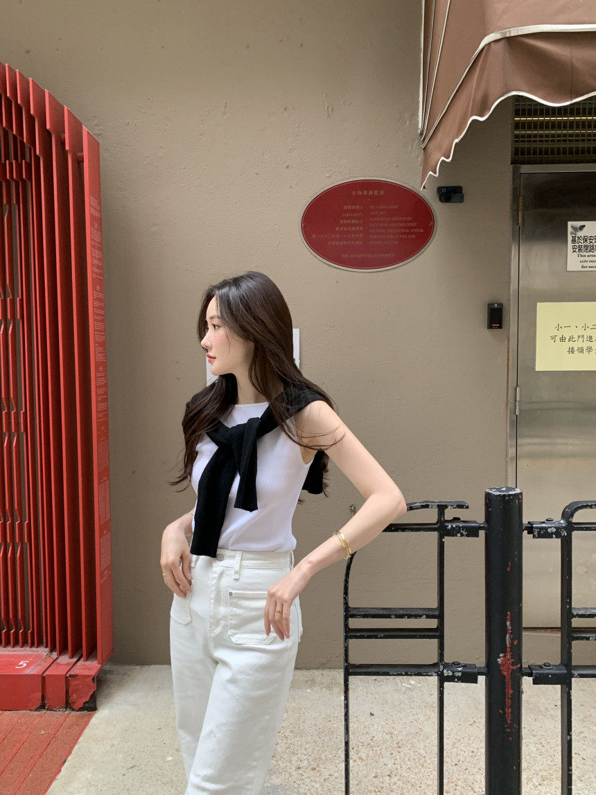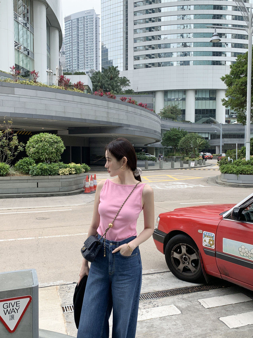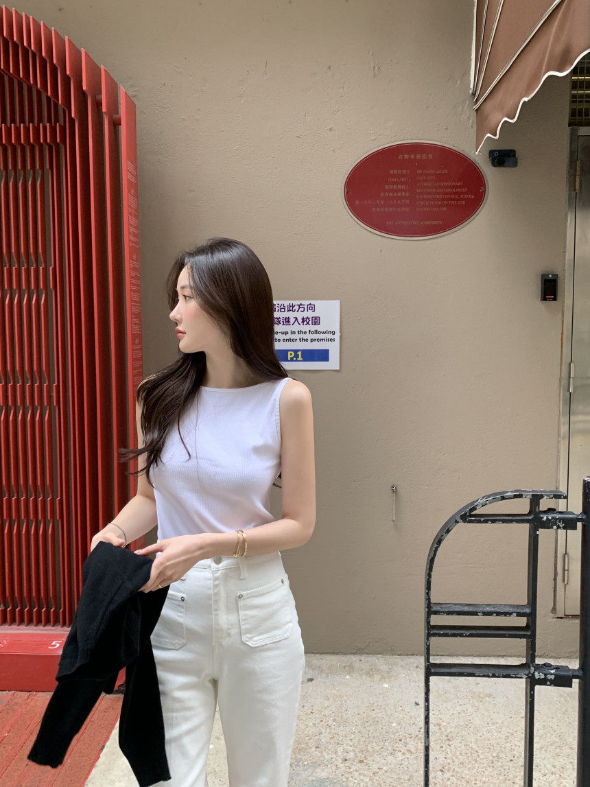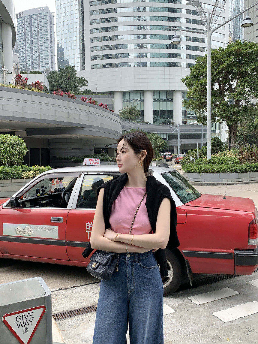 Черный трикотажный летний жилет без рукавов, приталенная майка топ, в корейском стиле, с открытой спиной