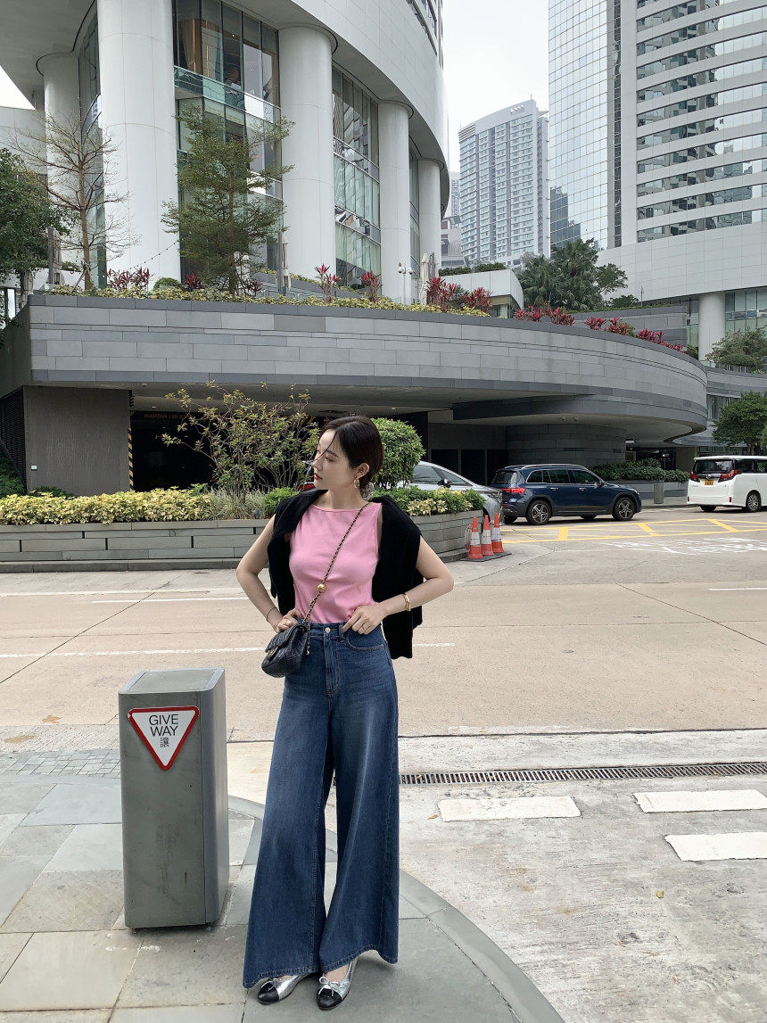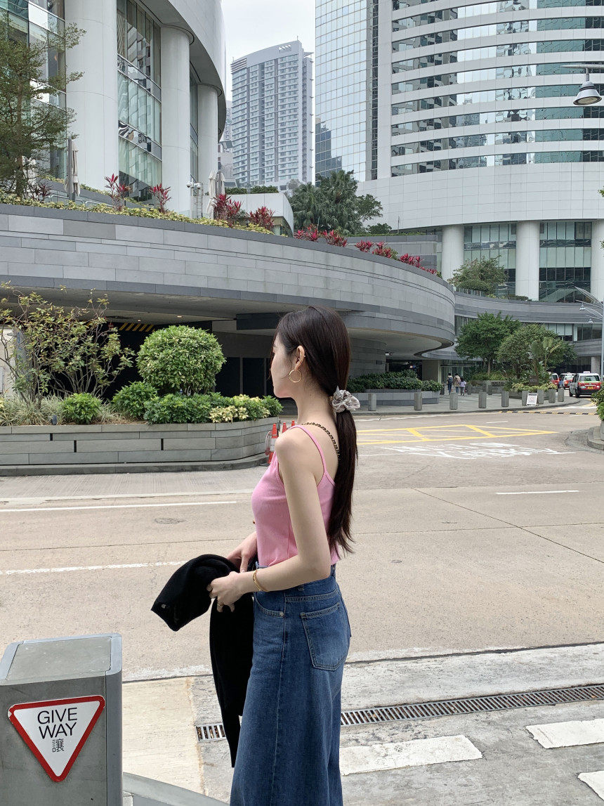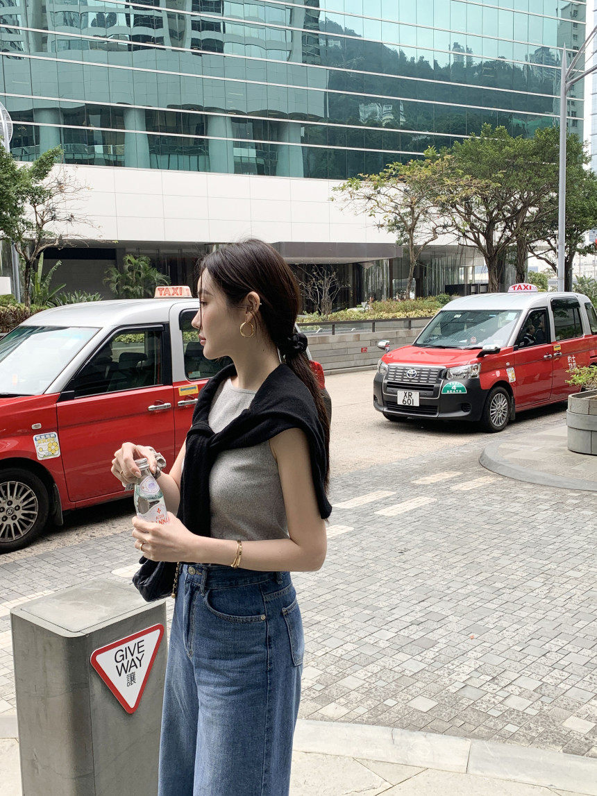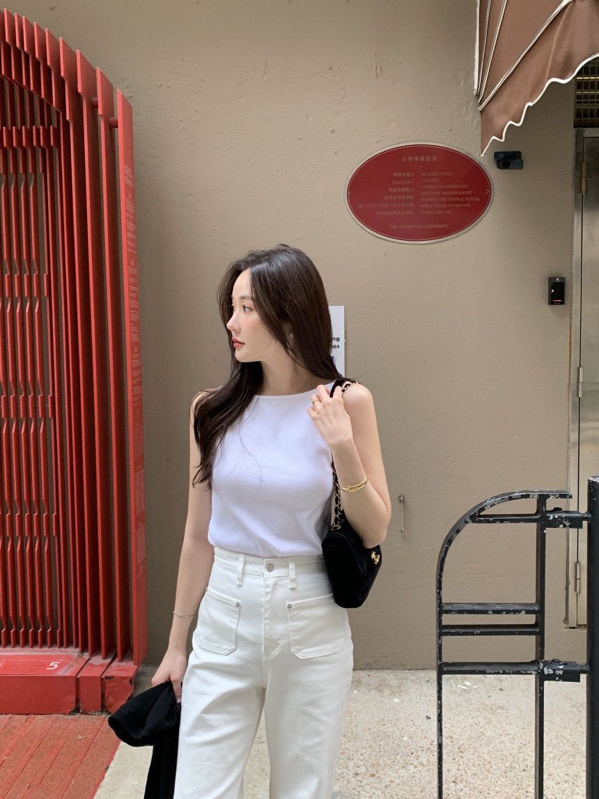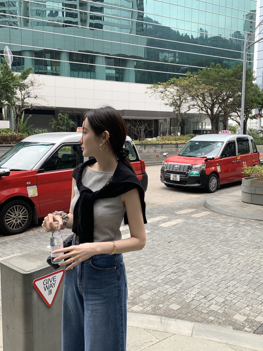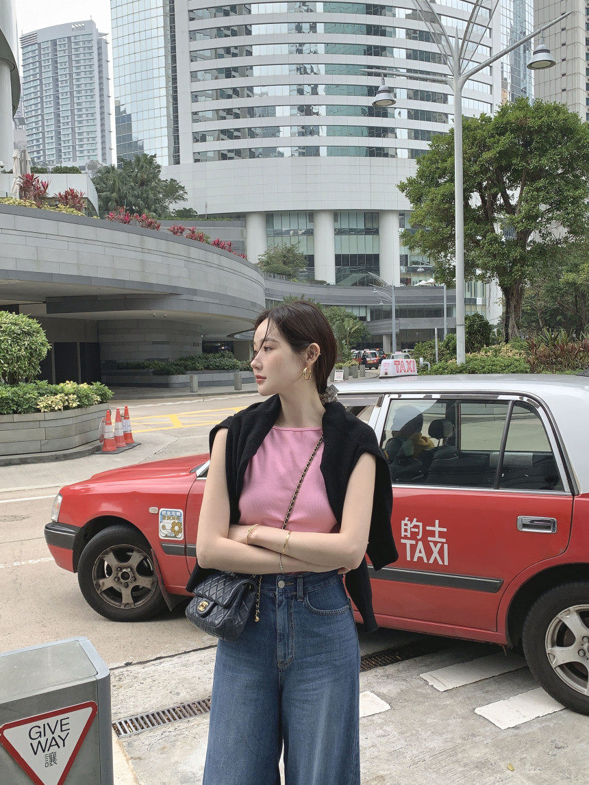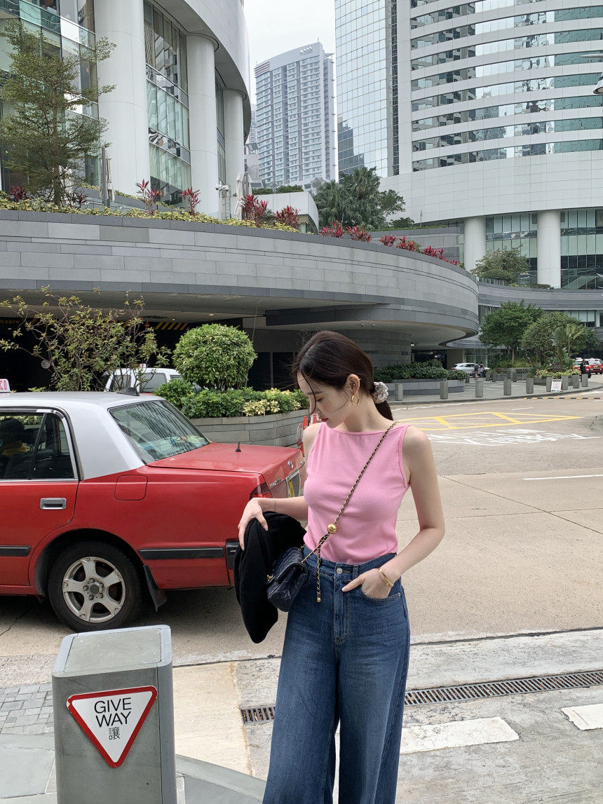 Черный трикотажный летний жилет без рукавов, приталенная майка топ, в корейском стиле, с открытой спиной