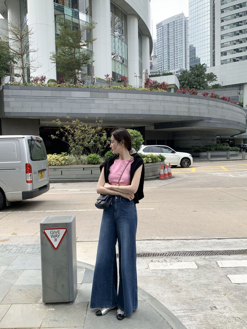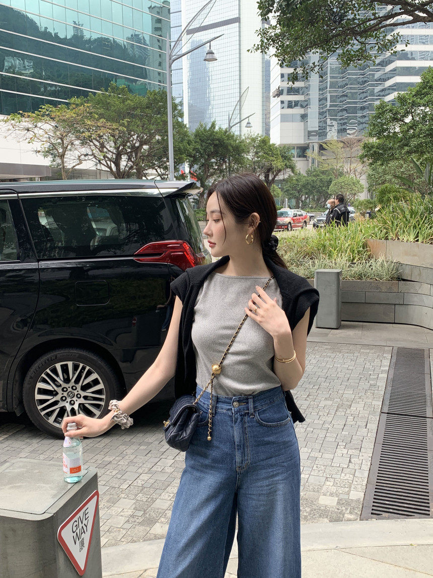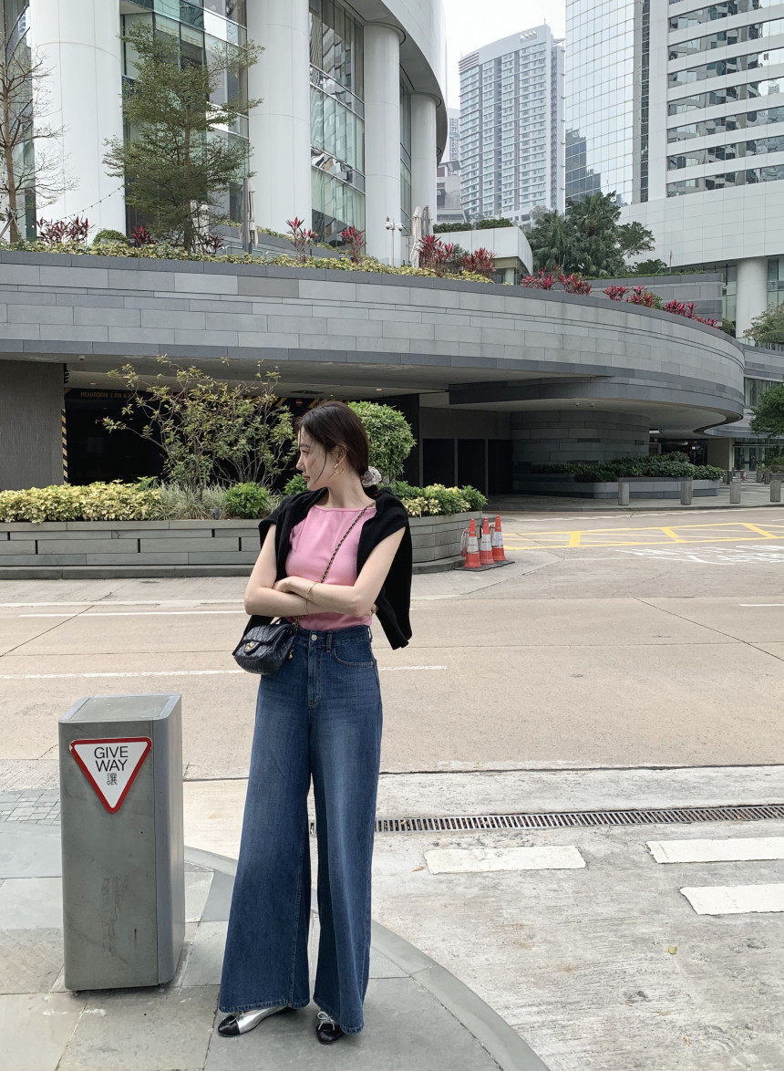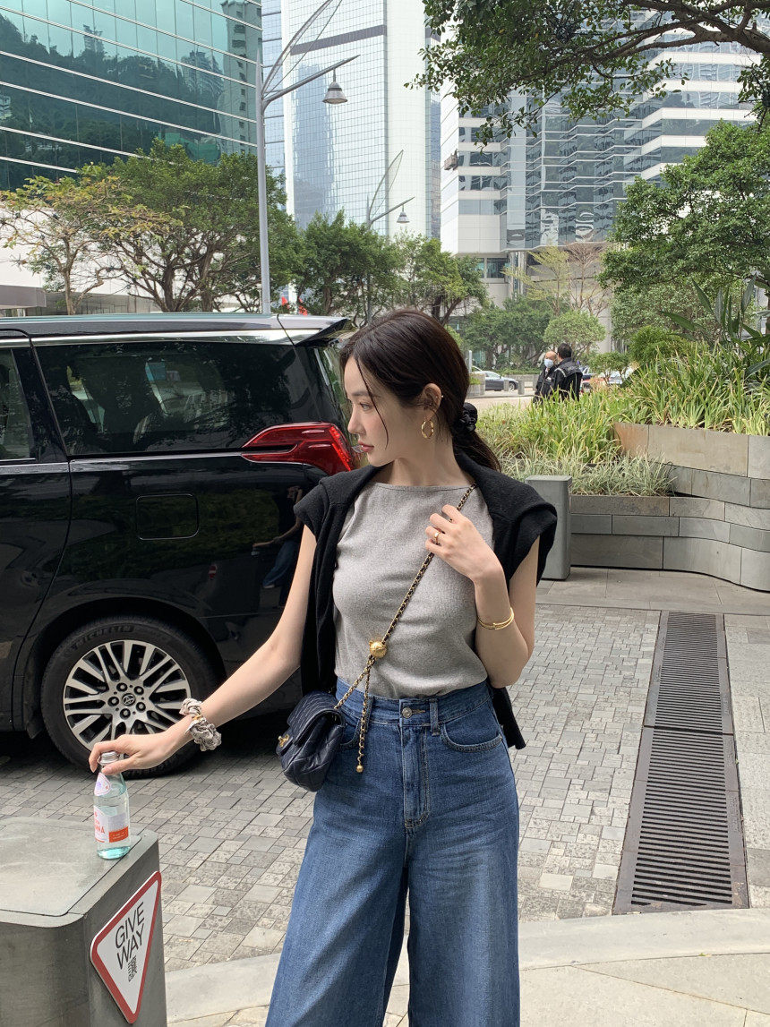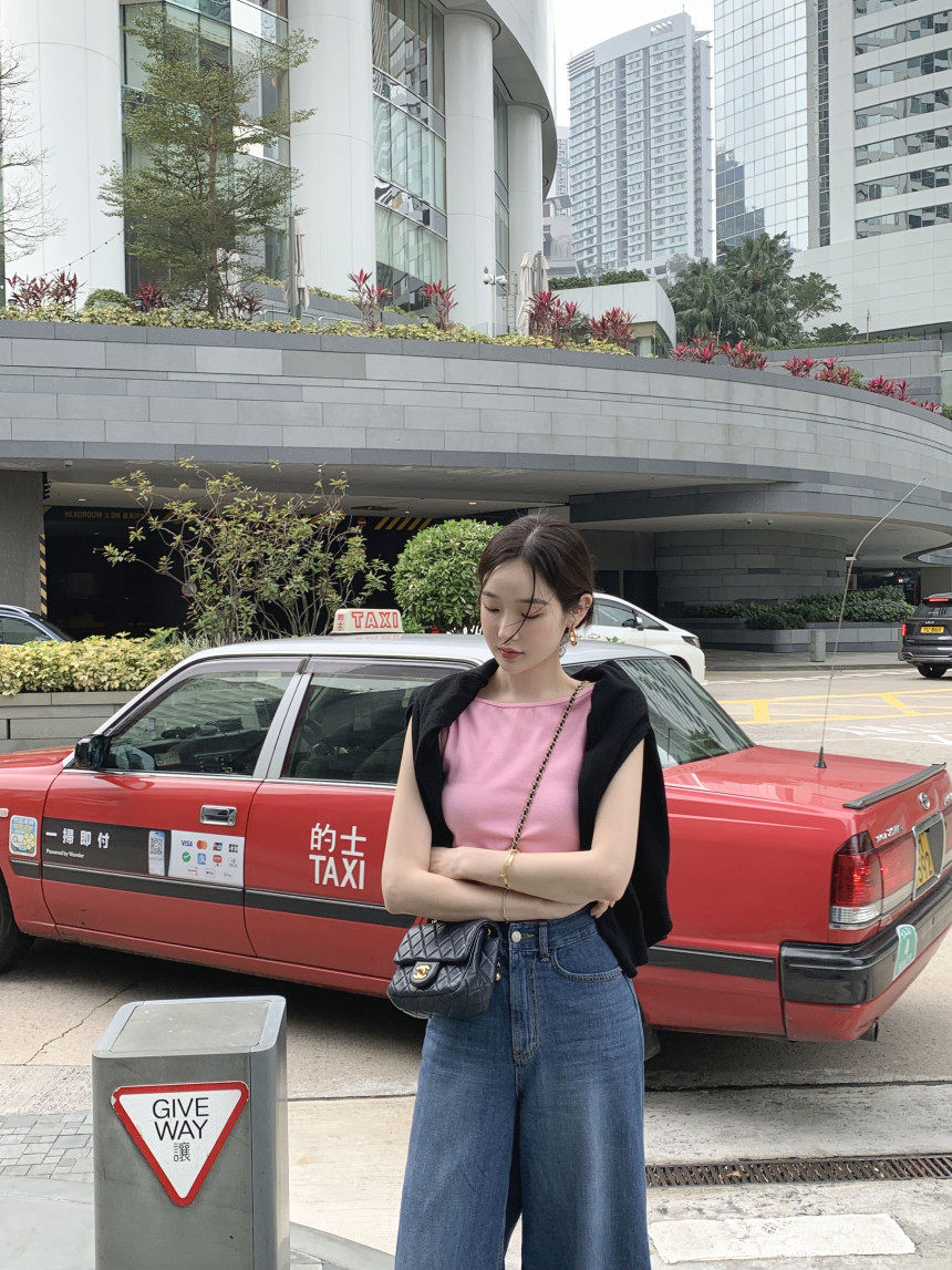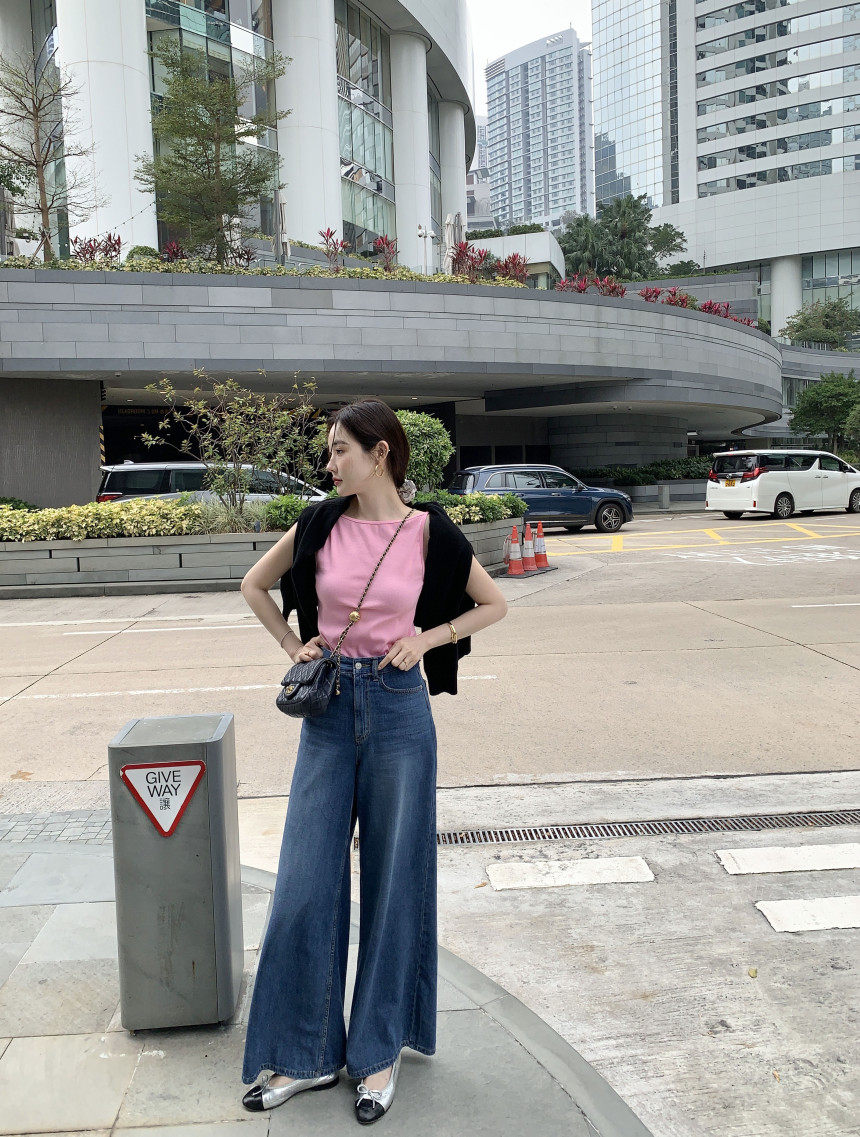 Черный трикотажный летний жилет без рукавов, приталенная майка топ, в корейском стиле, с открытой спиной