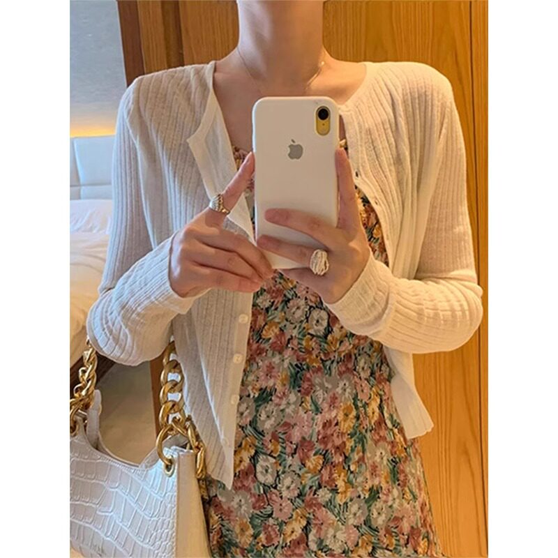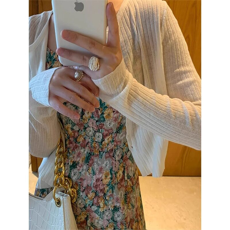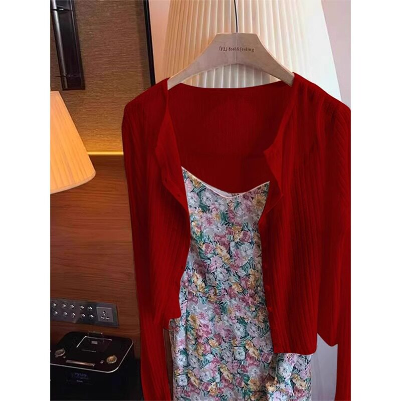 Летний шелковый тонкий трикотажный красный кардиган, накидка, куртка, изысканный стиль
