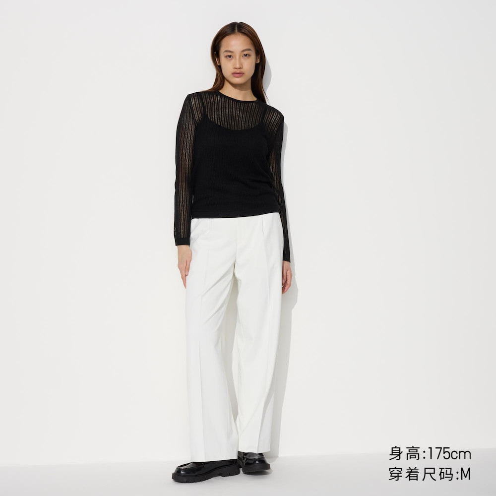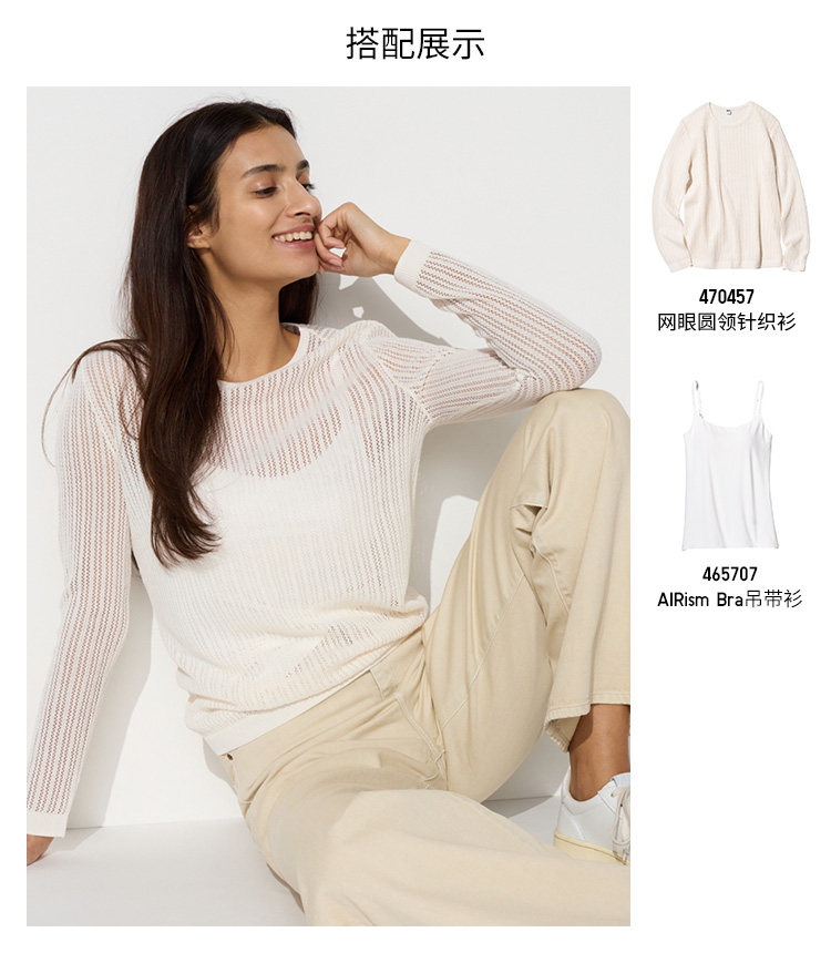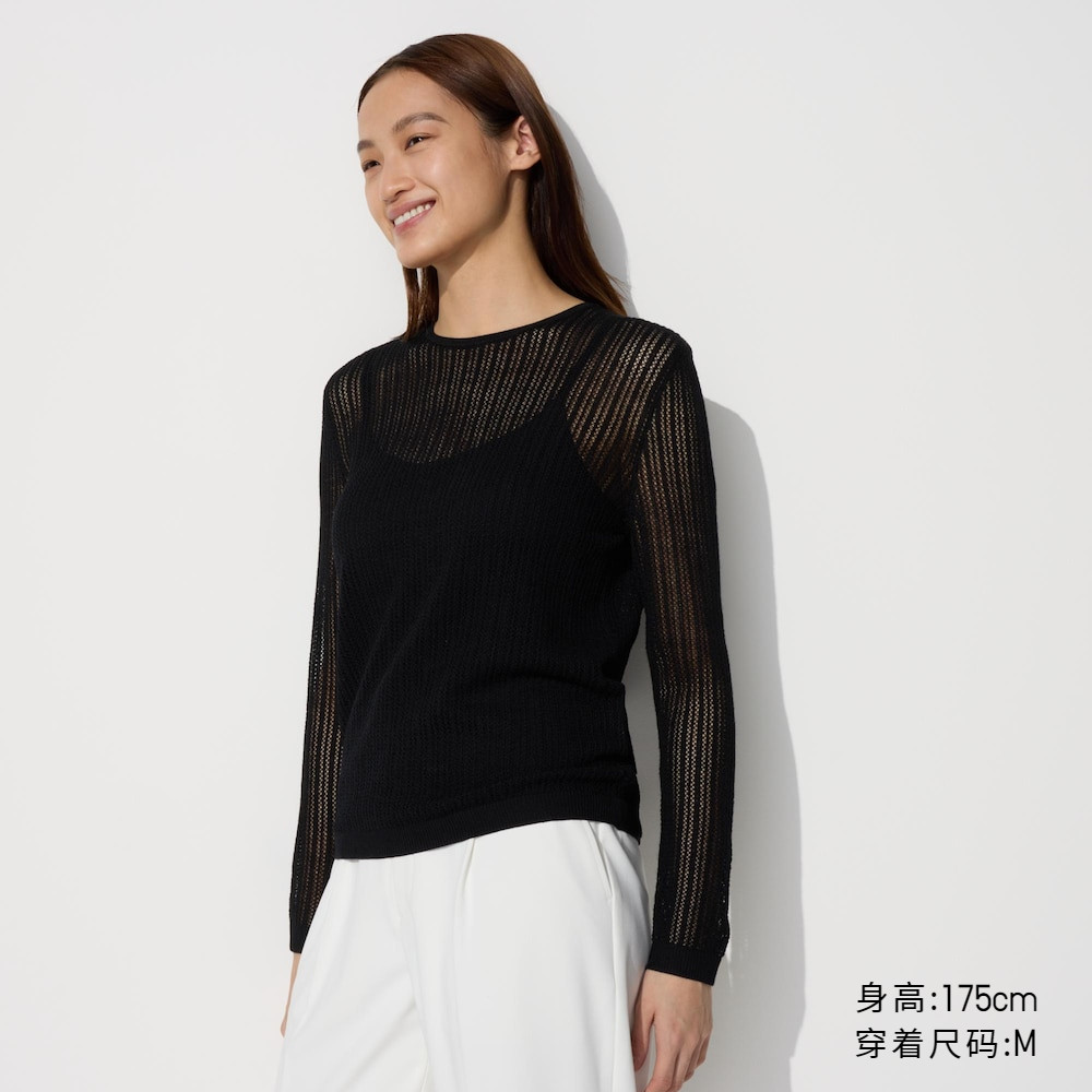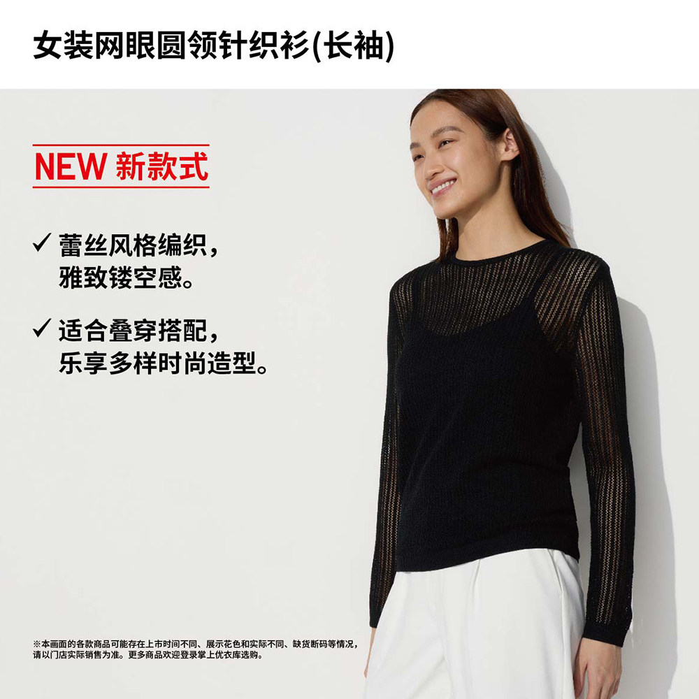 Uniqlo, трикотажный свитер с круглым воротником, кружевной лонгслив, стиль