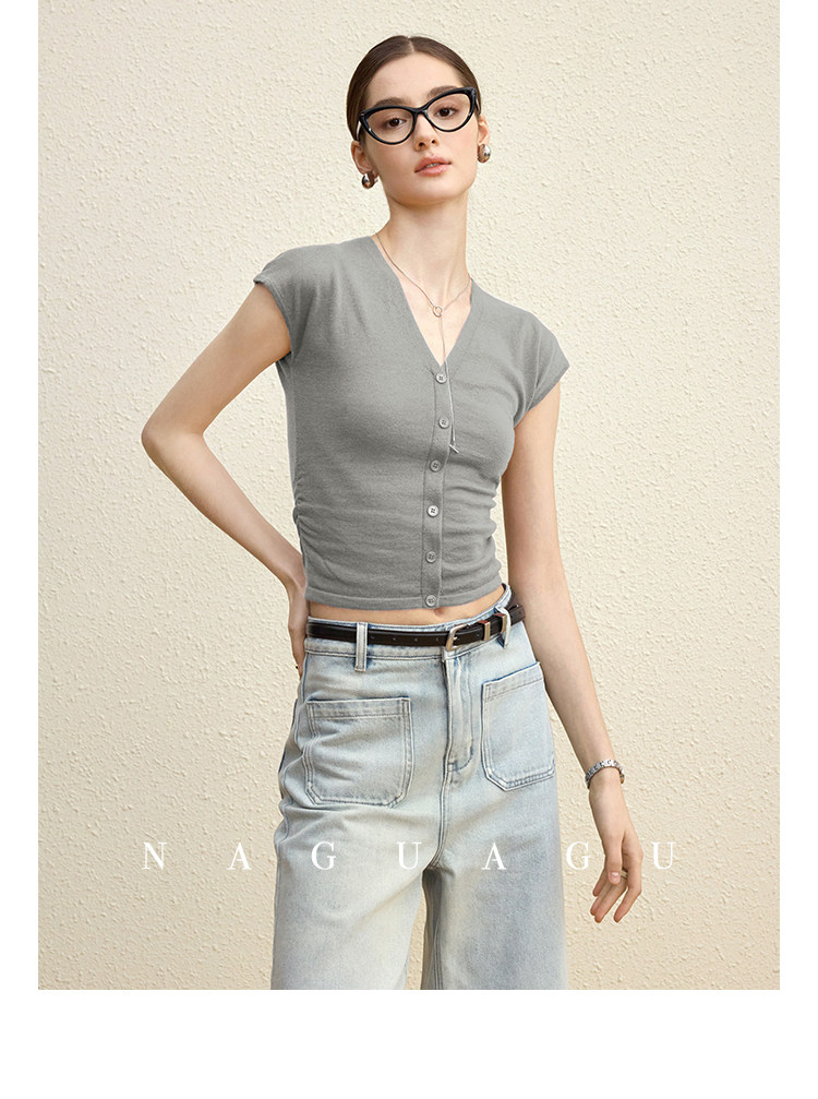 Трикотажный шерстяной корсет, весенний лонгслив, свитер, V-образный вырез