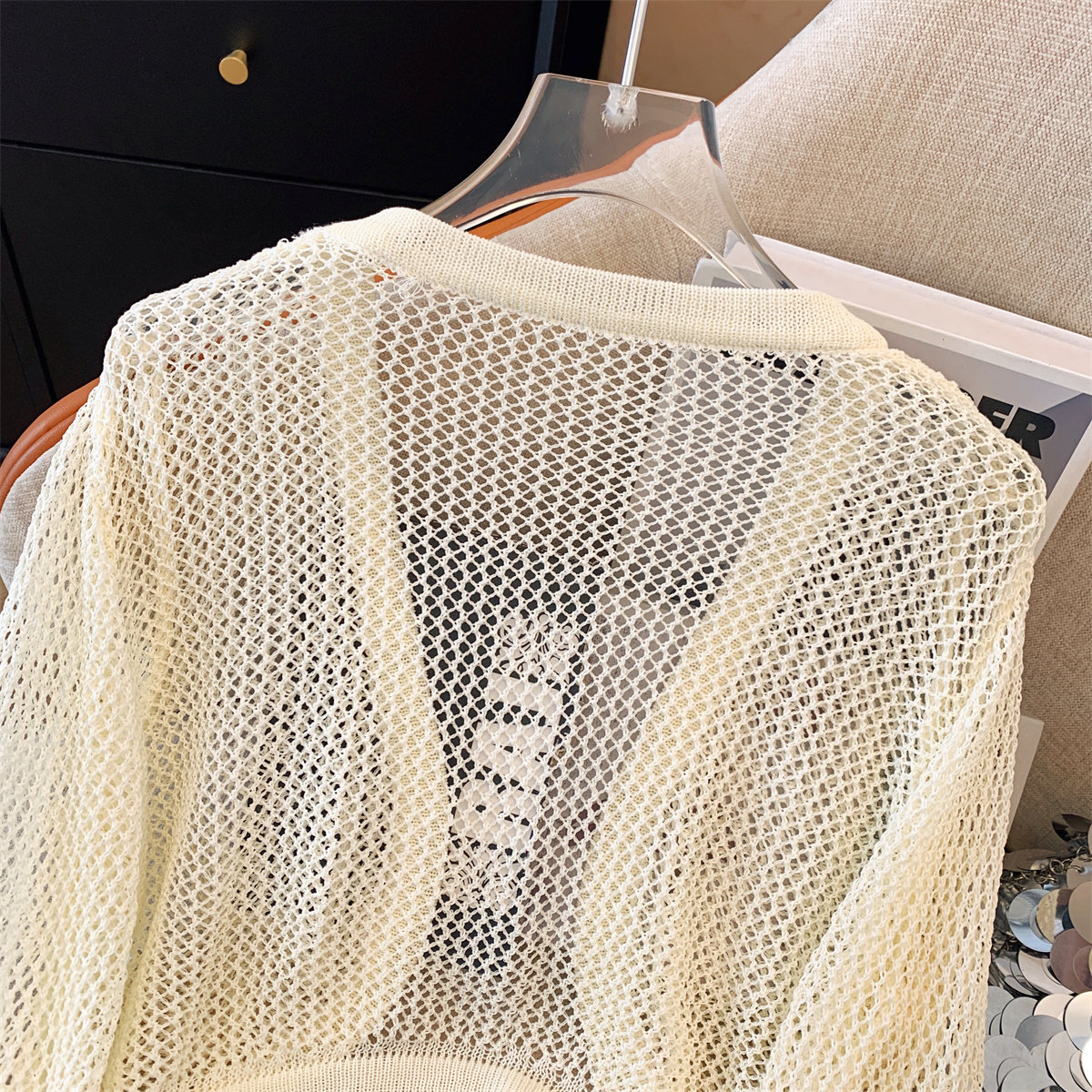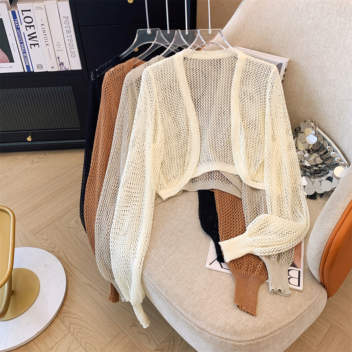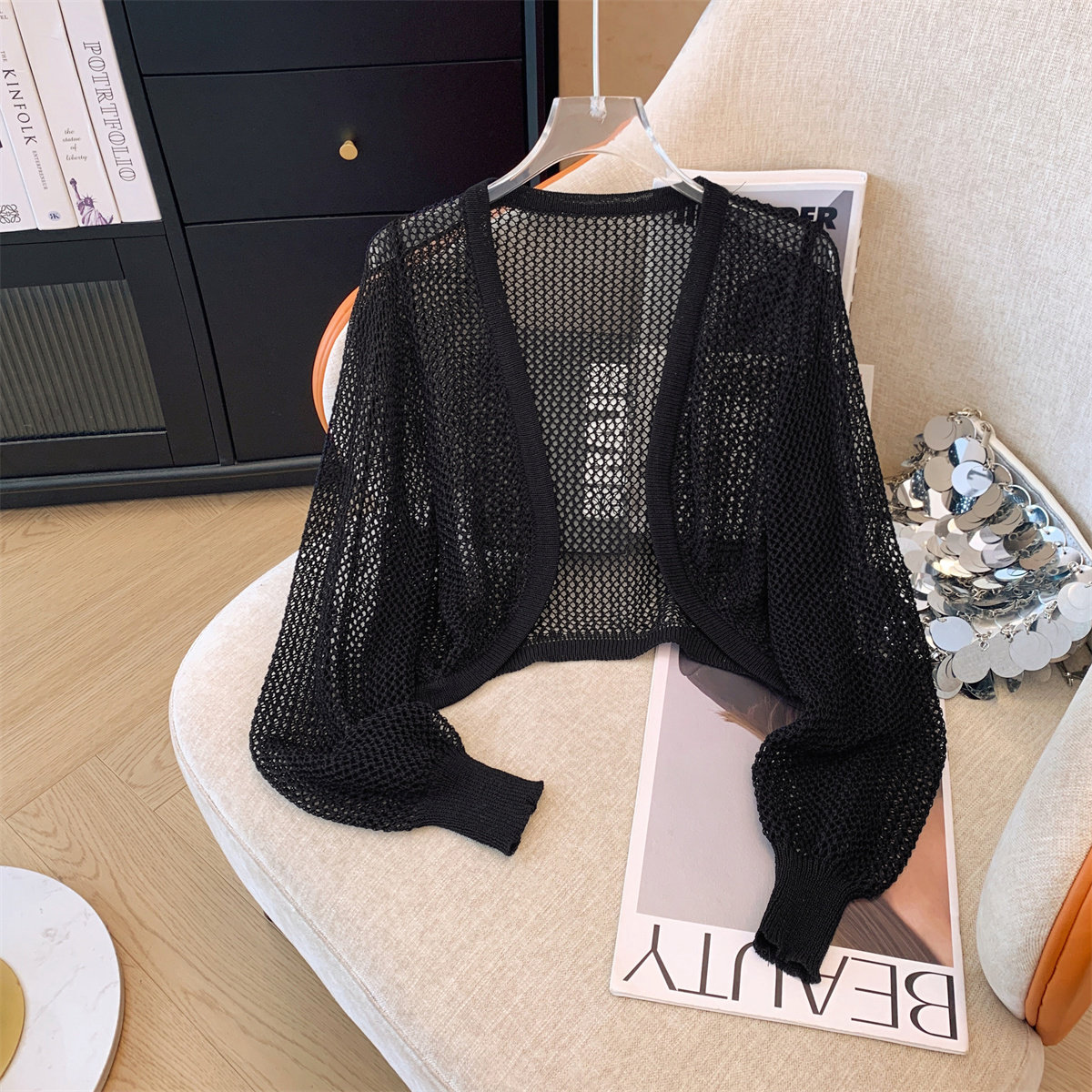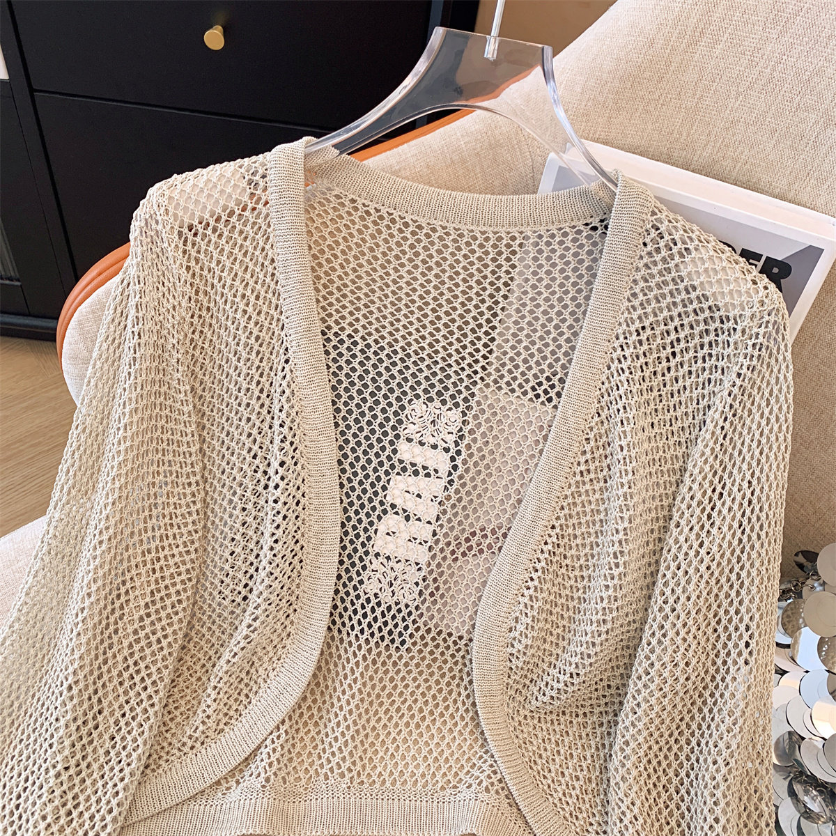 Трикотажный летний кардиган, короткая накидка, дизайнерский жилет, тренд сезона, защита от солнца