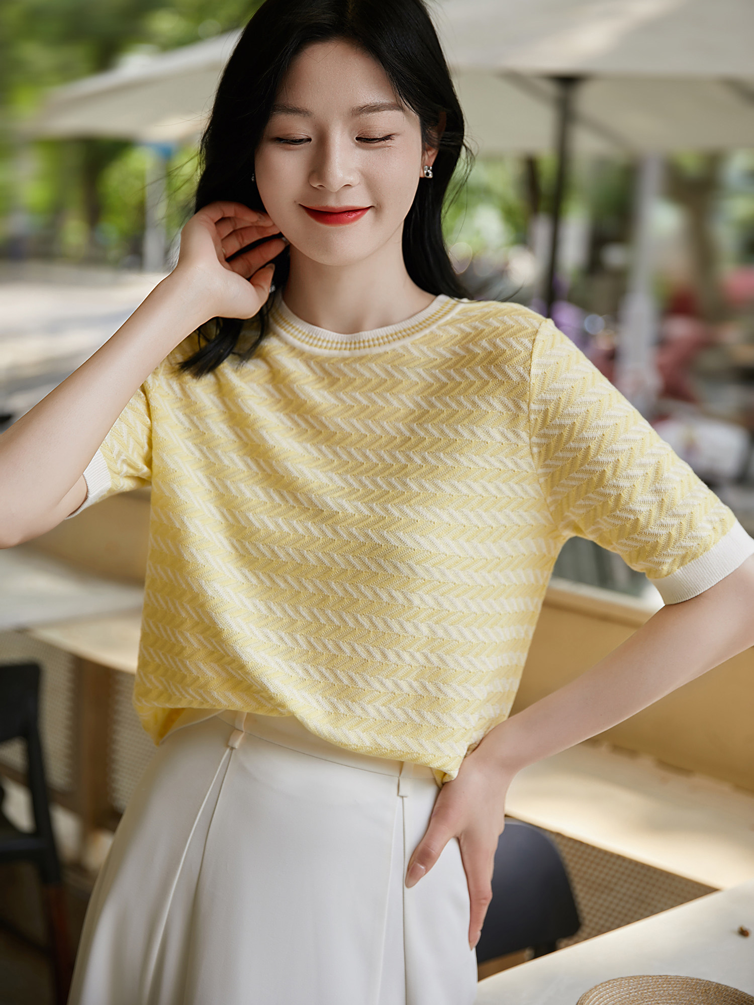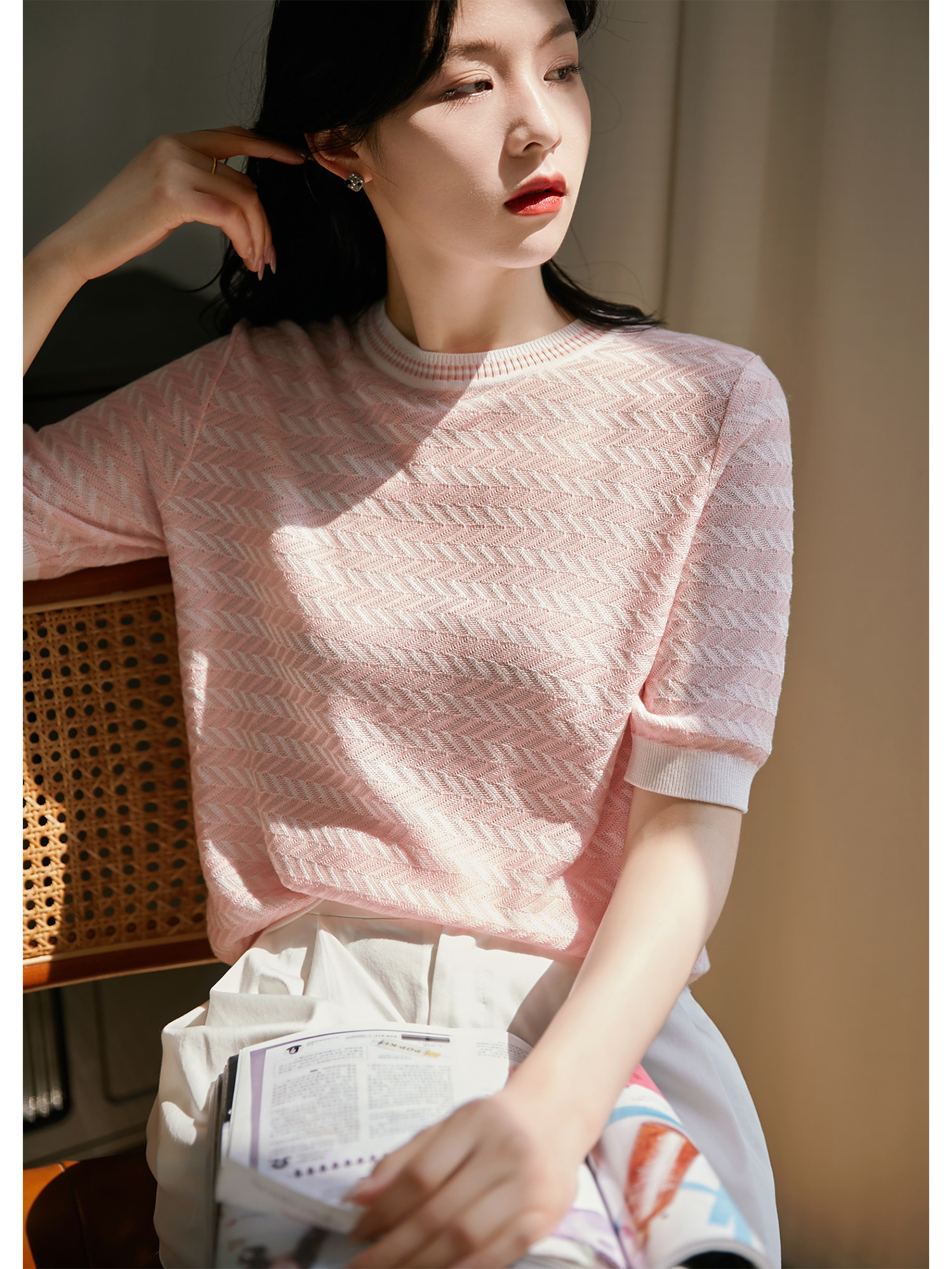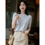 Летний освежающий мягкий дышащий легкий и тонкий трикотажный свитер, короткий рукав