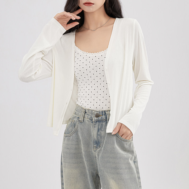 Белый трикотажный тонкий шифоновый кардиган, эффект подтяжки, свободный крой