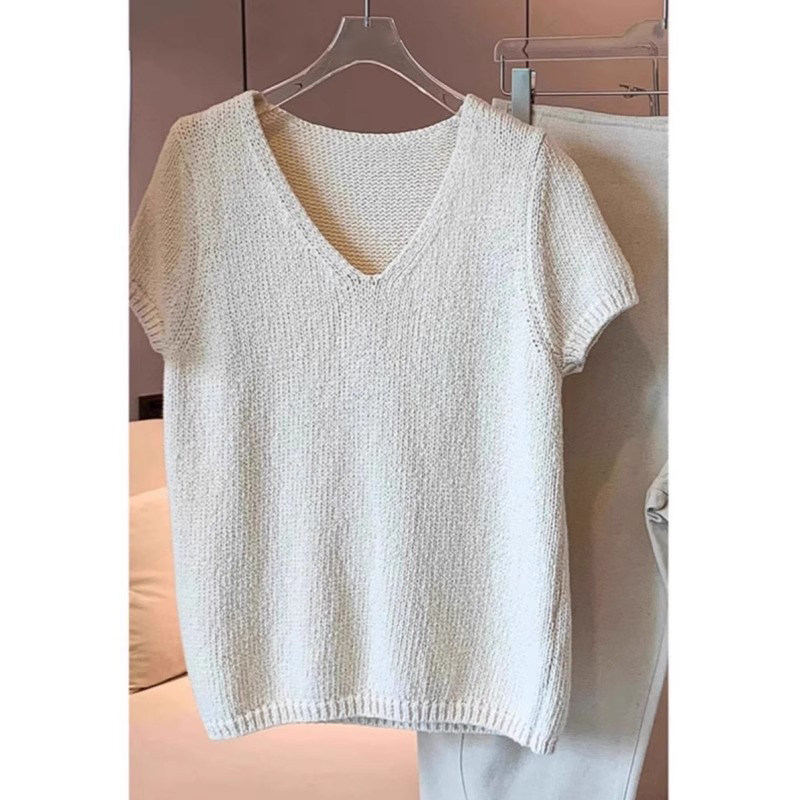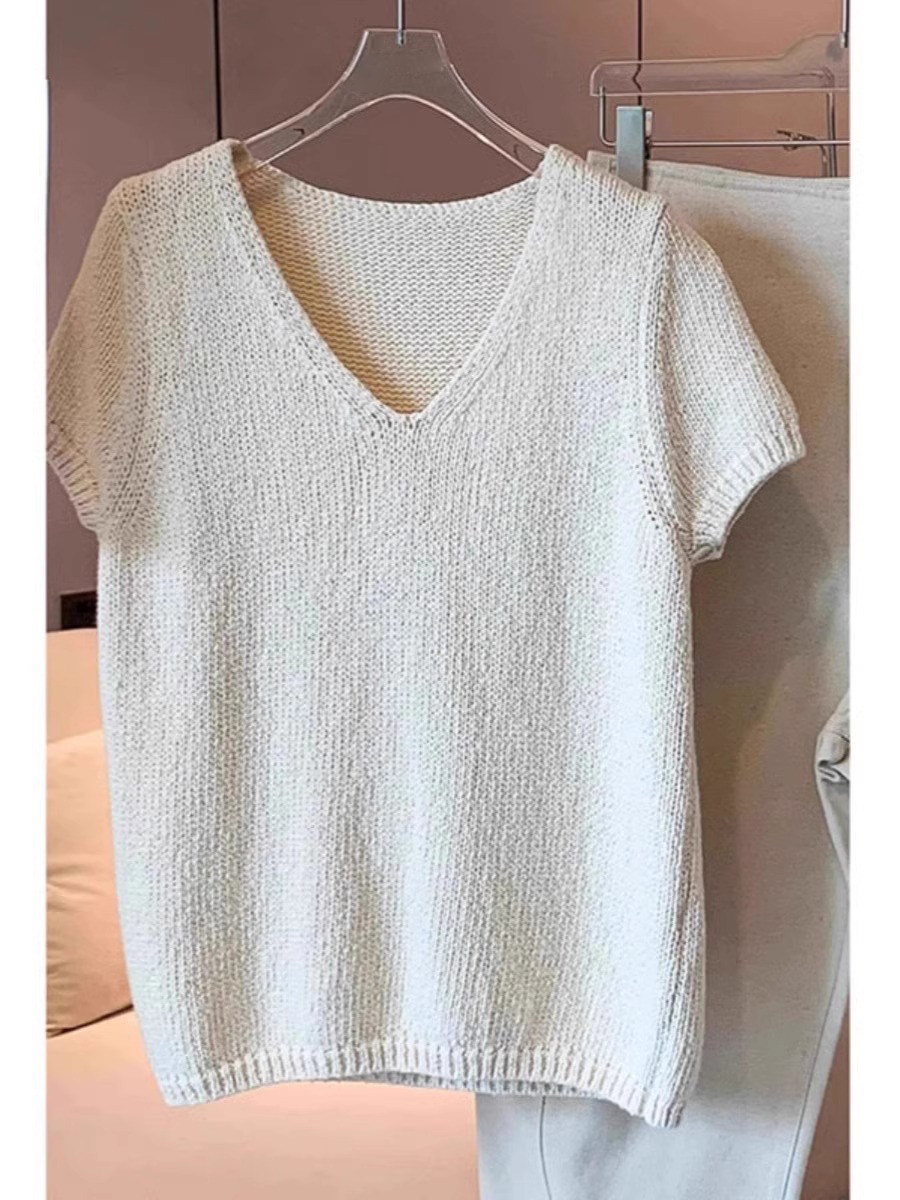 Японский ретро трикотажный летний тонкий элитный свитер, V-образный вырез, облегающий крой, в западном стиле