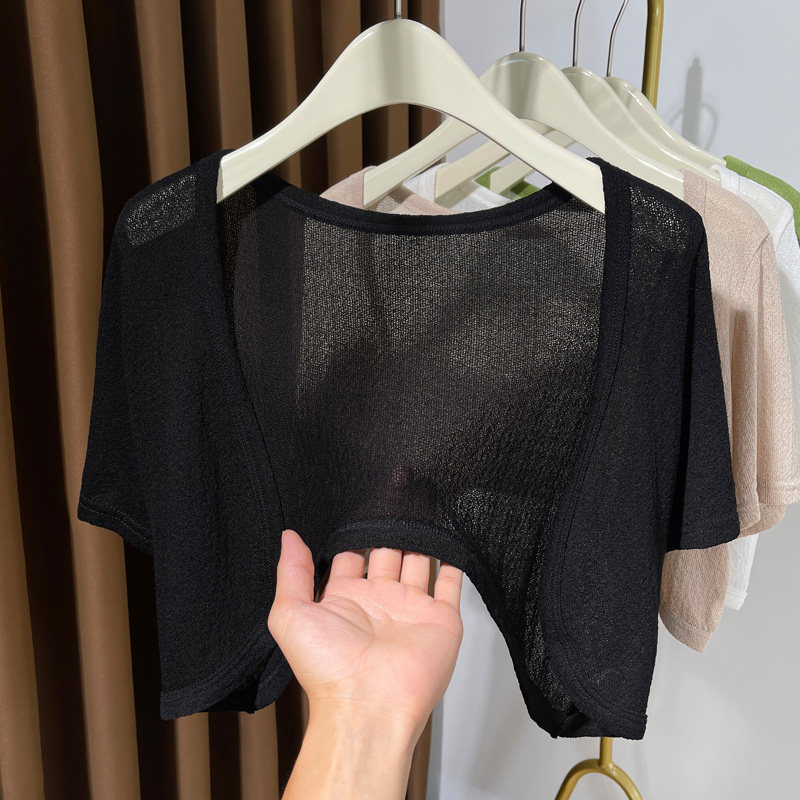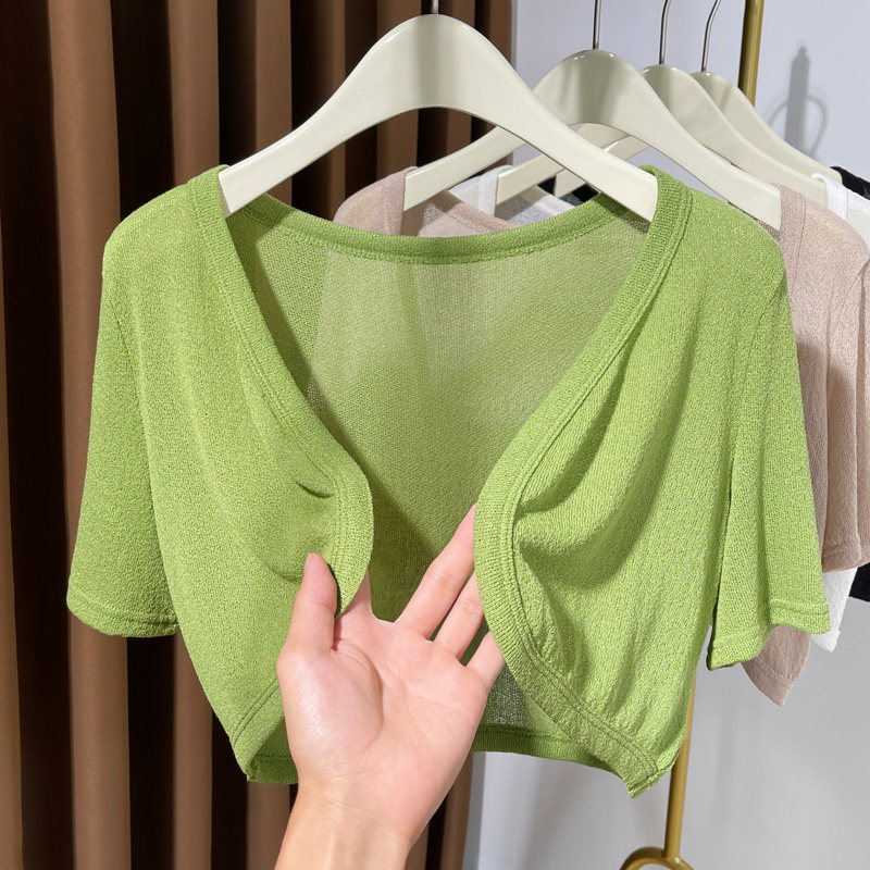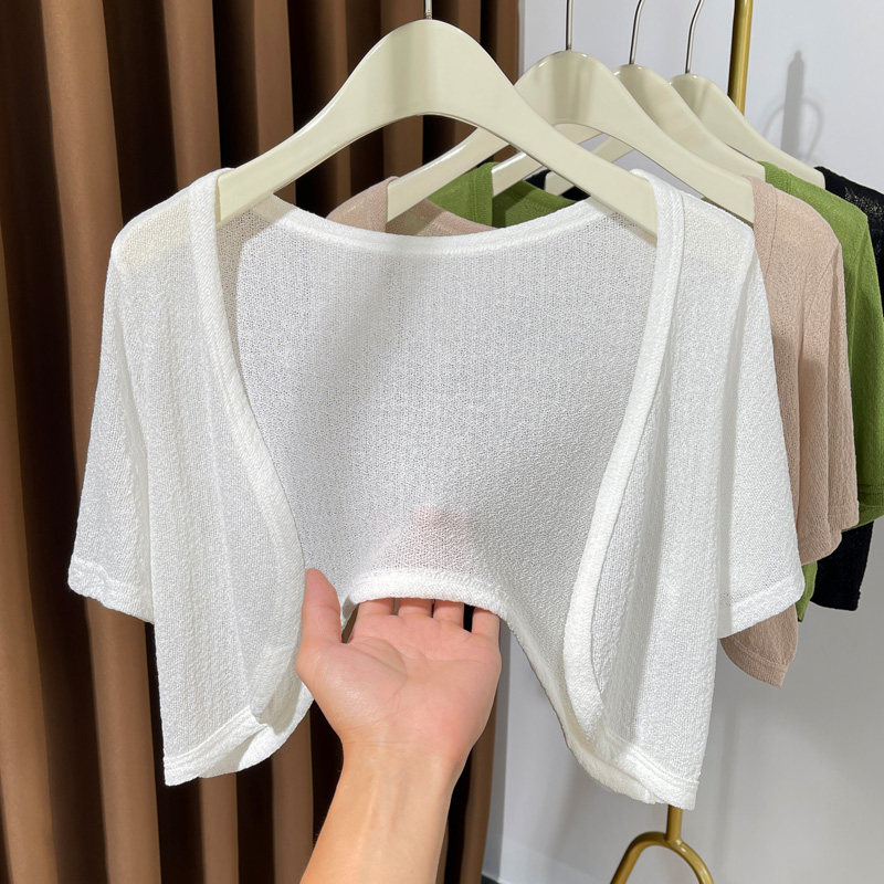 Трикотажный летний кардиган, тонкая накидка, платье-комбинация, короткий жилет, короткий рукав