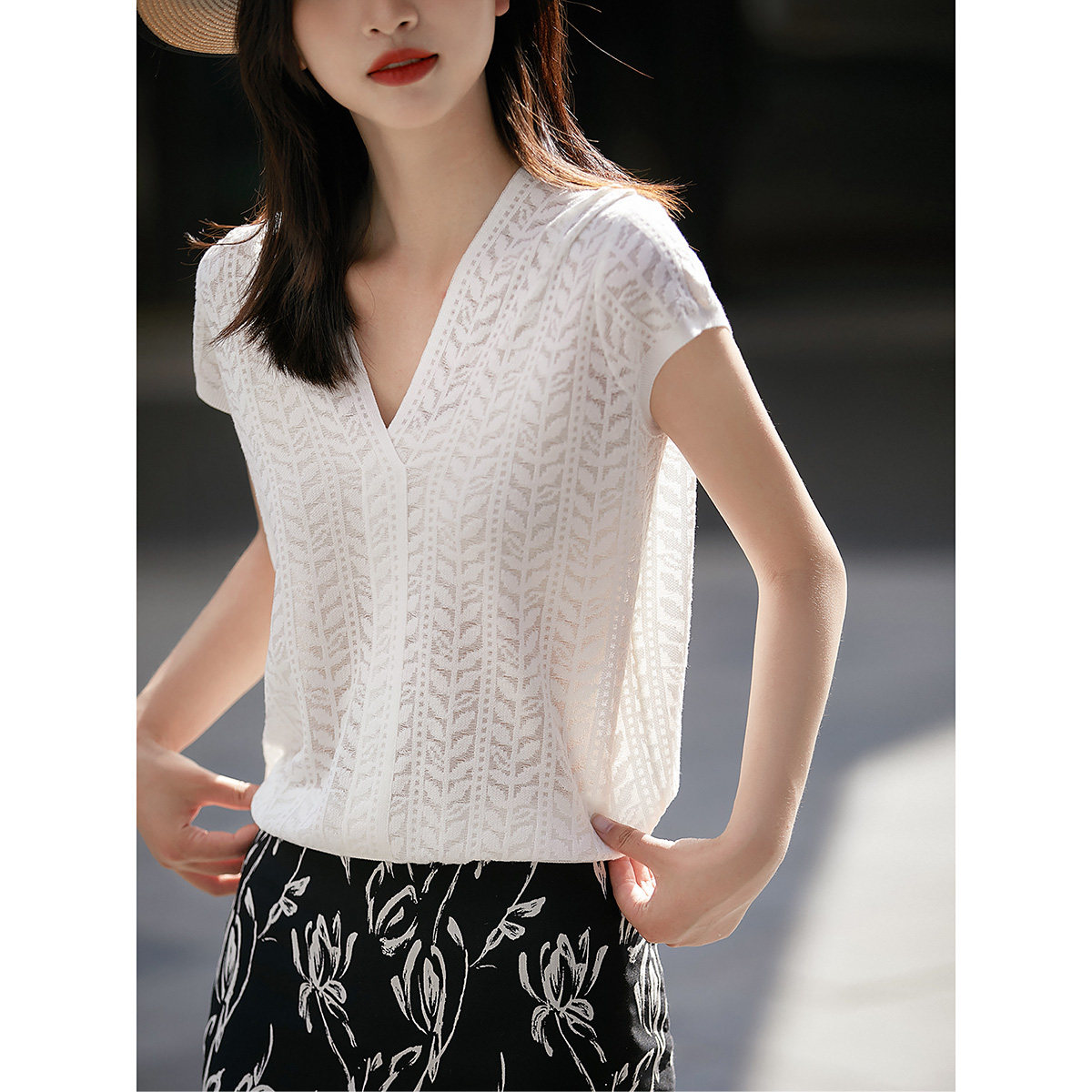 Трикотажный летний модный свитер, футболка, короткий рукав