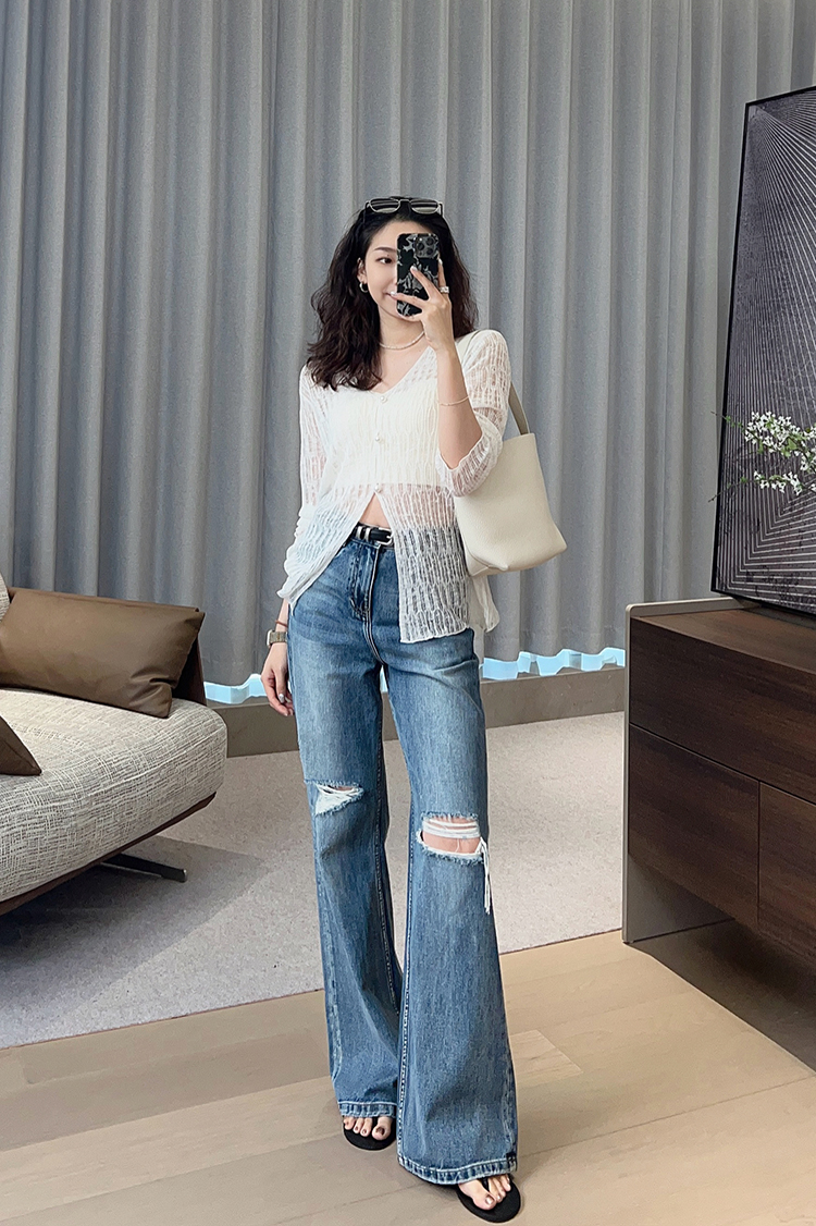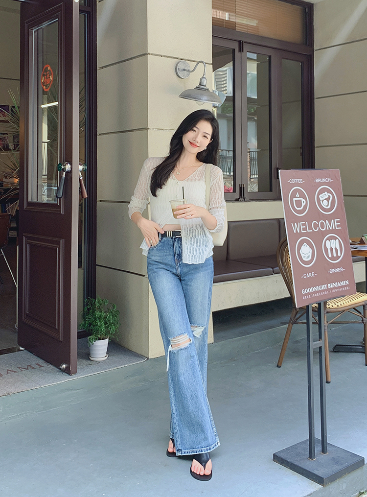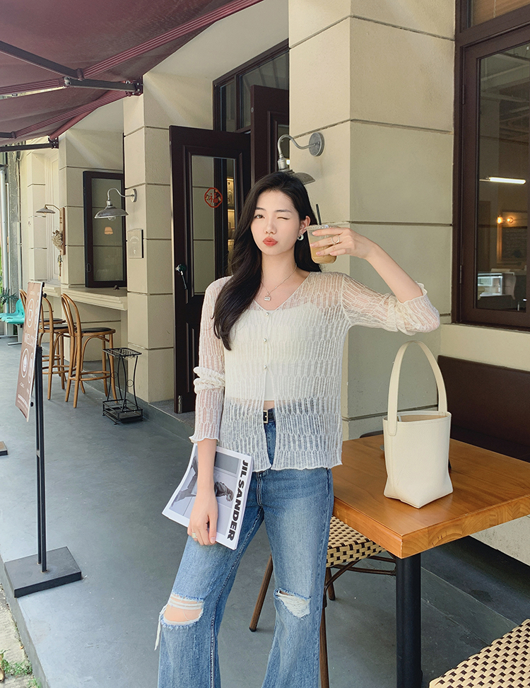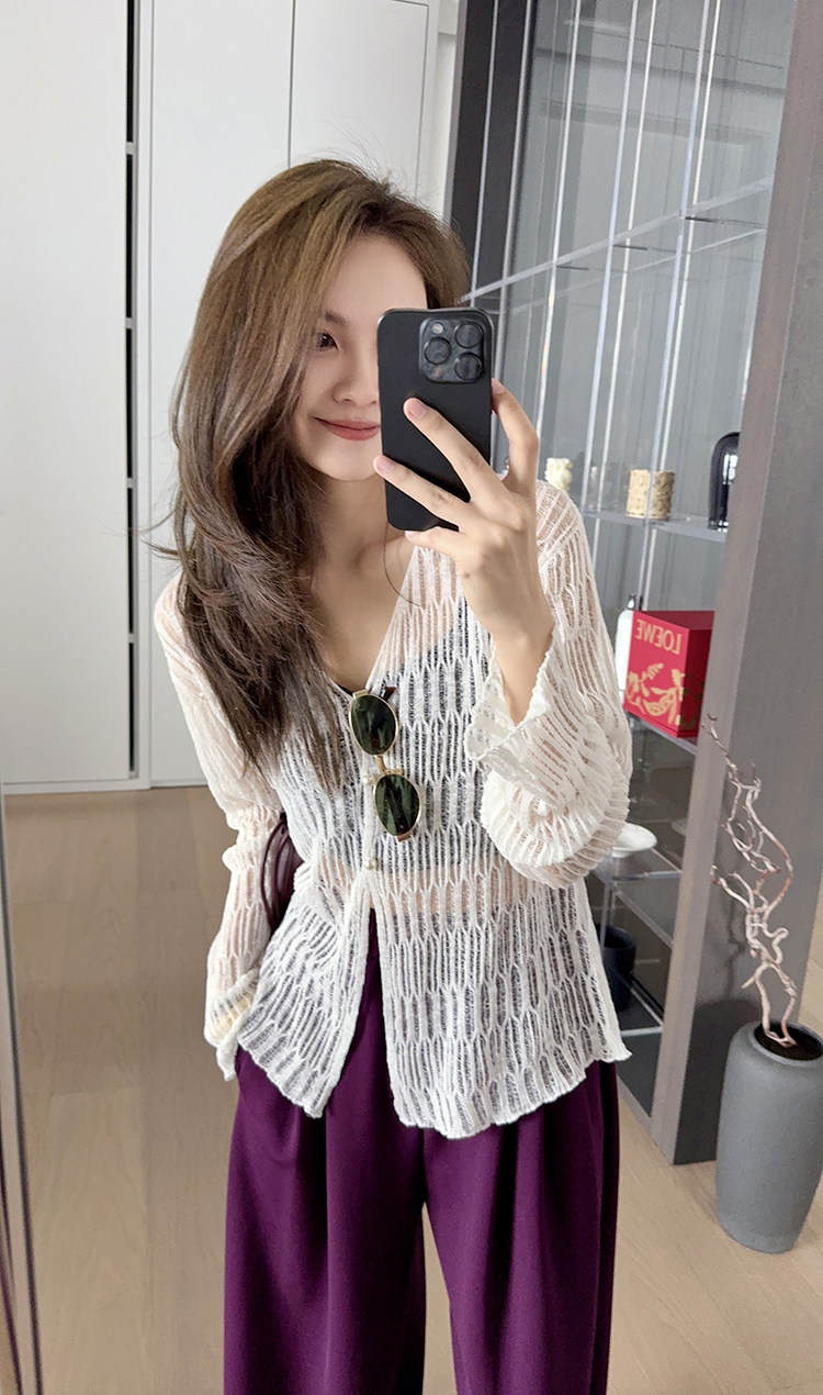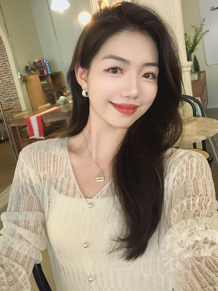 美洋 Мейян Глазированная кардиганская пустота, туманная романтическая лень, расслабление v -neck long -sleeved свитер