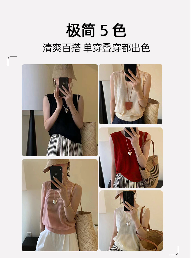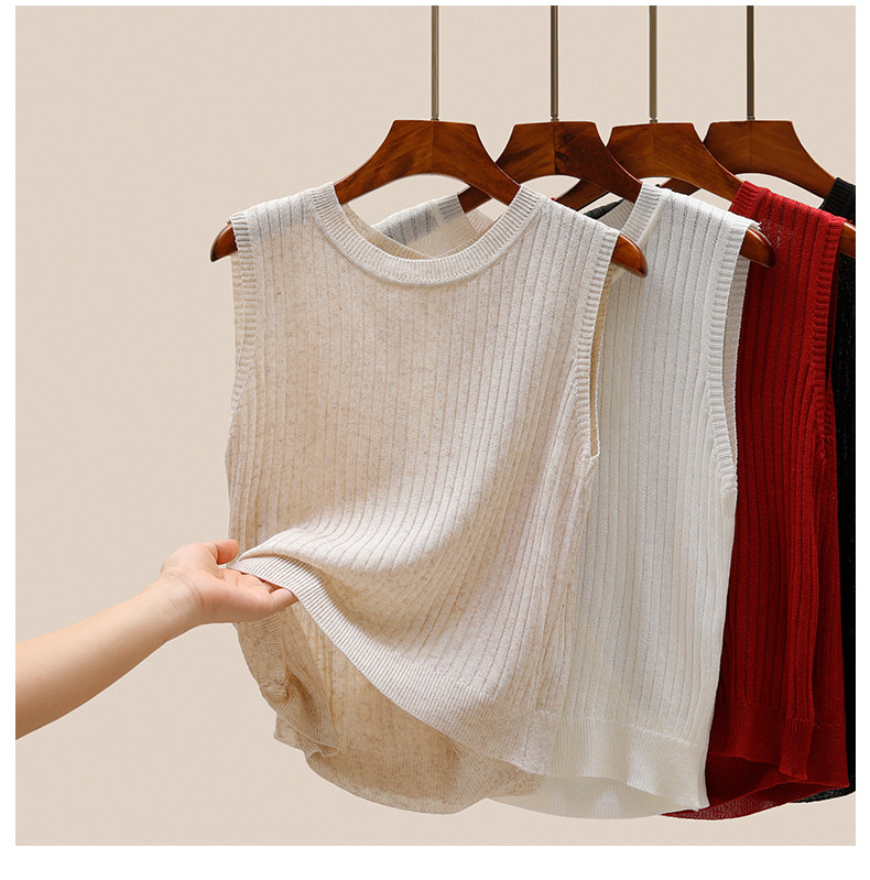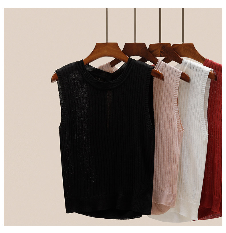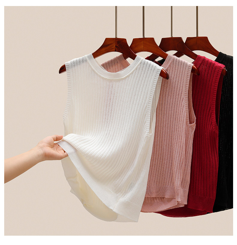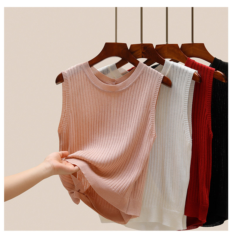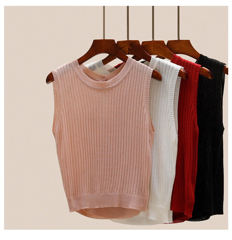 Трикотажный летний дизайнерский шелковый жилет без рукавов, тренд сезона