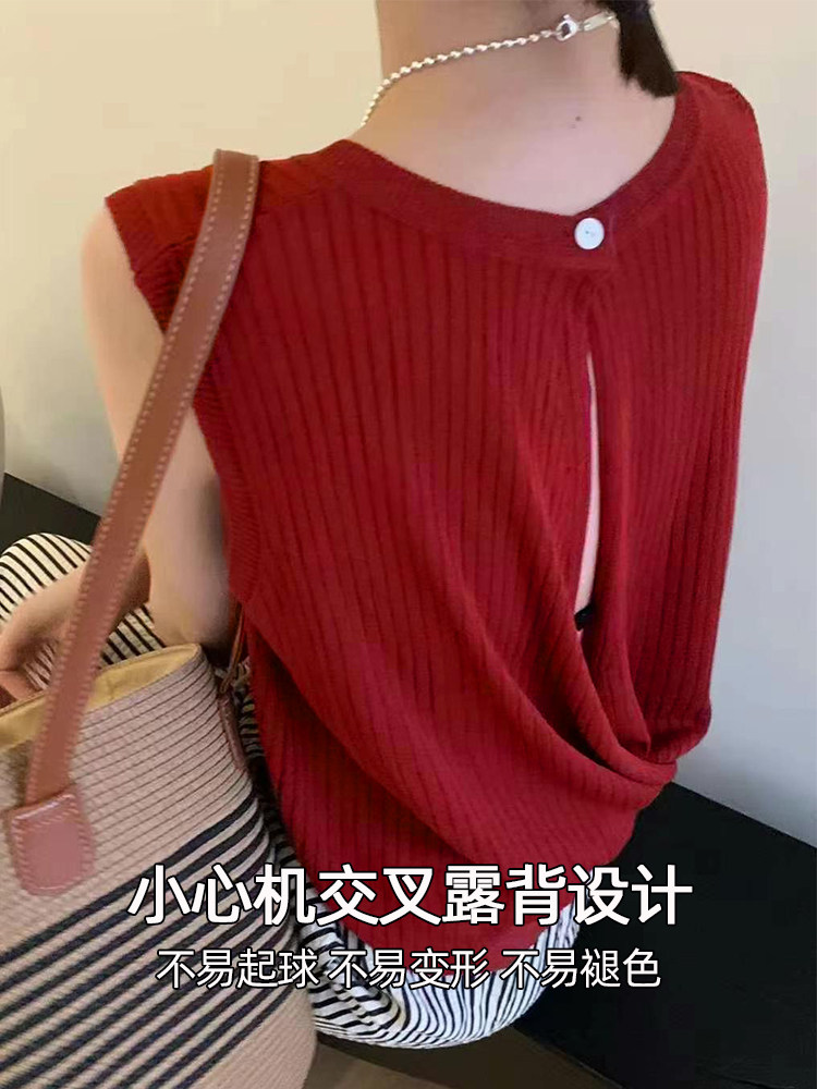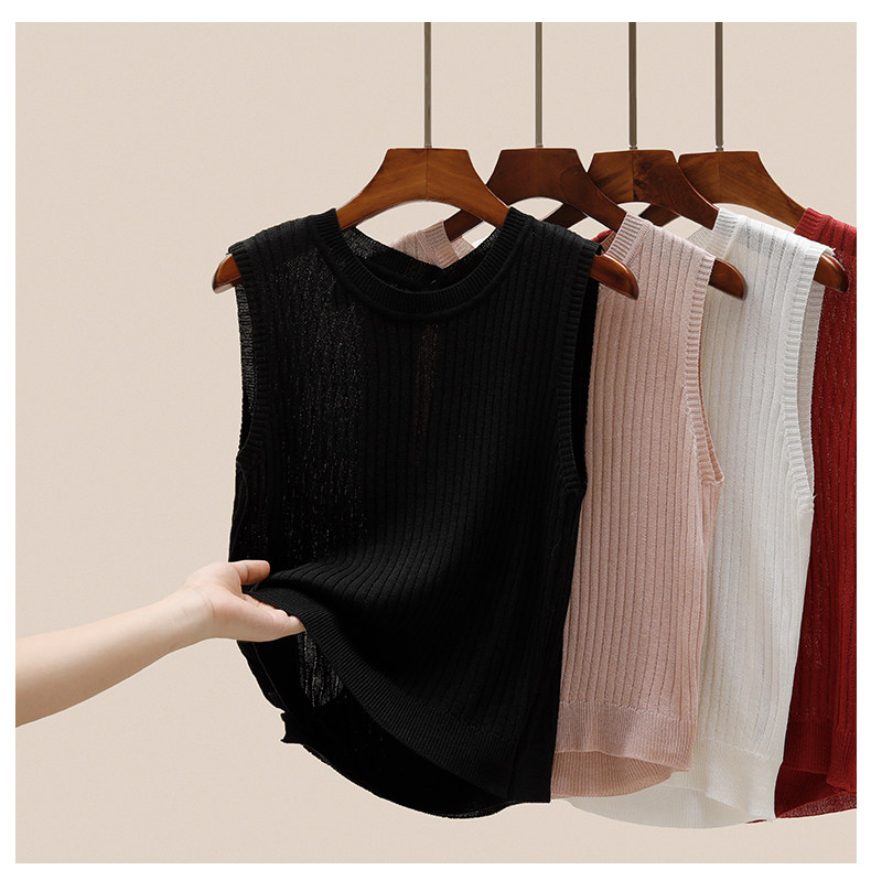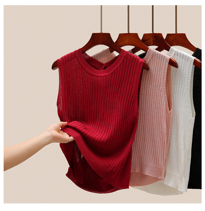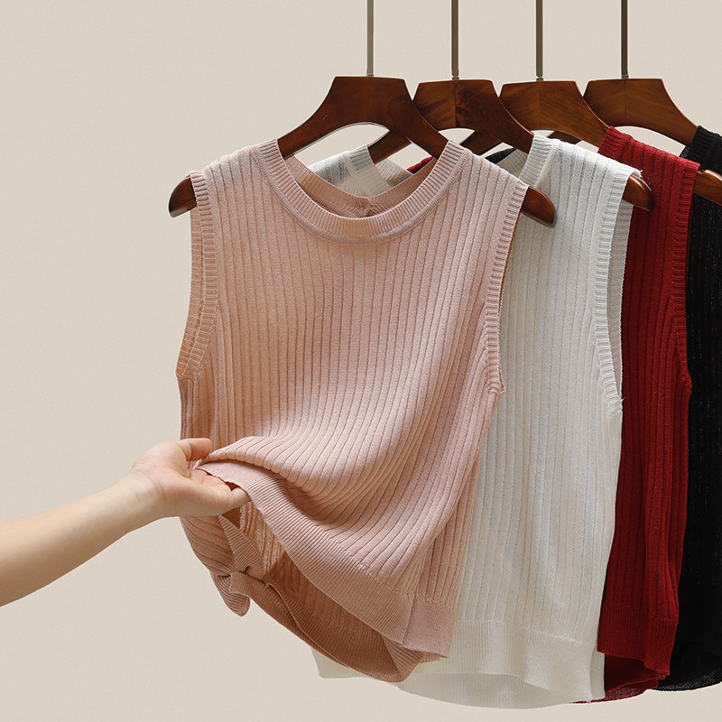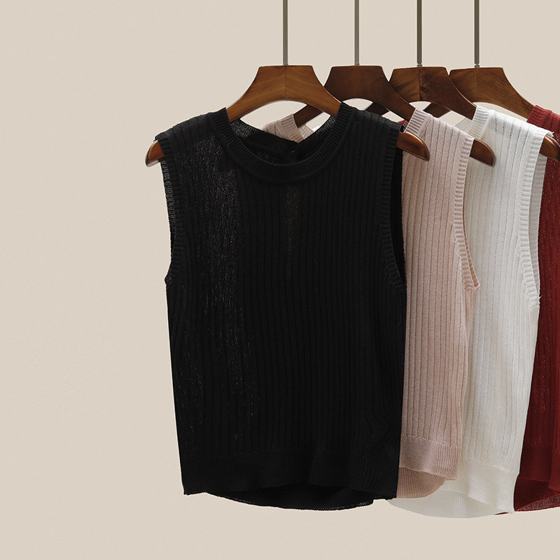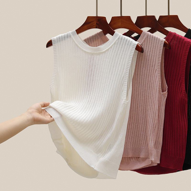 Трикотажный летний дизайнерский шелковый жилет без рукавов, тренд сезона