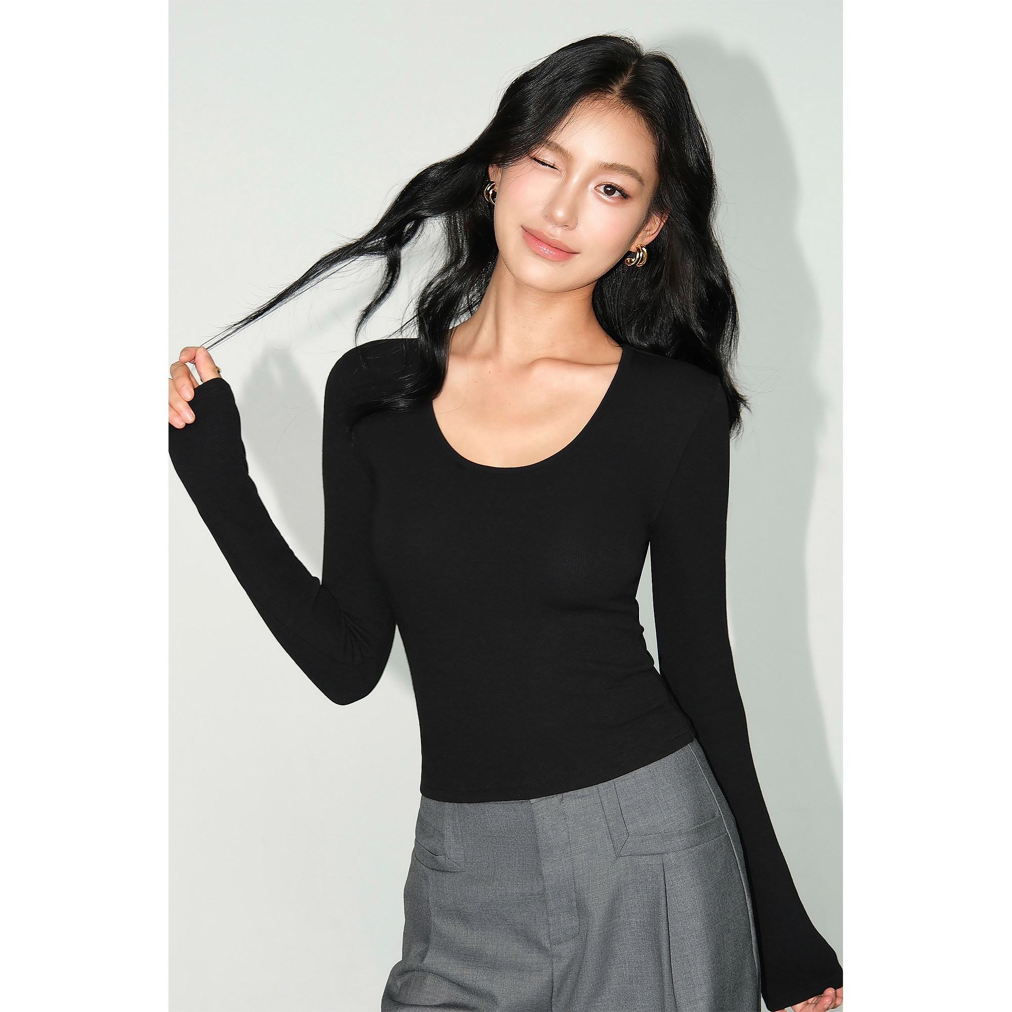 Черный трикотажный весенний короткий лонгслив