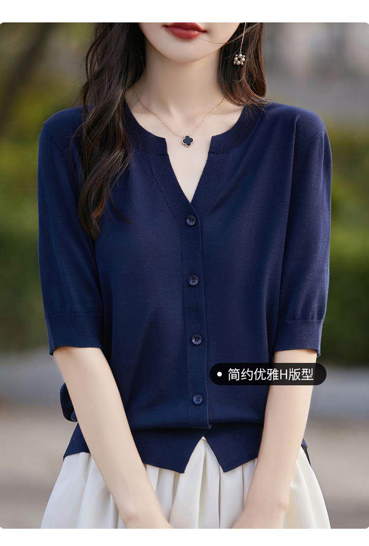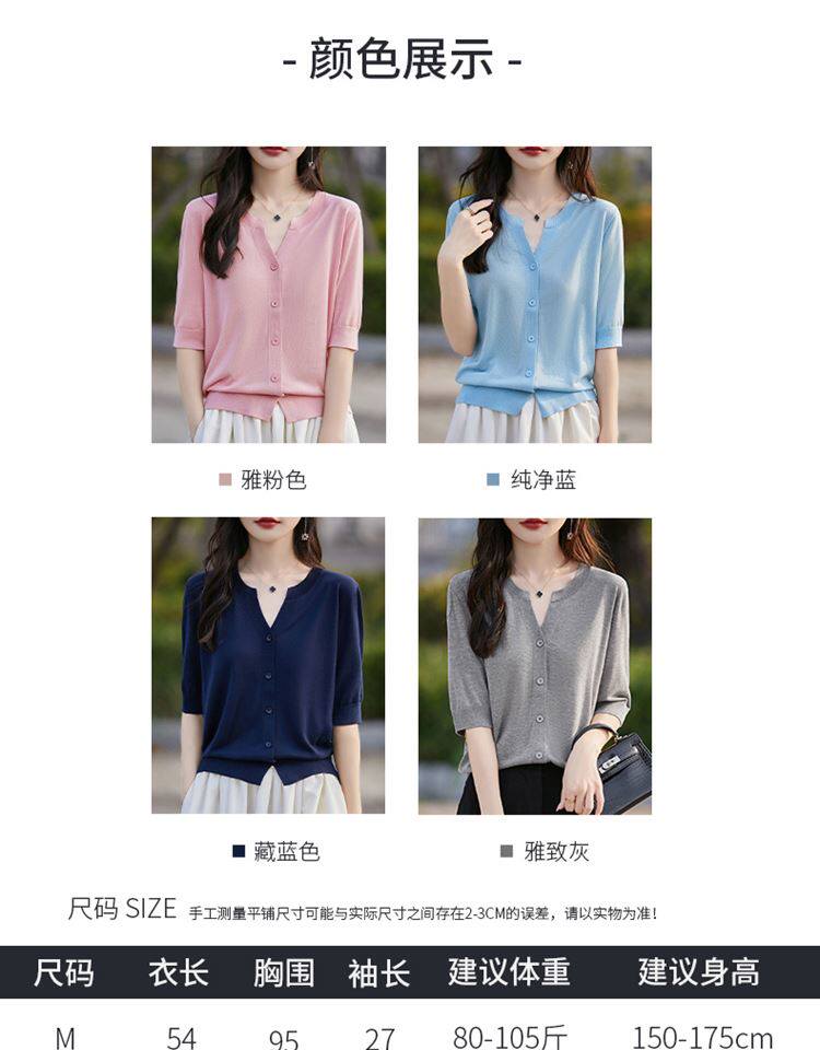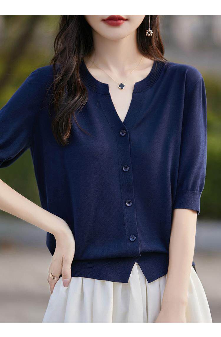 Летняя футболка, тонкий трикотажный кардиган, свободный крой, V-образный вырез