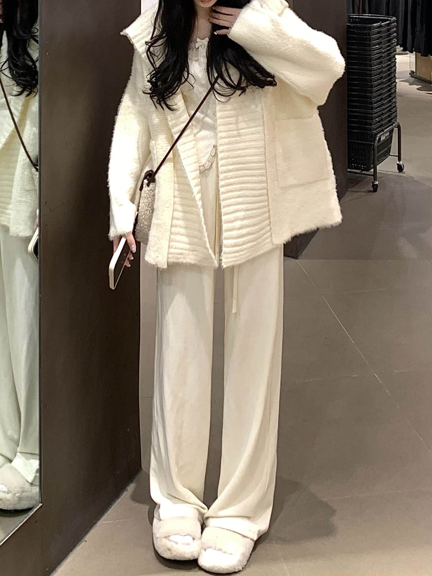 Белый свитер с капюшоном, демисезонная куртка, длинный кардиган, французский стиль, подходит для подростков, средней длины