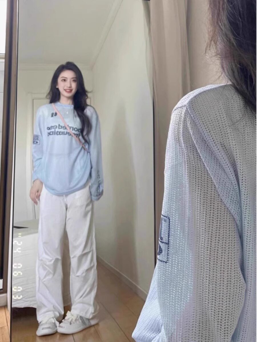 Летний тонкий трикотажный лонгслив, футболка, защита от солнца