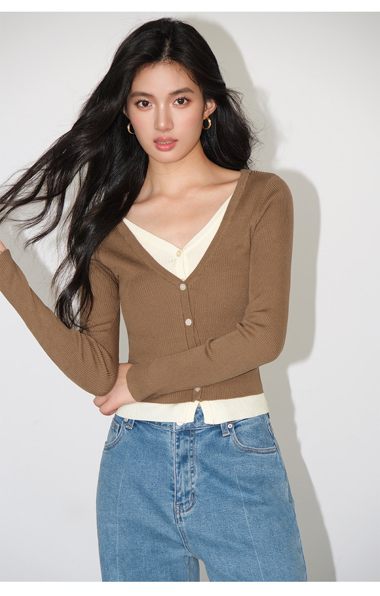 Комплект, трикотажный осенний дизайнерский кардиган, тренд сезона, облегающий крой