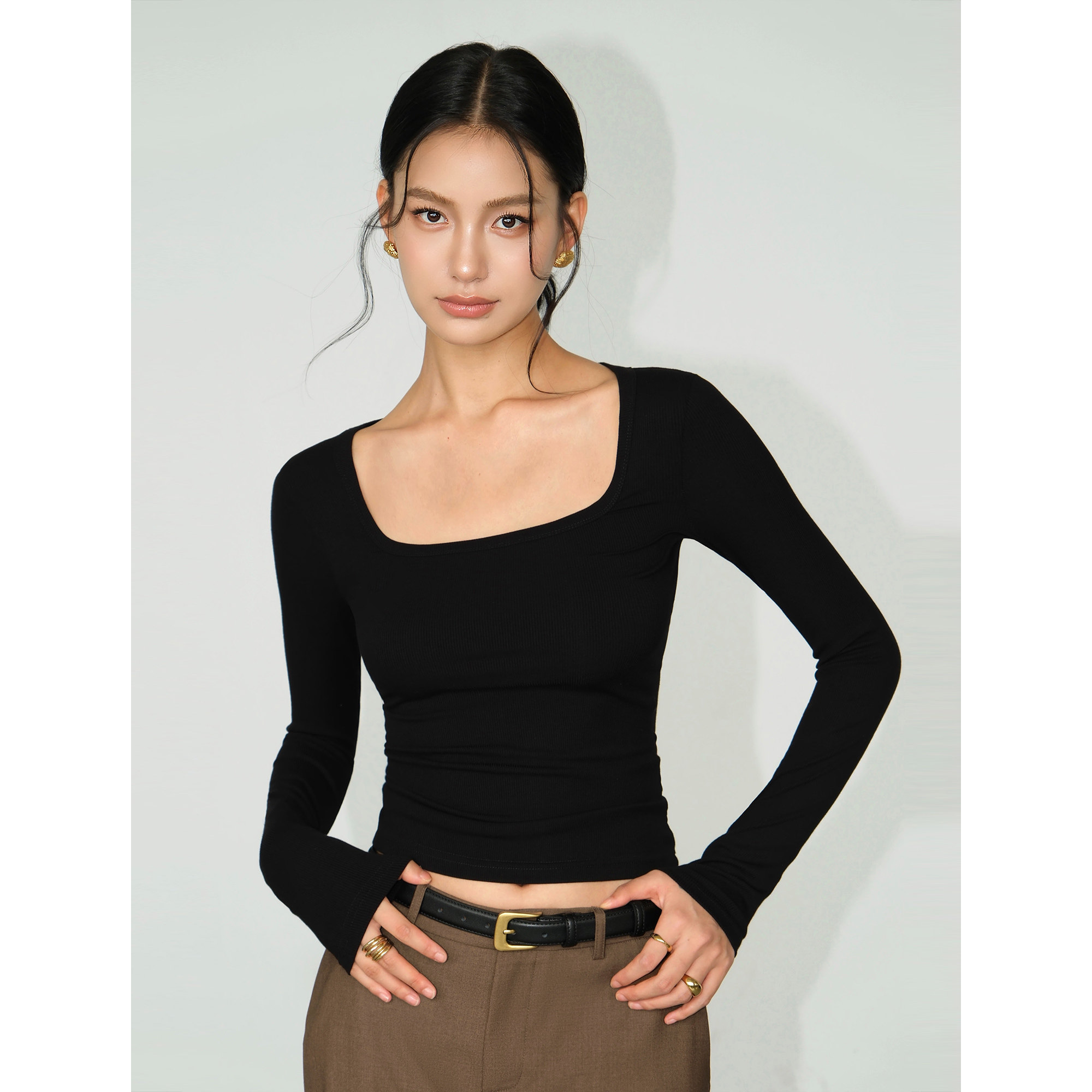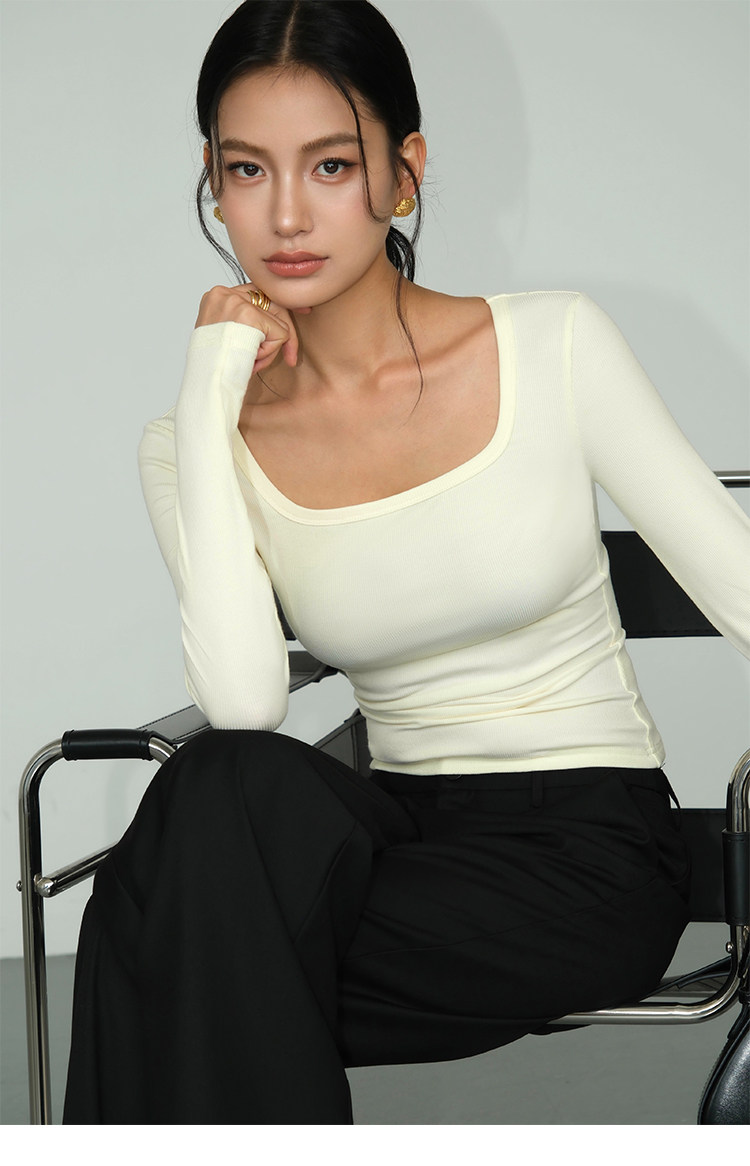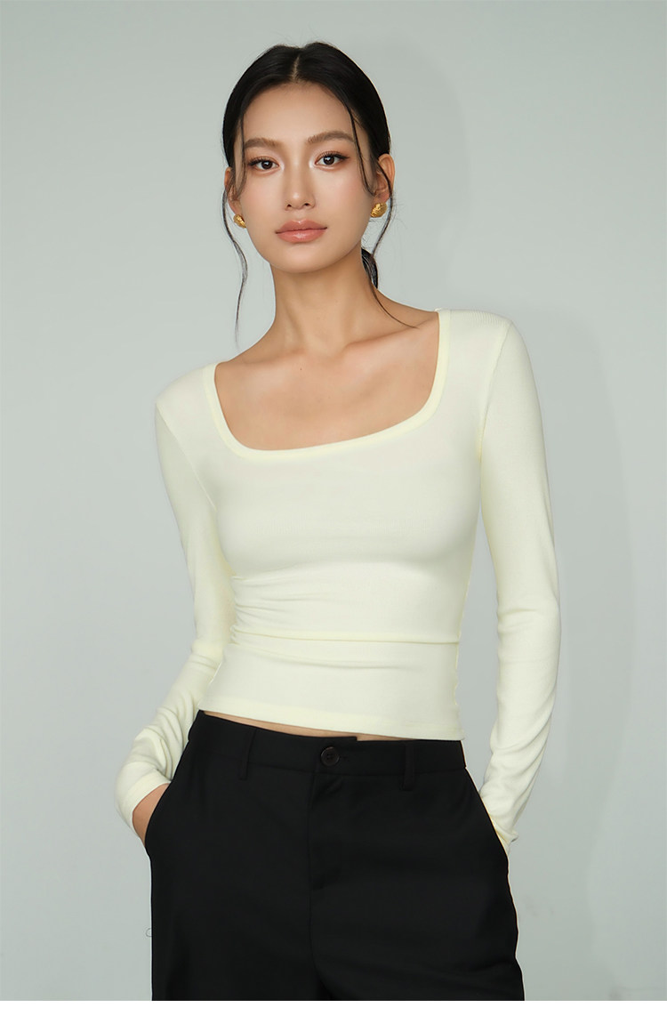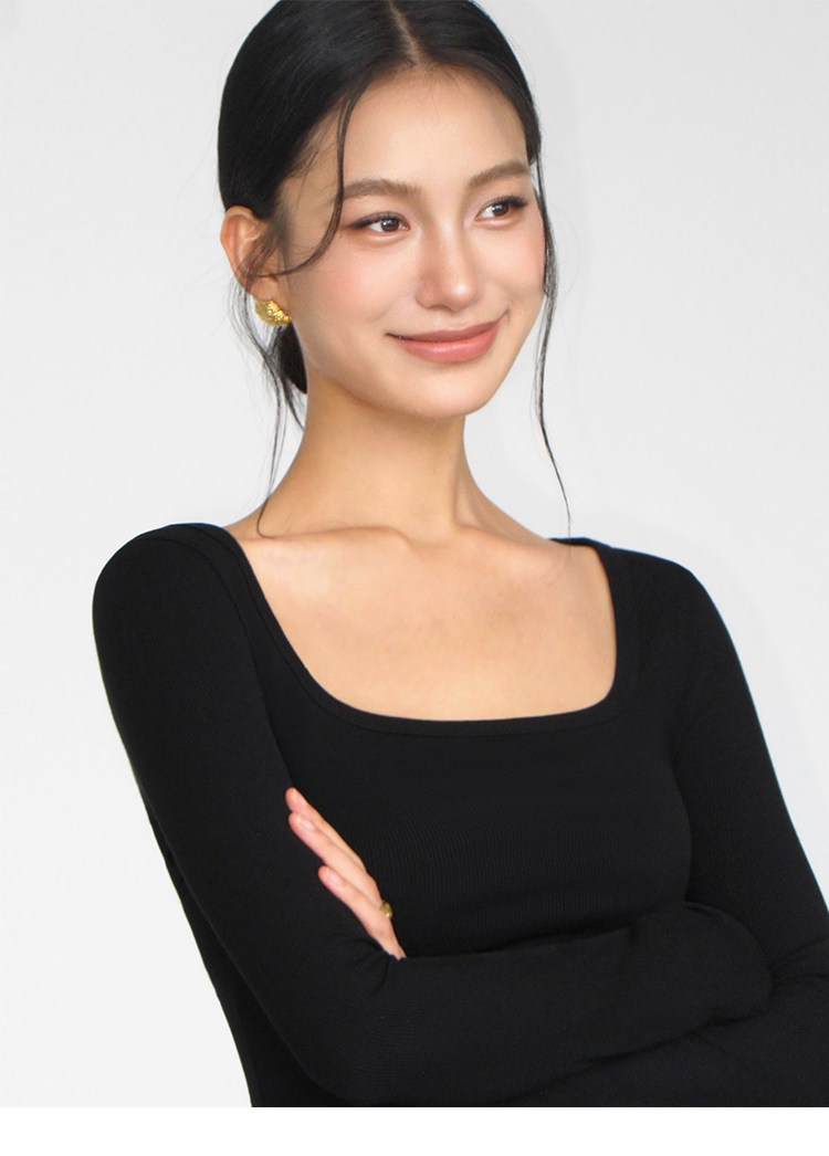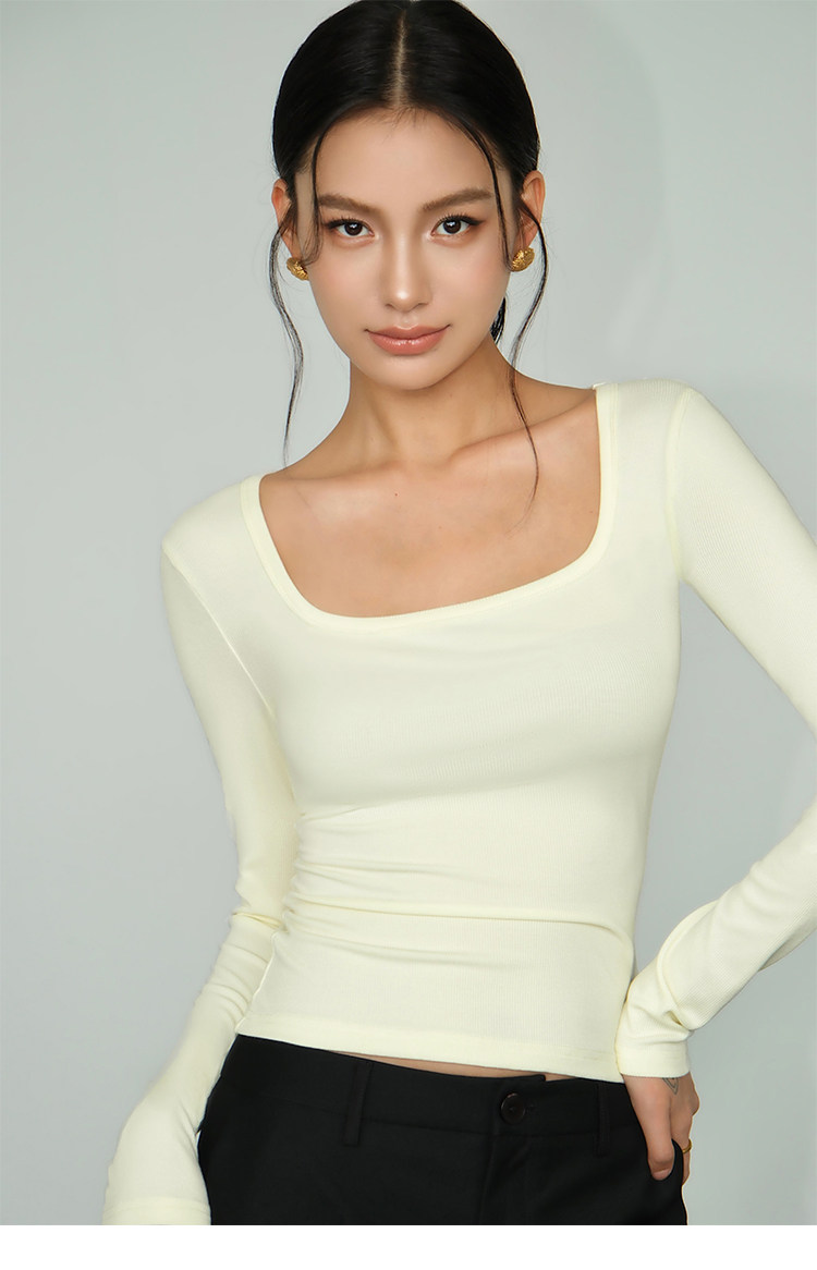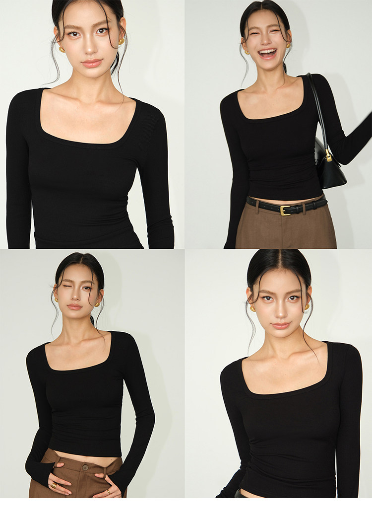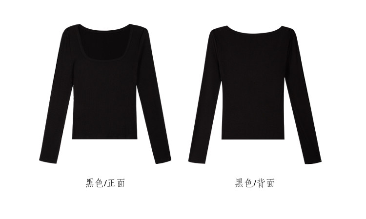 Черный трикотажный лонгслив, осенняя приталенная футболка, квадратный вырез