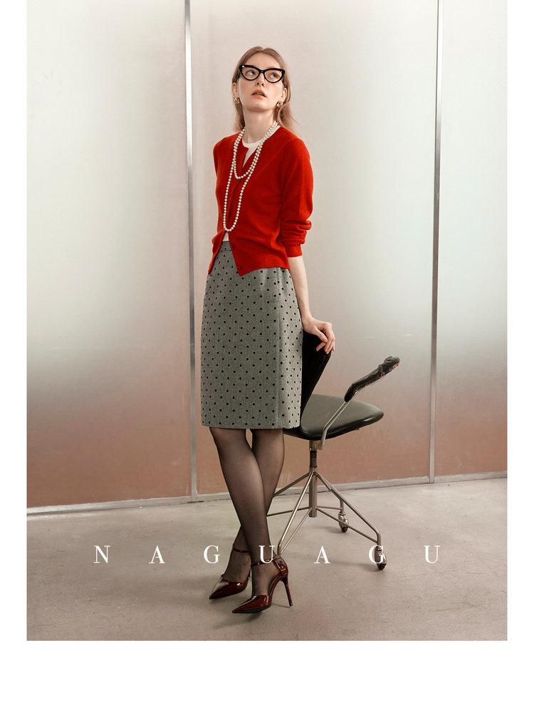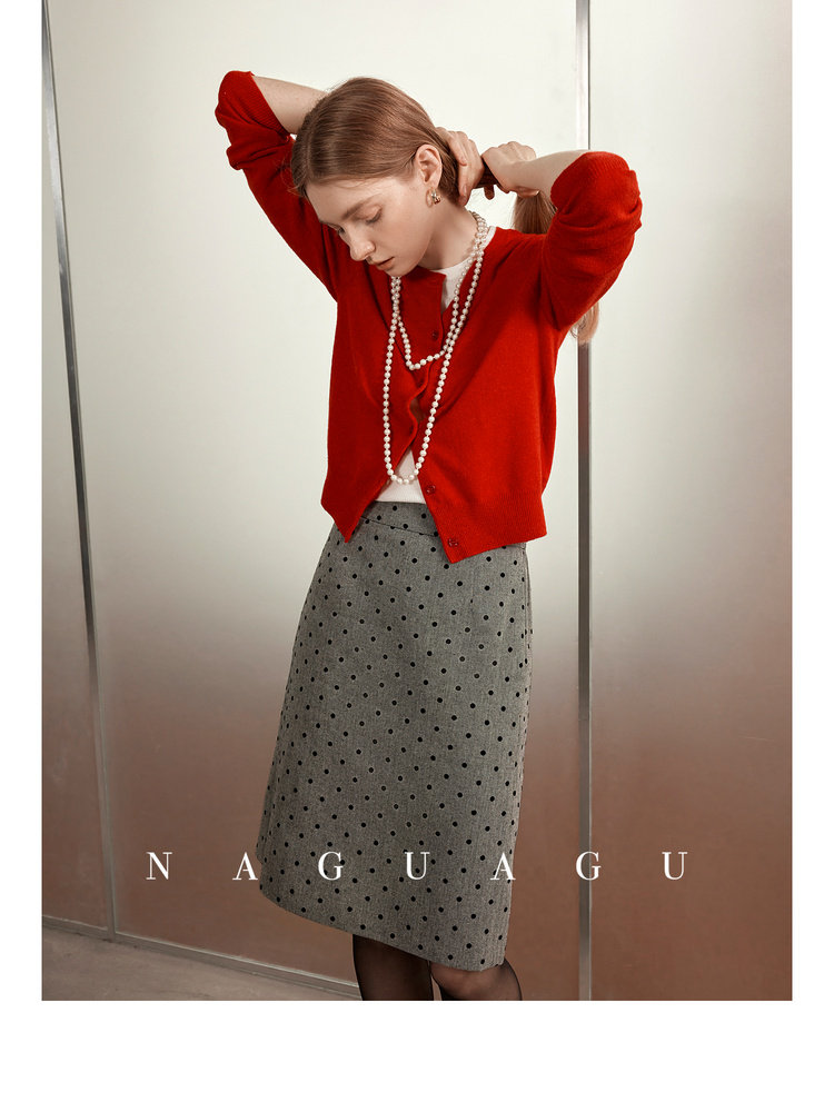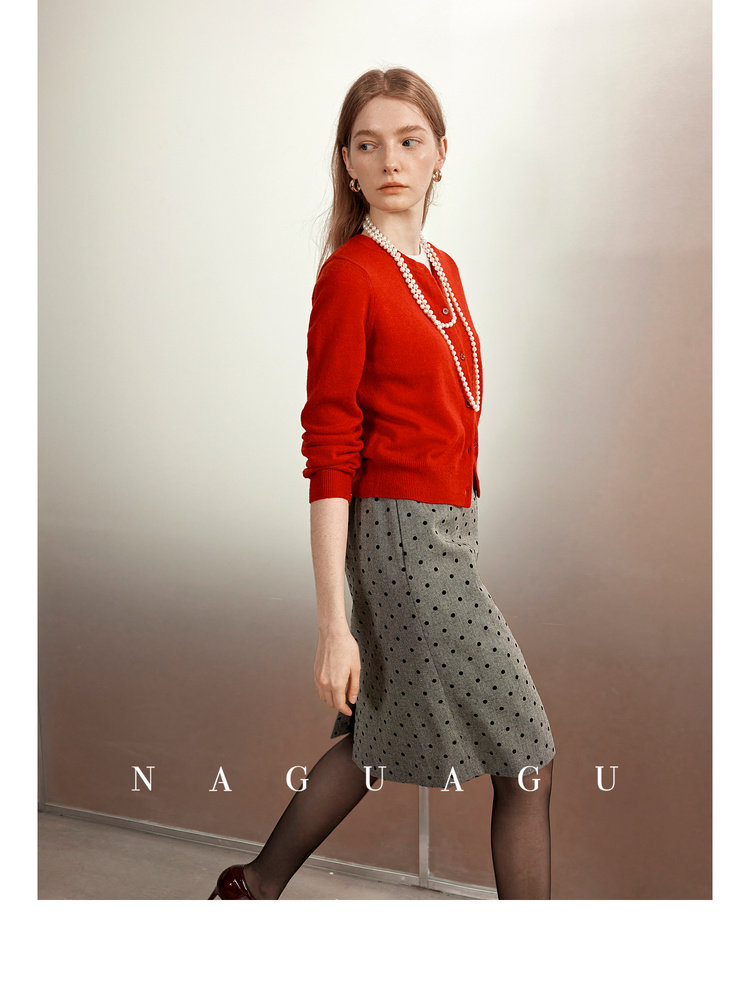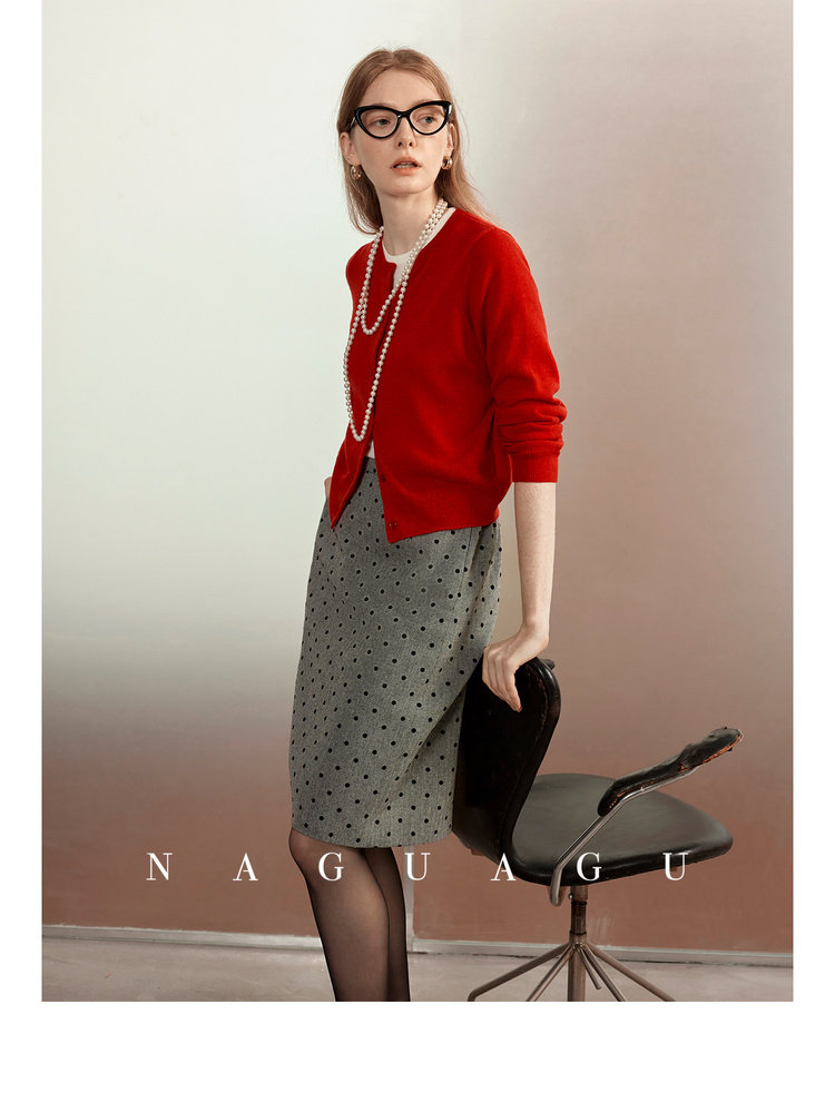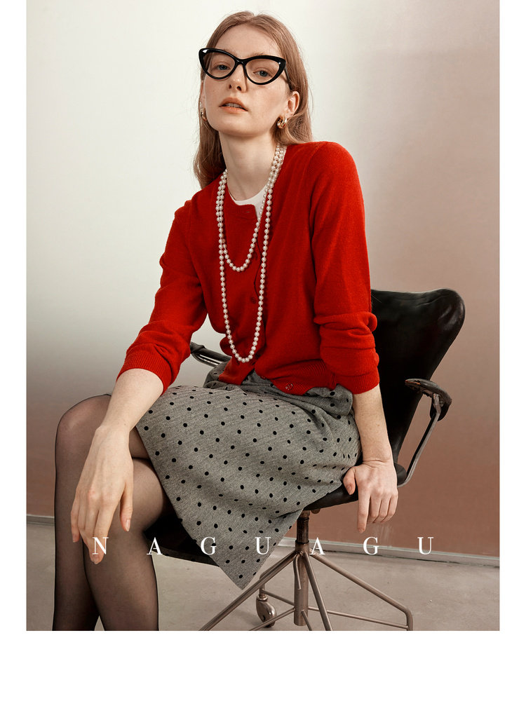 Альпака, шерстяной красный кардиган, осенняя, облегающий крой