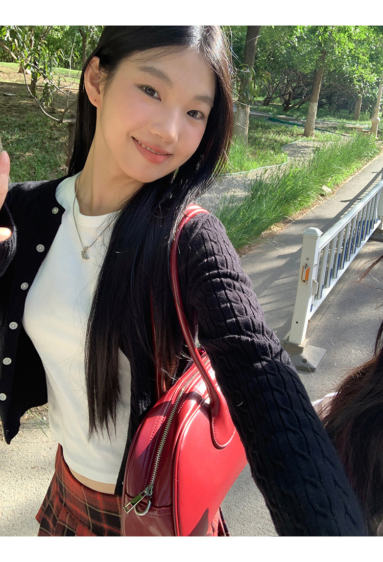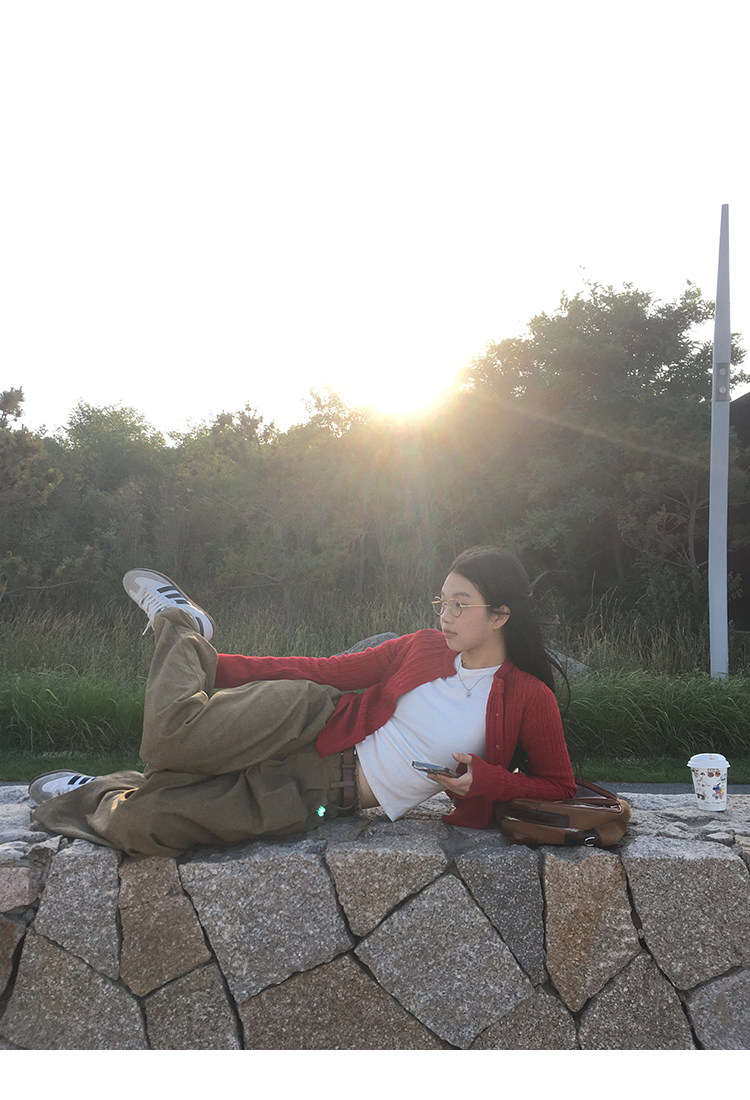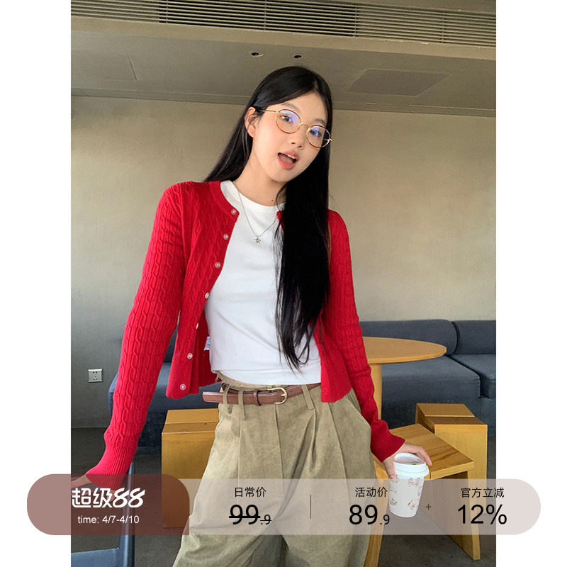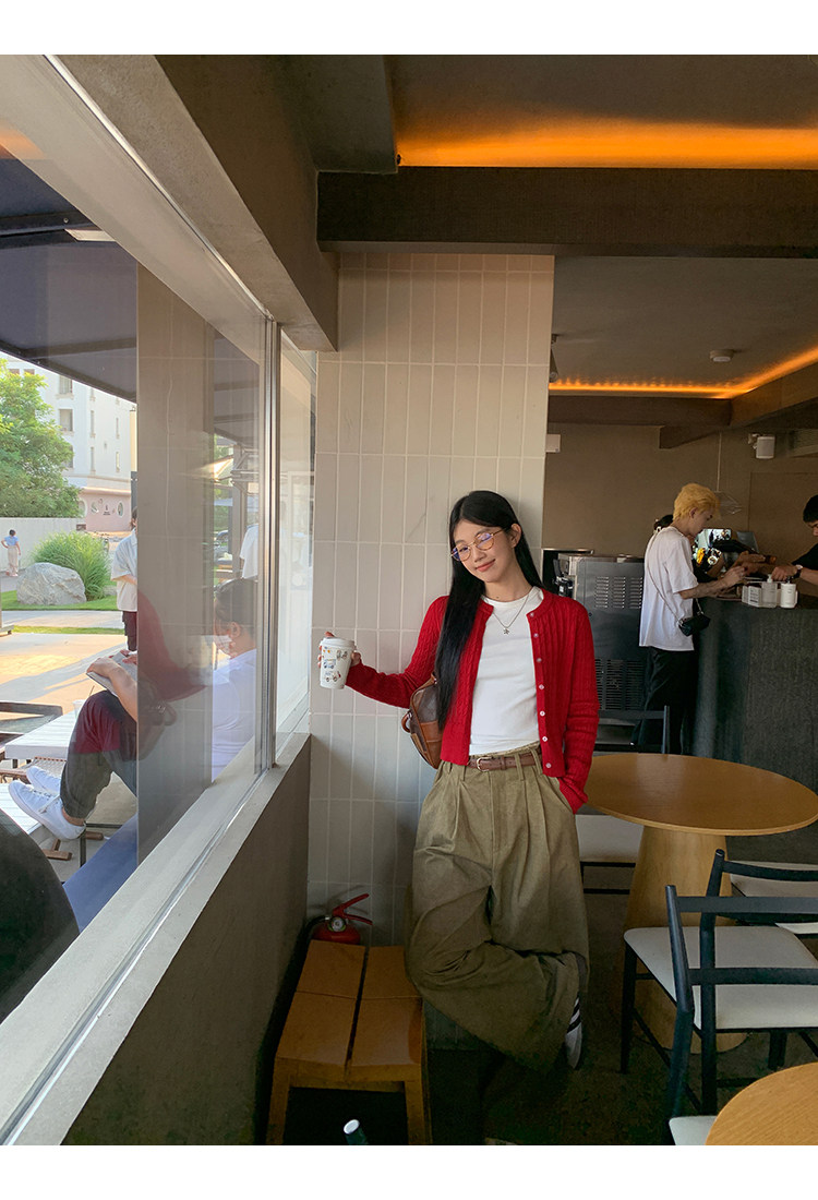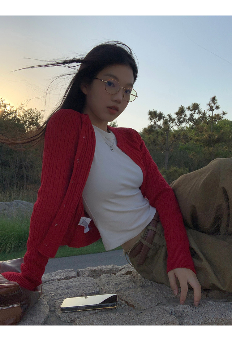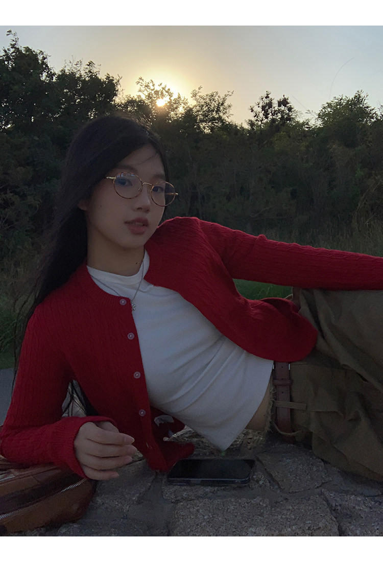 Красный весенний кардиган, базовый короткий лонгслив, свитер, тренд сезона