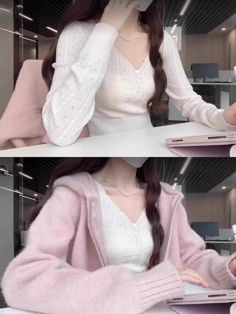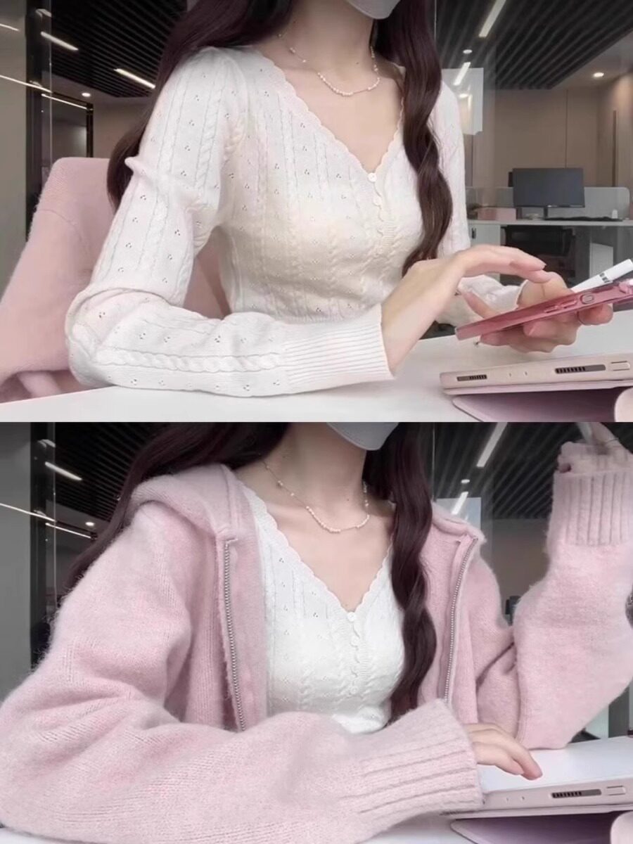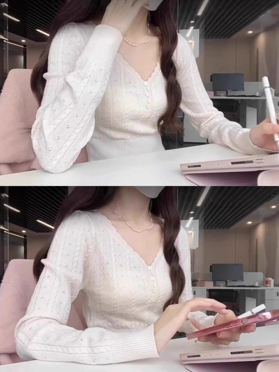 Белый трикотажный осенний сексуальный короткий базовый свитер, V-образный вырез, подходит для подростков
