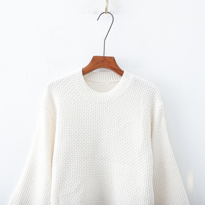 Модный трикотажный осенний милый короткий свитер с круглым воротником, в корейском стиле, свободный крой