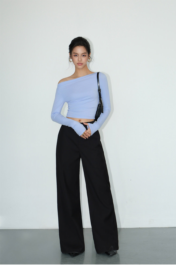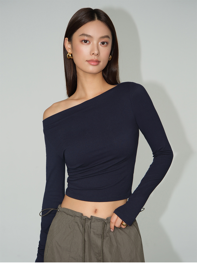 Черный лонгслив, весенняя дизайнерская трикотажная футболка, тренд сезона, облегающий крой