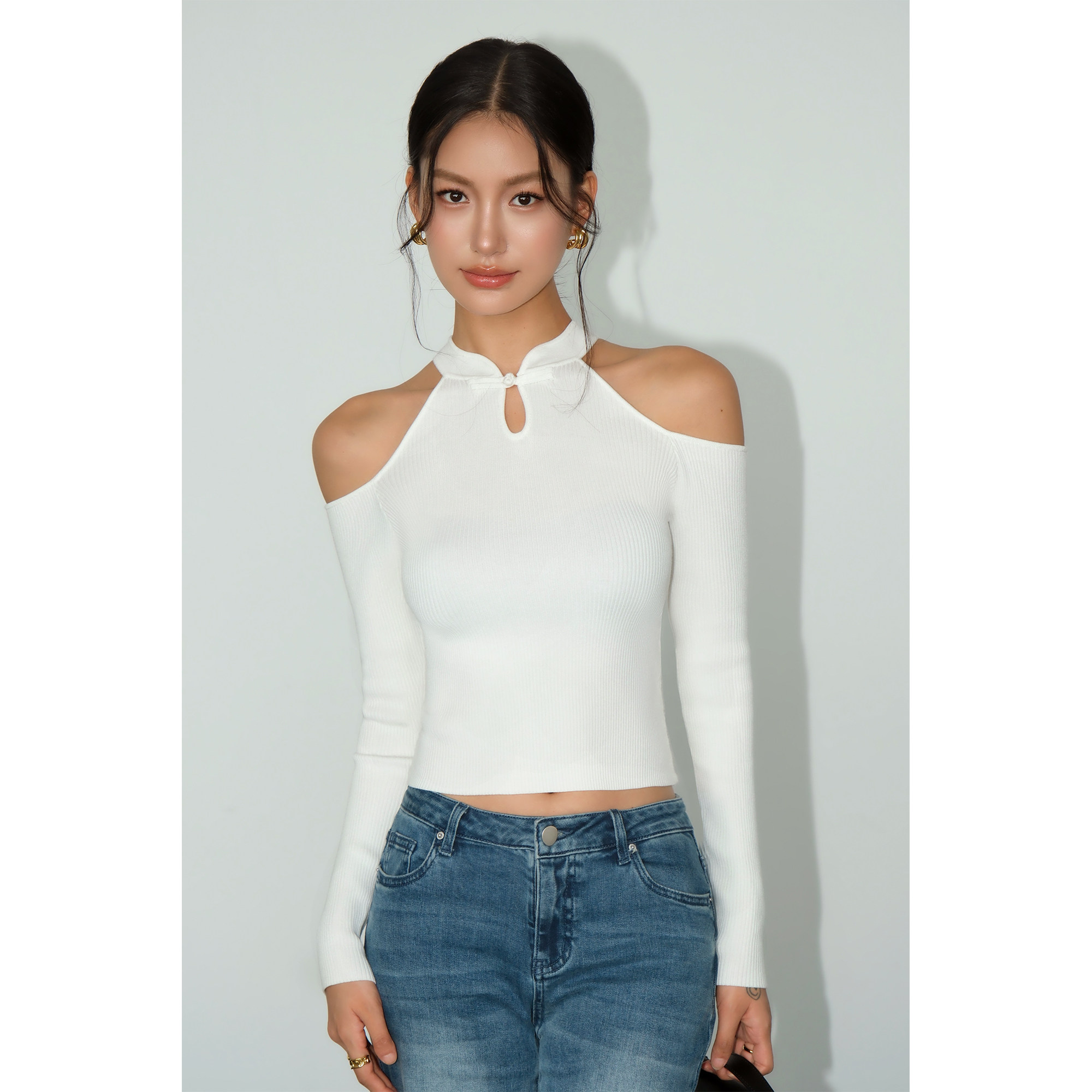 Neva Hu Новая китайская кнопка с воротником с плечами с длинными рукавами для женщин в весеннем китайском стиле.