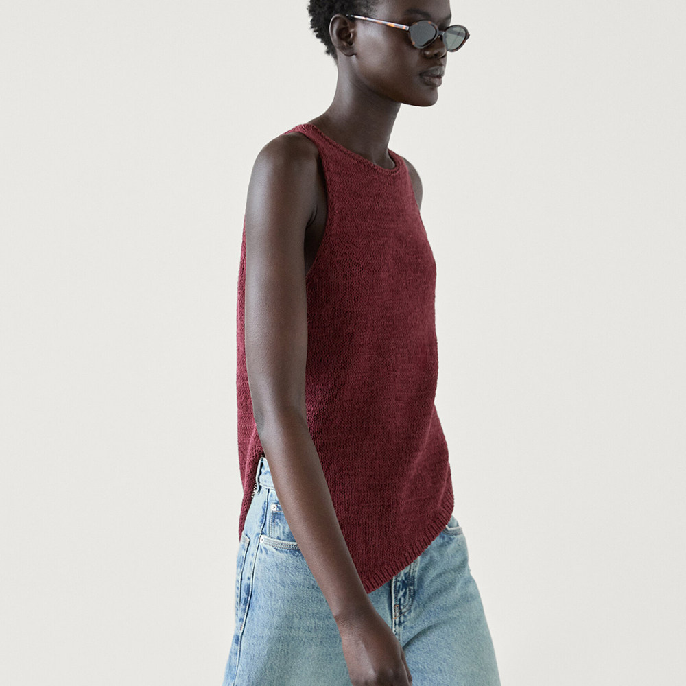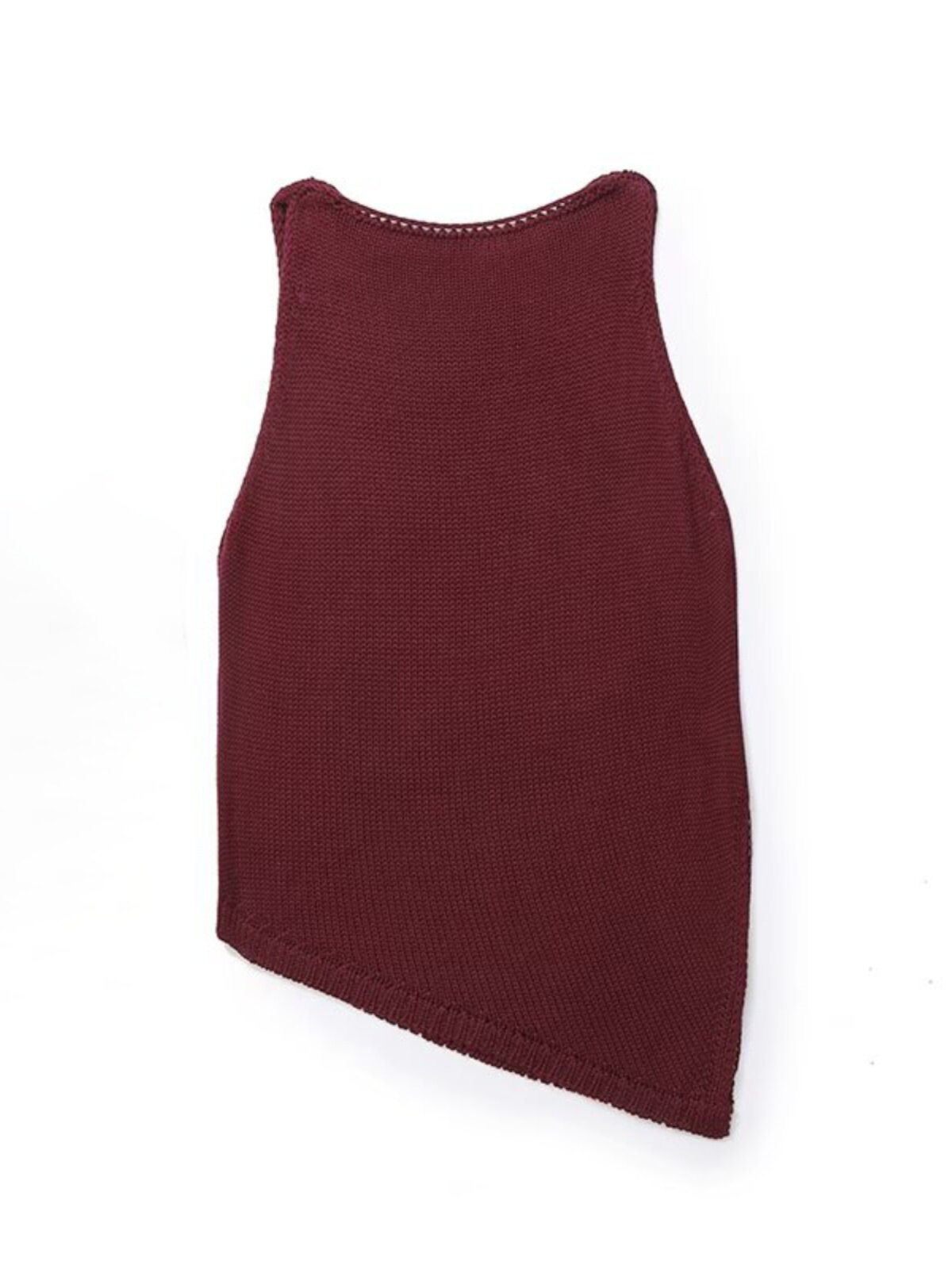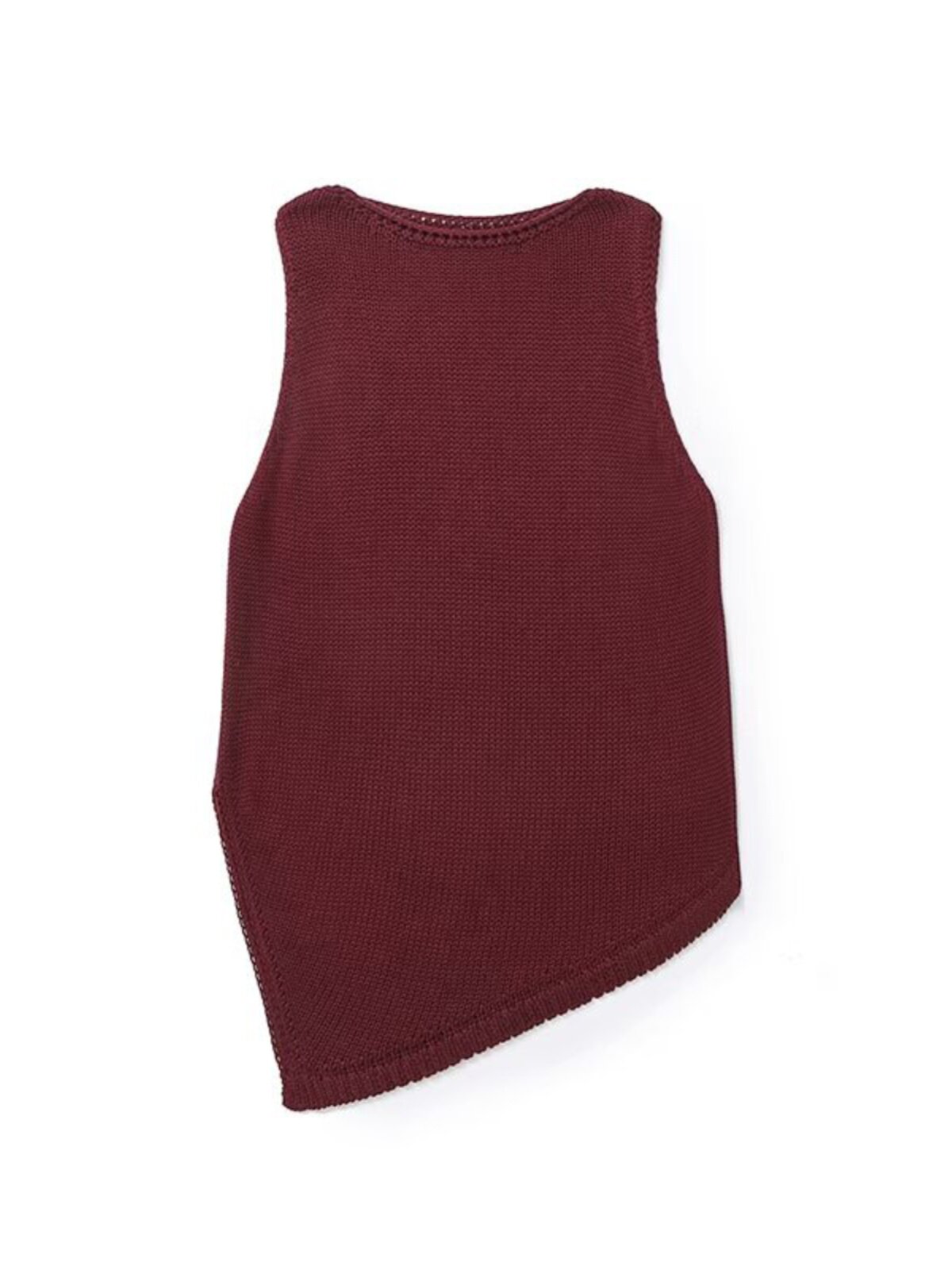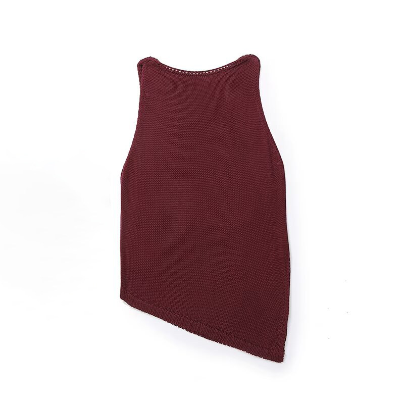 Женский хлопковый вязаный топ без рукавов с круглым вырезом и асимметричным подолом античного красного цвета MD 05737510555