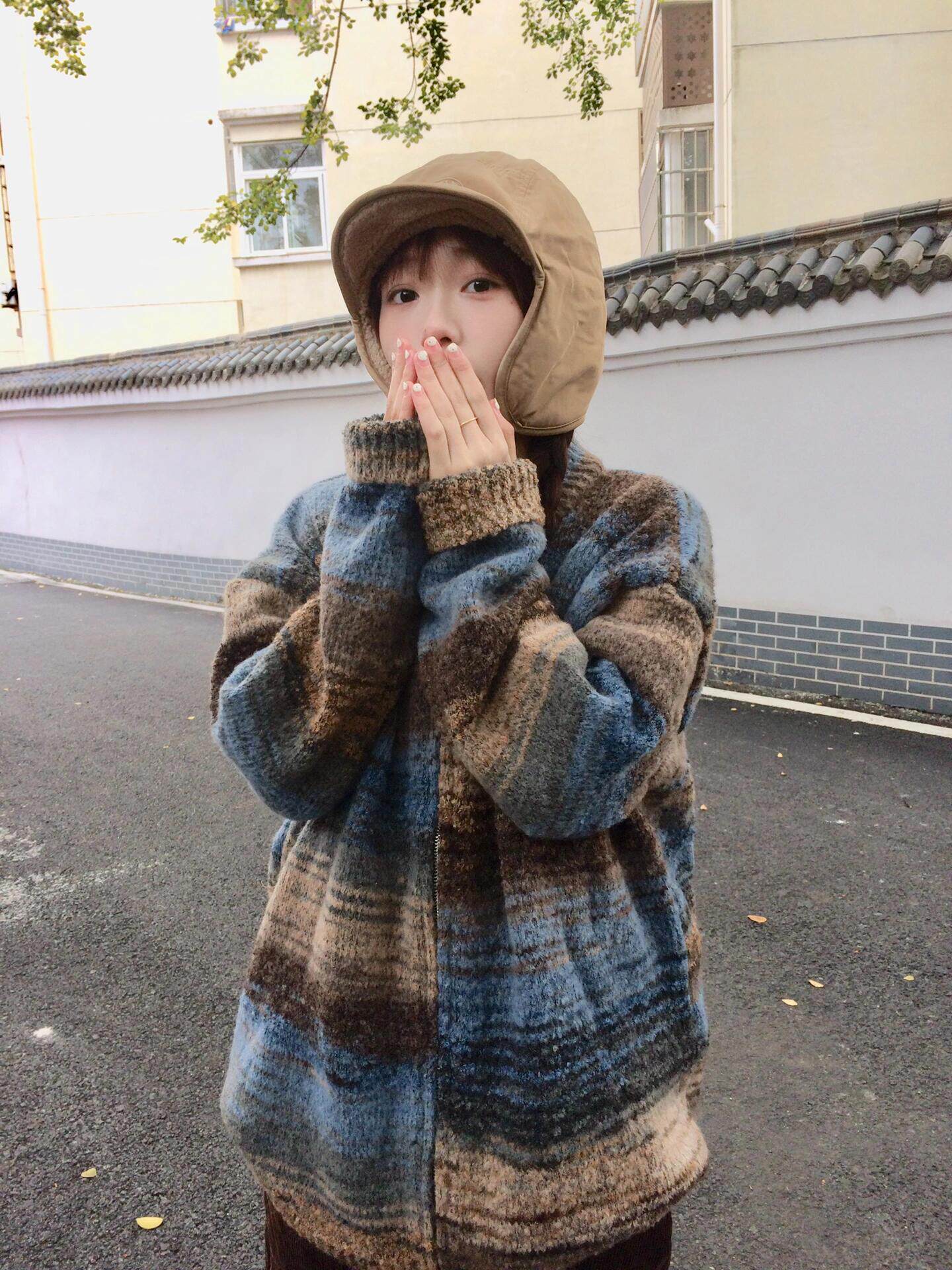 Ретро демисезонный свитер с молнией, куртка, трикотажный кардиган, в американском стиле, в корейском стиле
